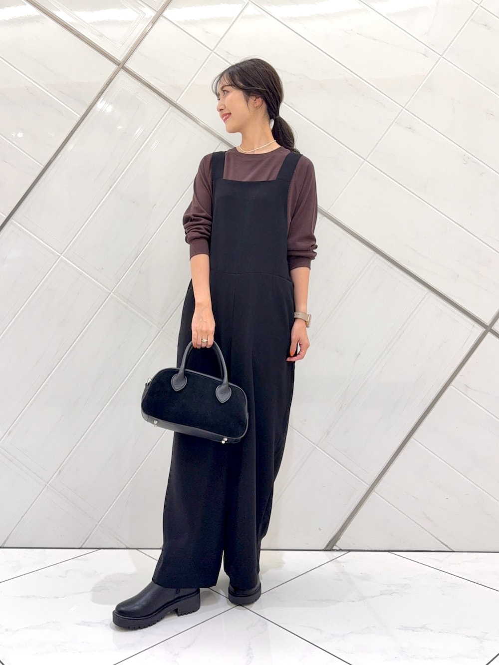 サロペットはてろっとした落ち感のあるシルエットで締め付け感がないのでリラックス感のある着心地です。