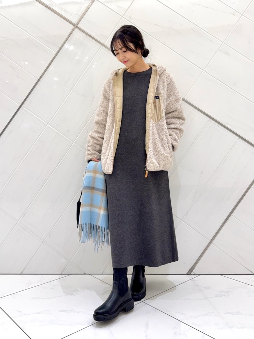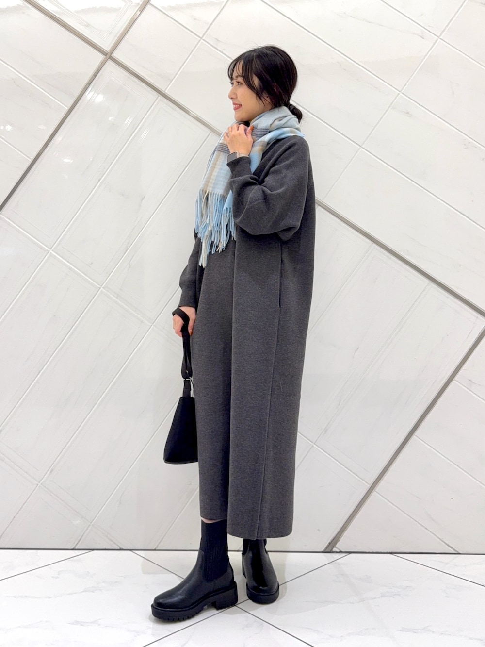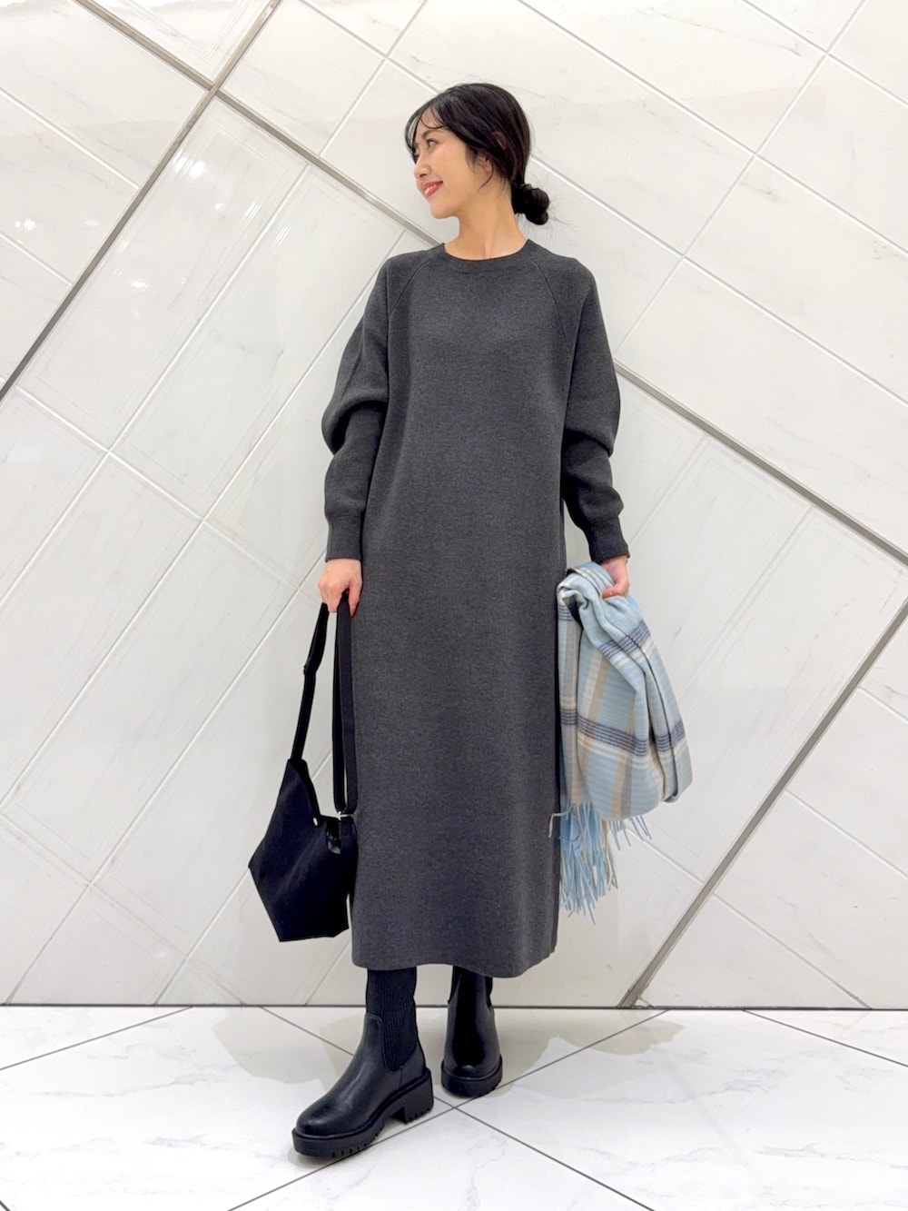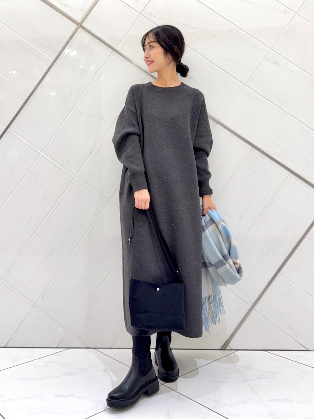 ワンピースは1枚でさらっと着ることができ、とても楽ちんです。厚みのある生地なのでこれからのシーズンに重宝します。