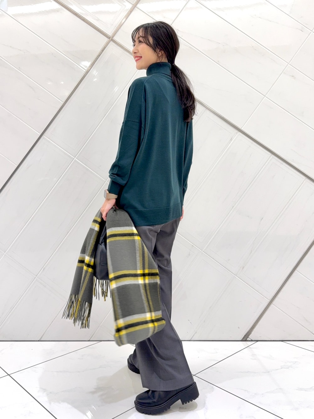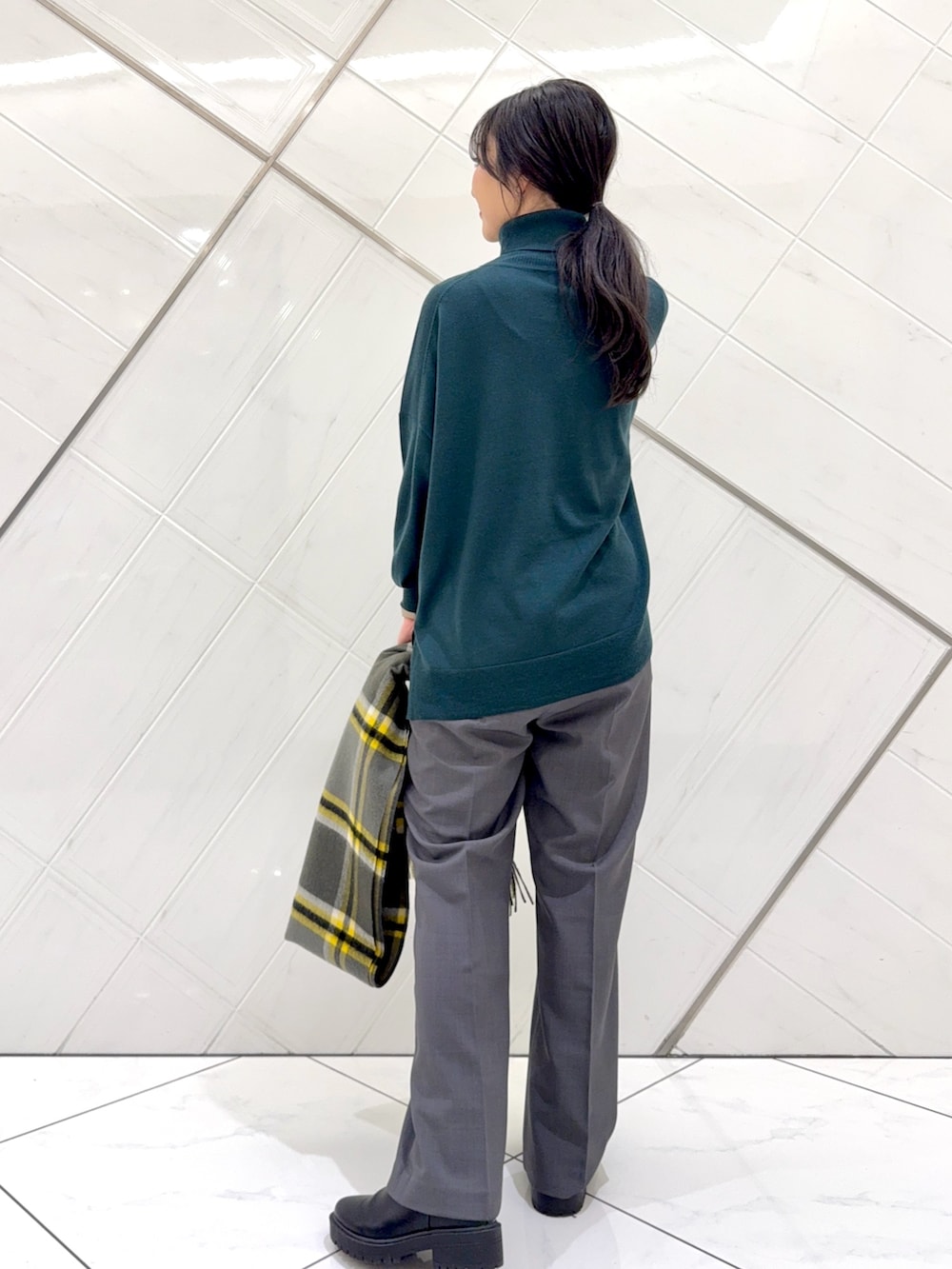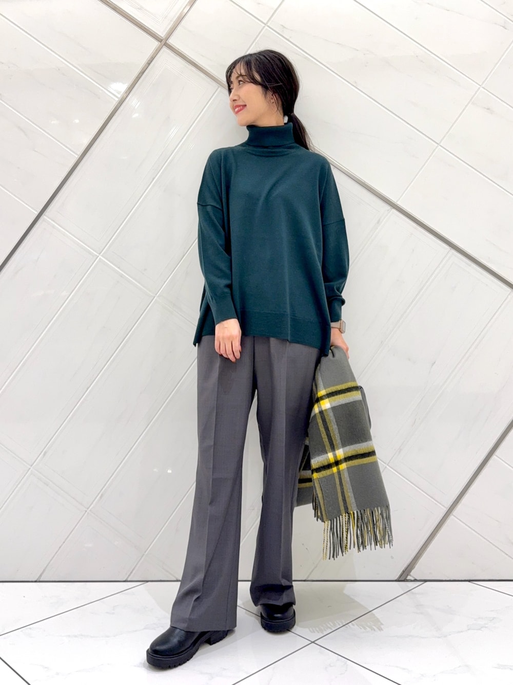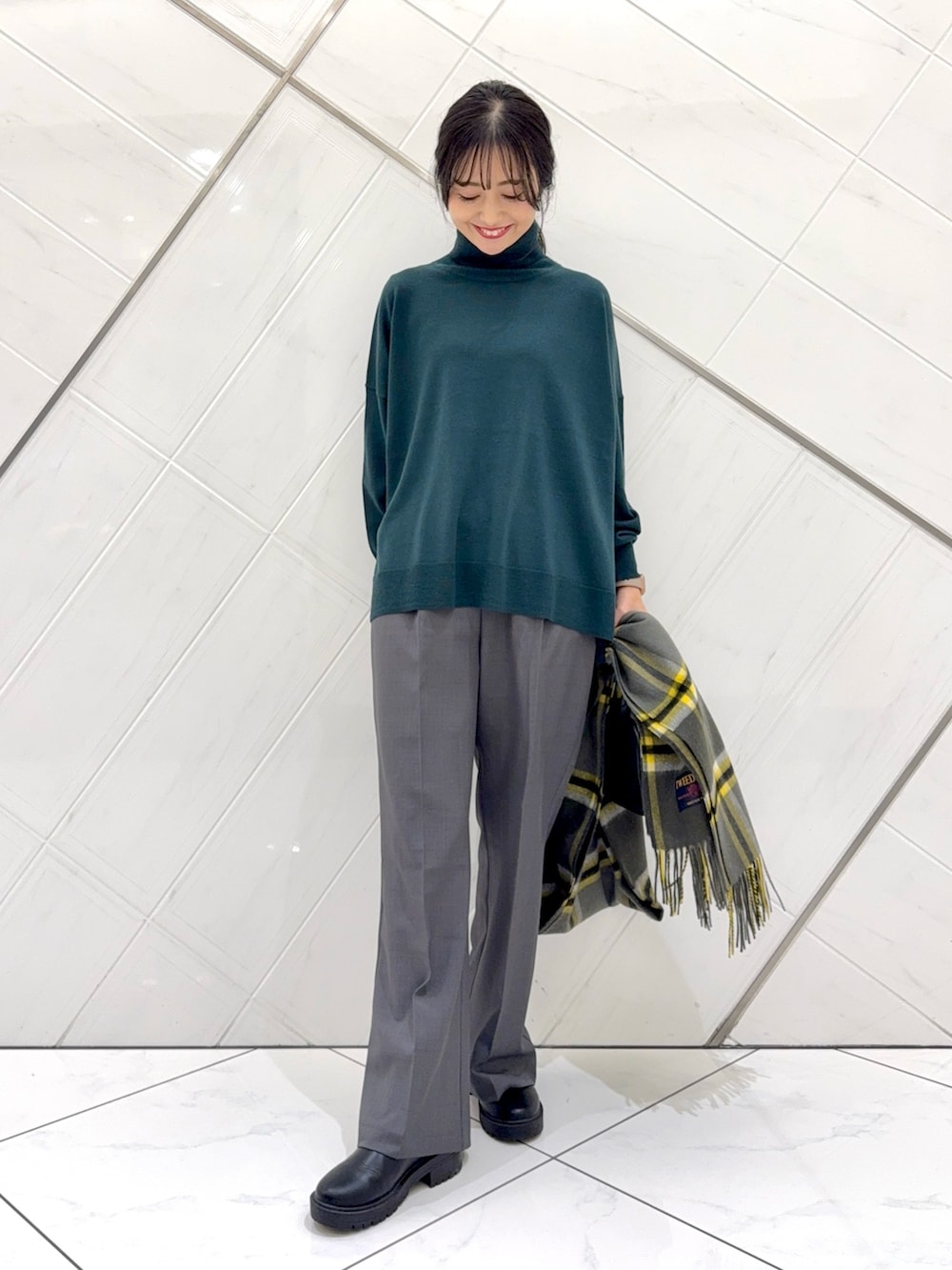 ニットは細かな糸を編んだ薄手のニットなのでさらっとした軽い着心地です。身幅も広めでゆったりとしたサイズですが落ち感があるのですっきりとした印象です。