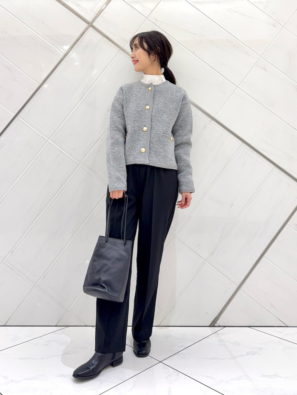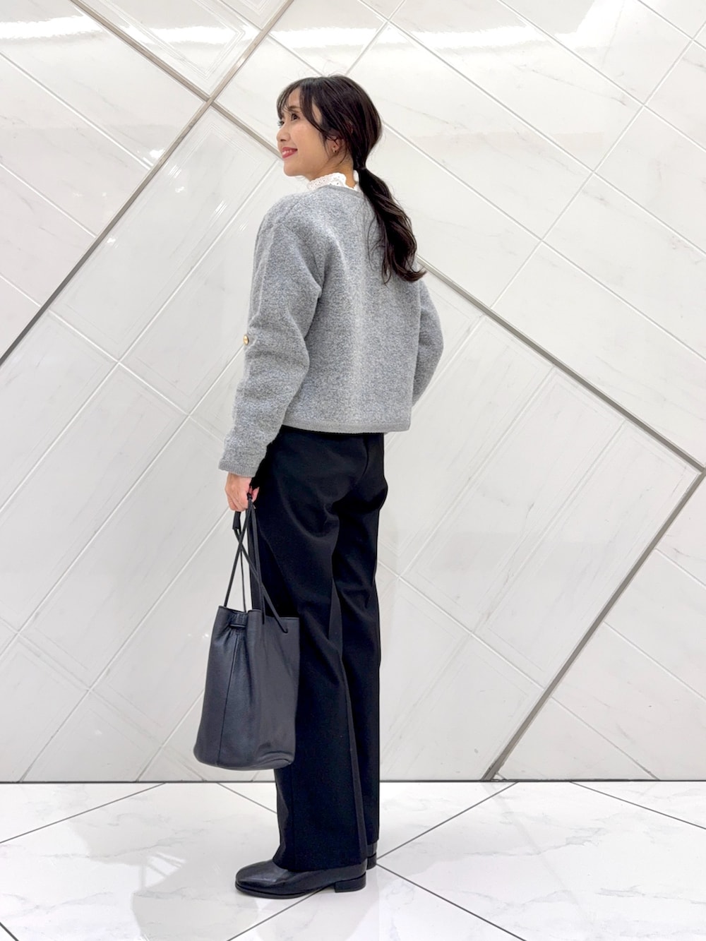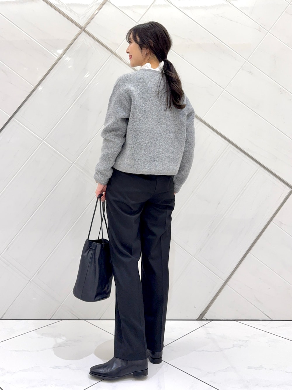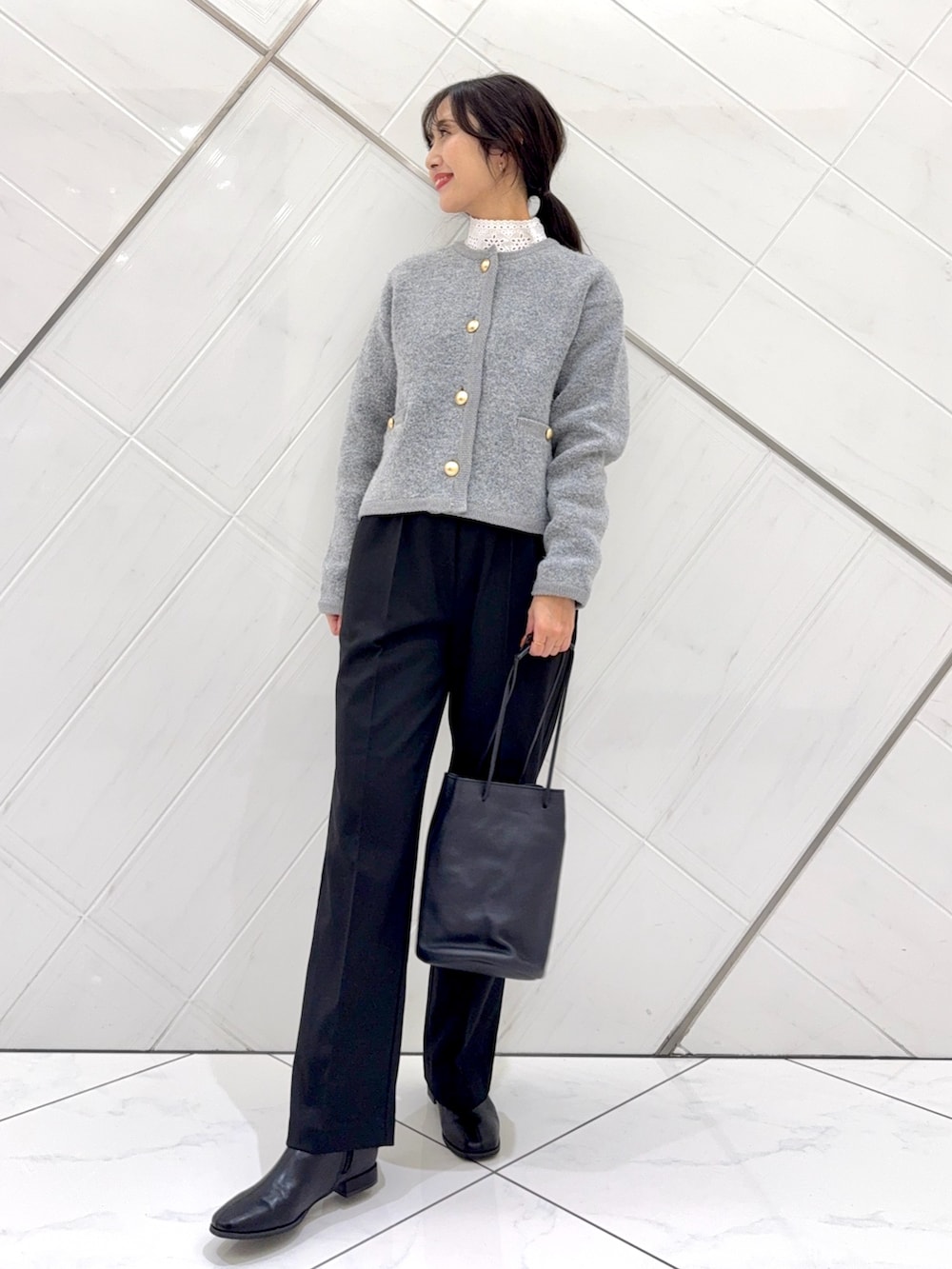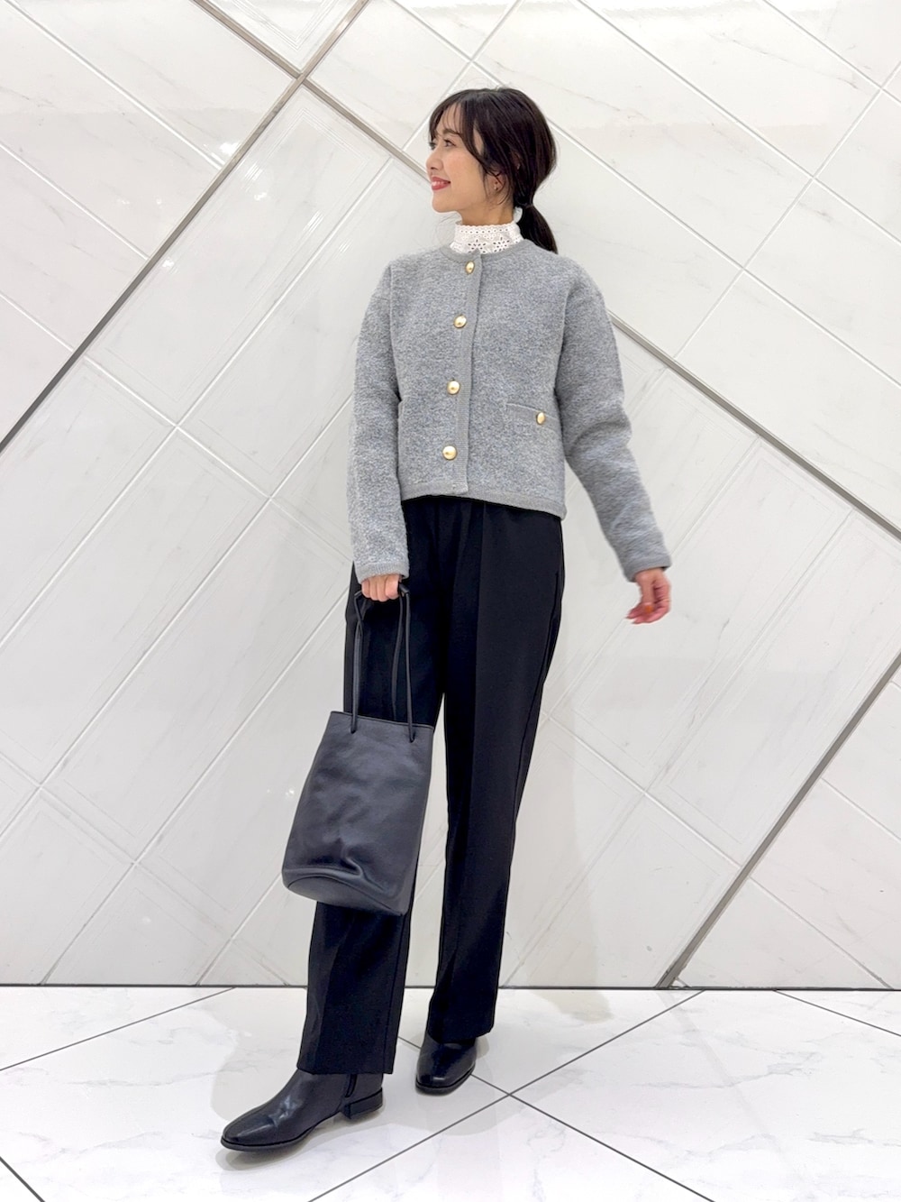 トップスはコンパクトなサイズ感ですっきりと見え、ショート丈なのでボトムスを選ばず着回ししやすいです。