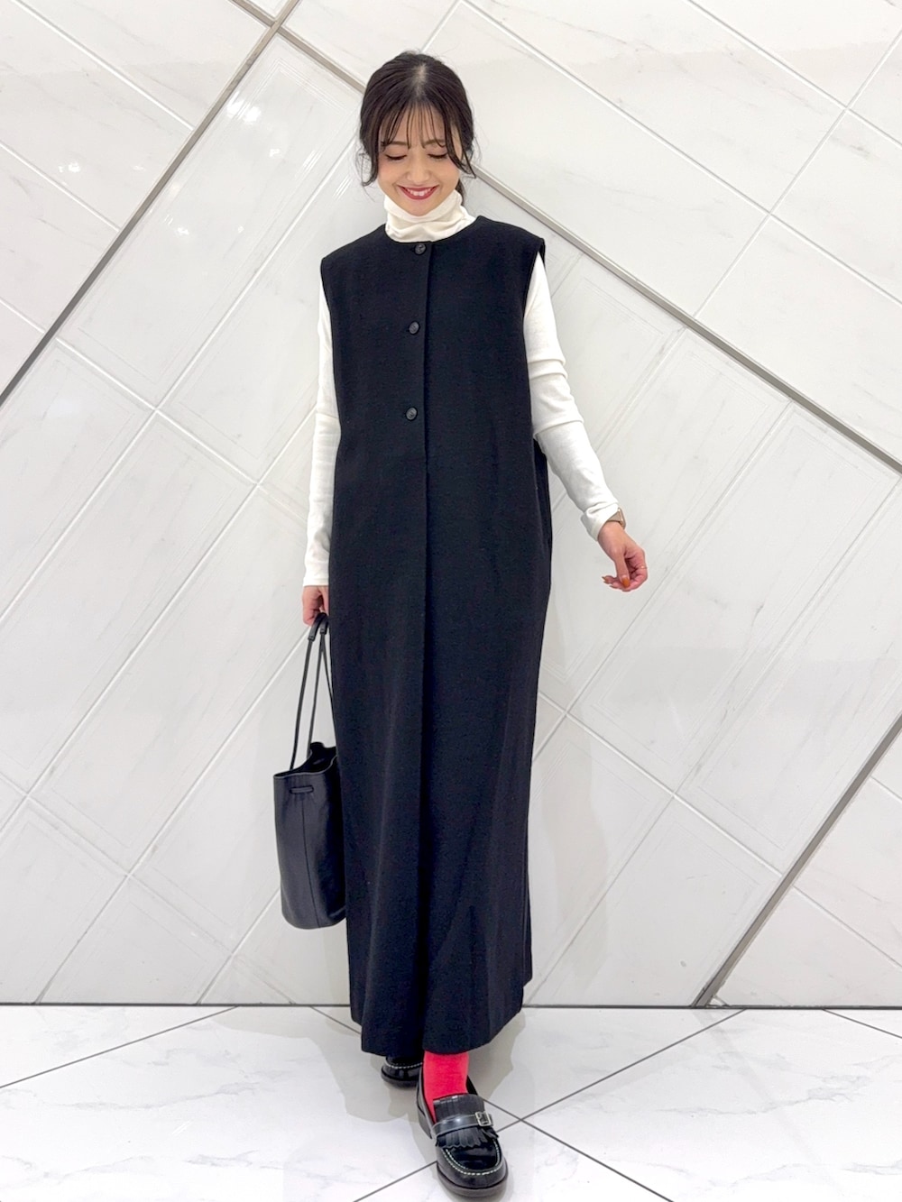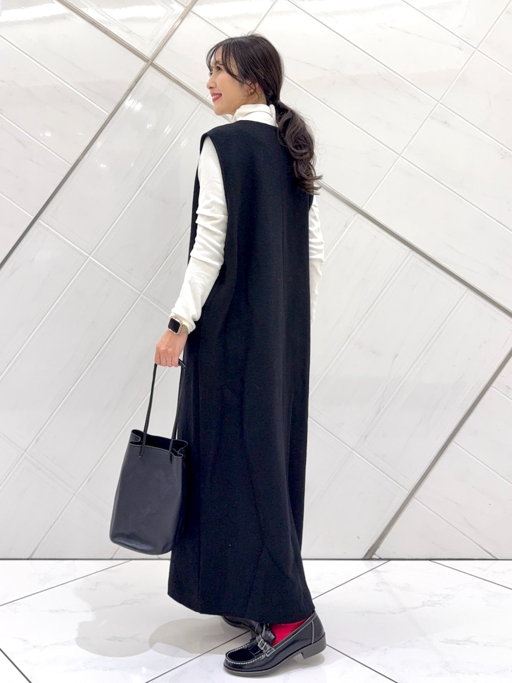 体のラインを拾わないIラインのシルエットですっきりとした印象になります。