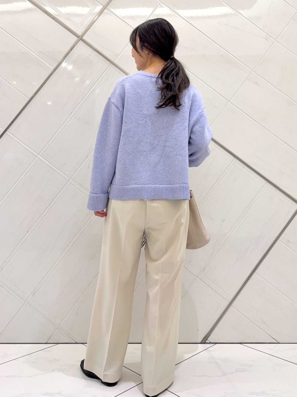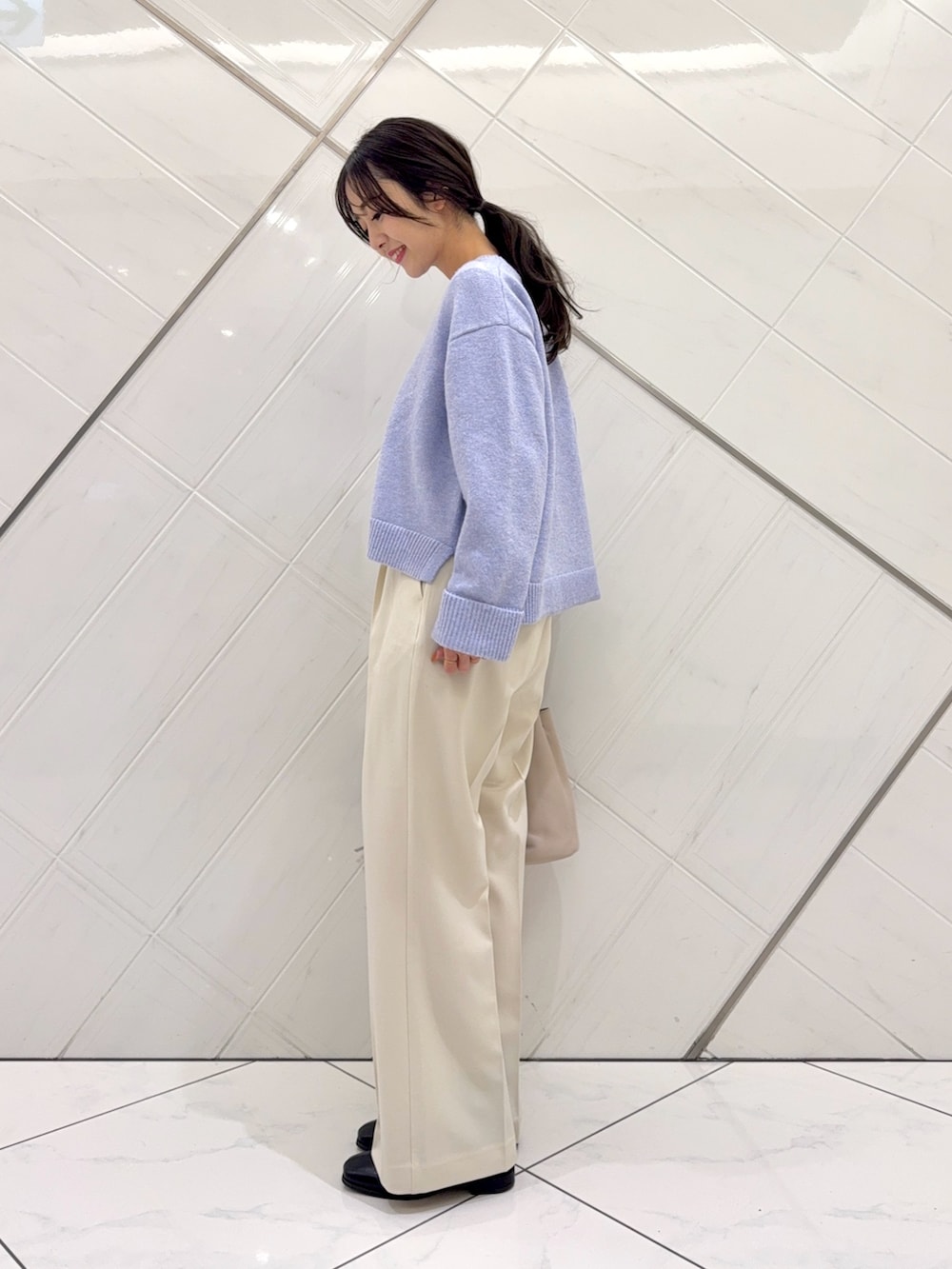 ニットはもちもちとした肌触りでチクチク感がなく、着丈を短めにすることでどんなボトムスとも合わせやすく、シャツやカットソーをレイヤードしていただくのも可愛いのでおすすめです。