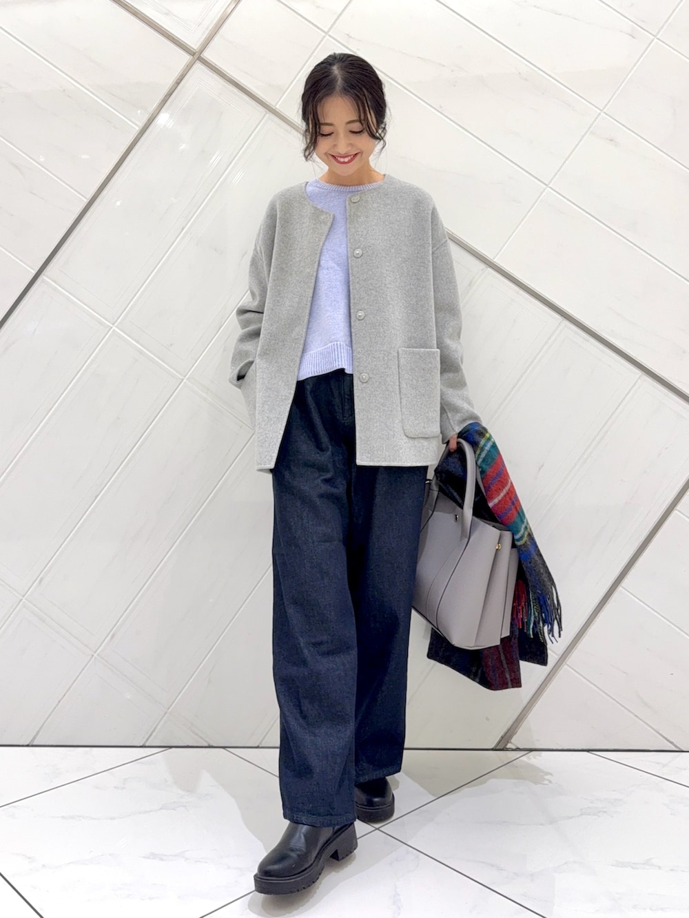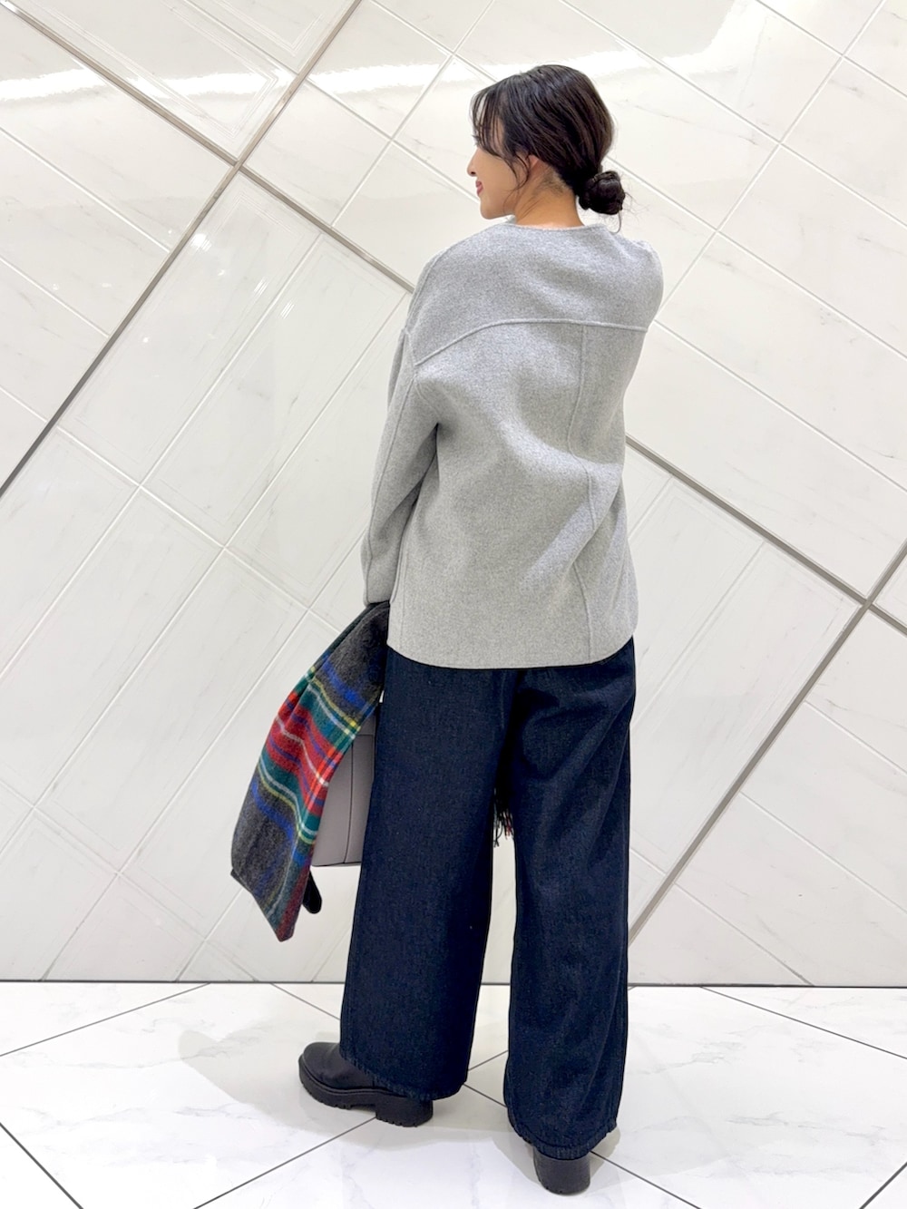 アウターは滑らかな肌触りでウールの1枚仕立てなので軽くて羽織りやすいです。