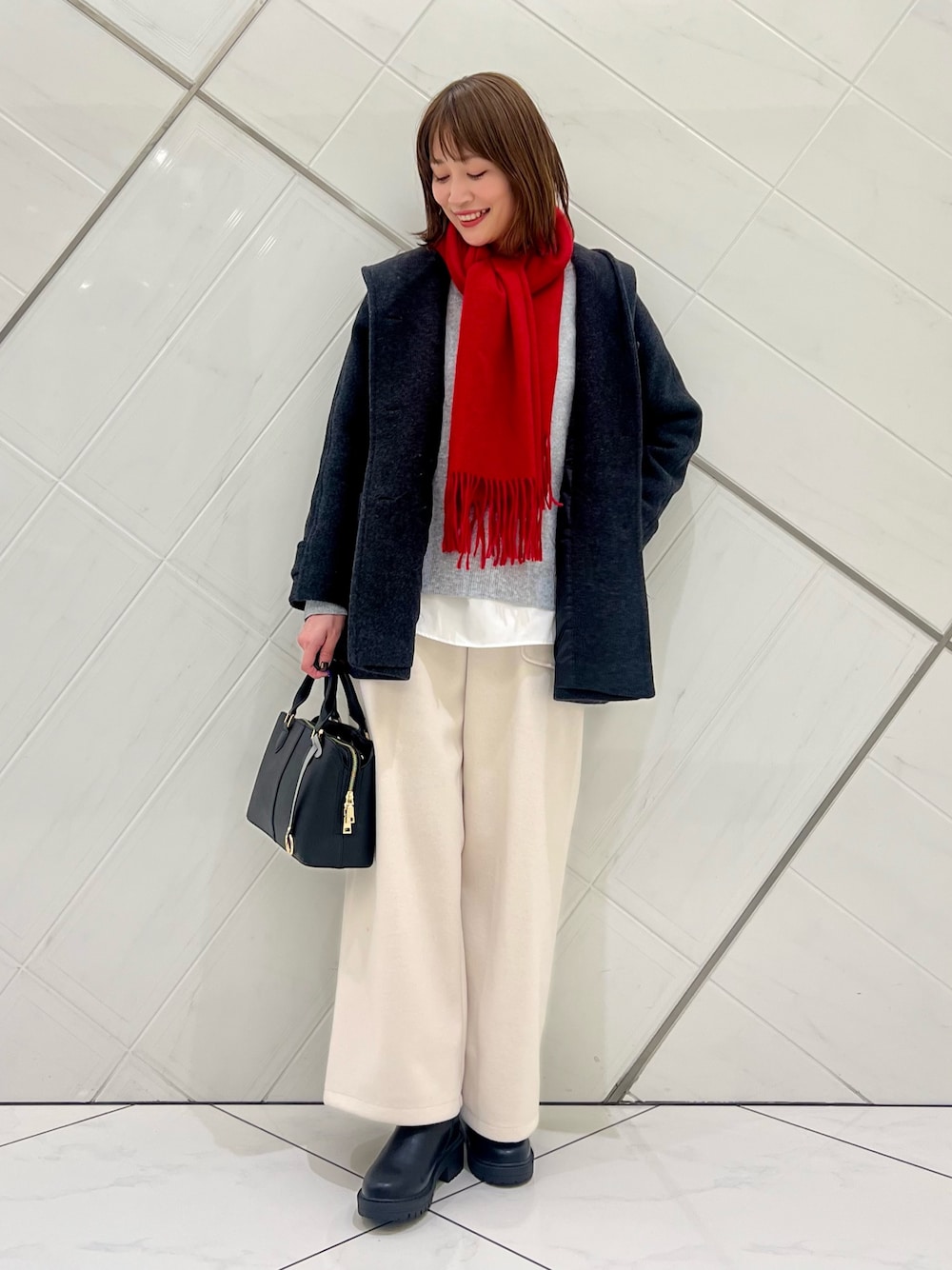 アウターはウールコートながらも軽いので羽織りやすく、裏地もついているので風通しも防いでくれて暖かいです。