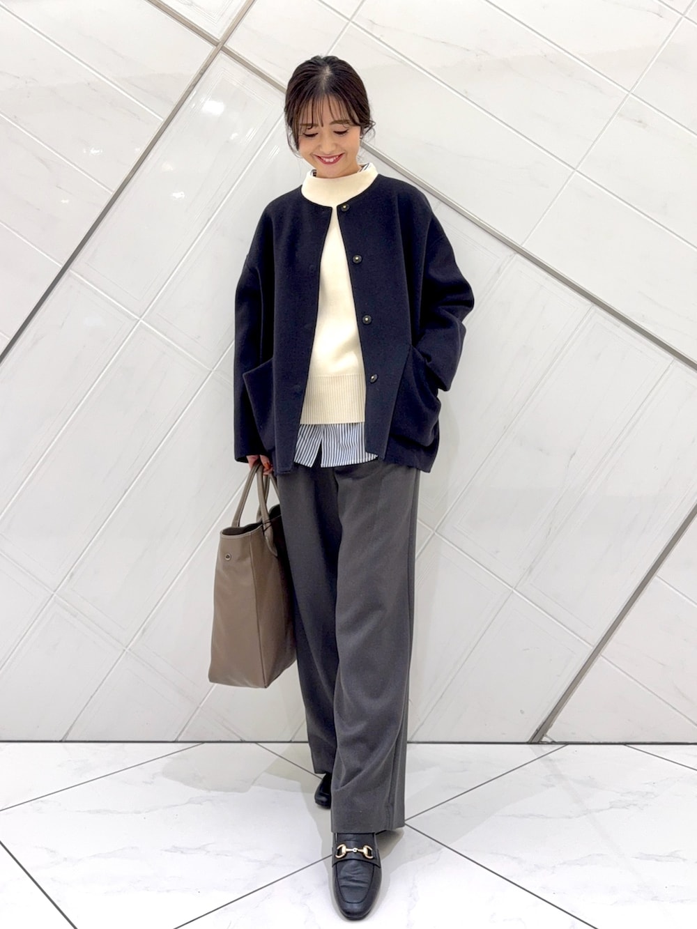 オフィスカジュアルとしてもおすすめのレイヤードスタイルです。