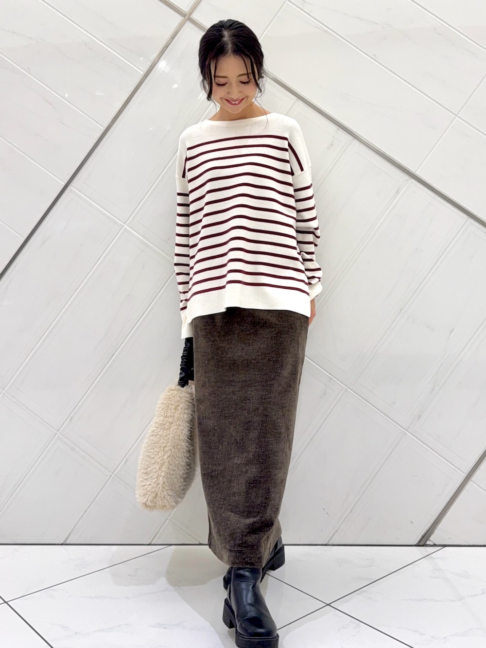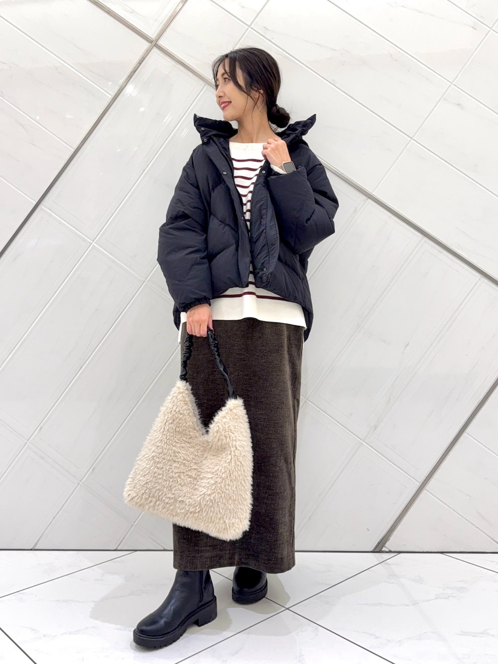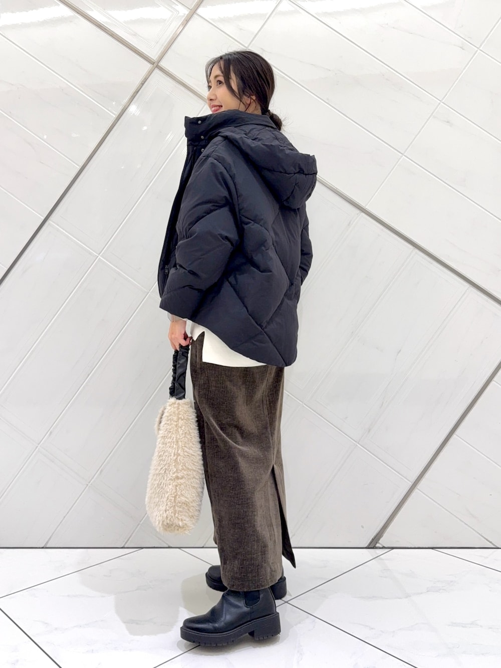 ヒップが隠れる長めの着丈でサイドスリットが入っていることで着膨れ感がなくすっきりとした印象になります。