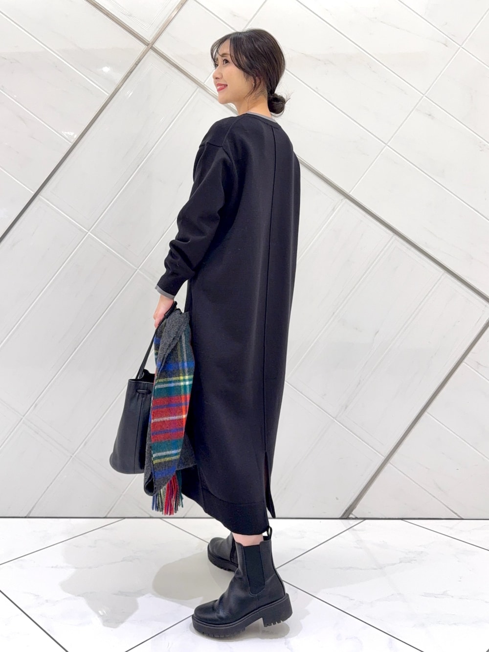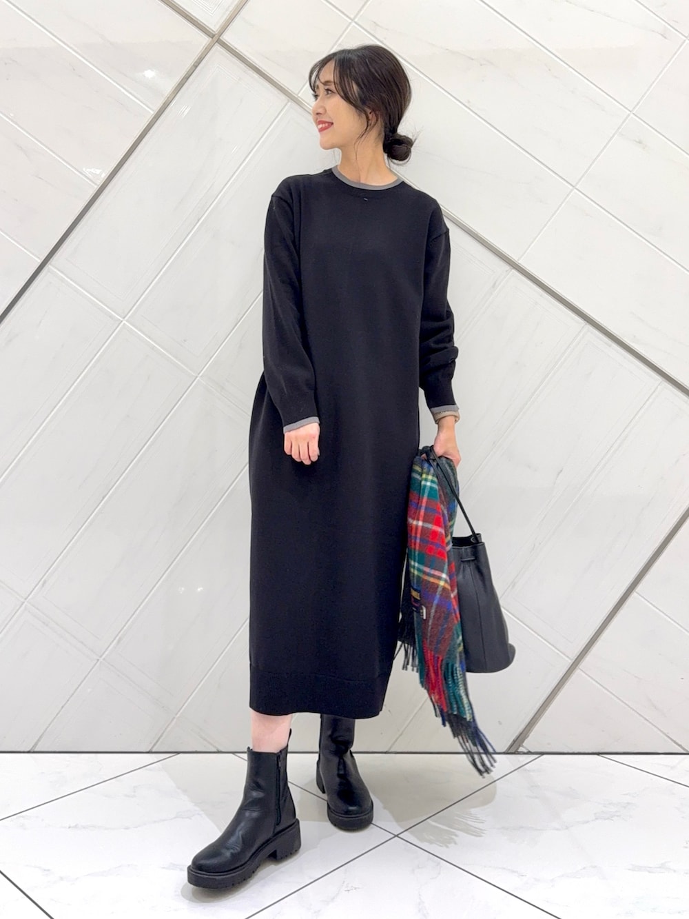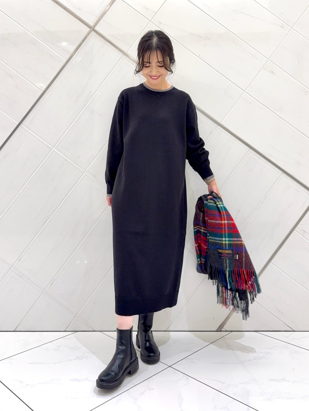 ワンピースはチクチク感のないカットソー感覚で着れるニットワンピースで1枚でさらっと着れるので楽ちんです。