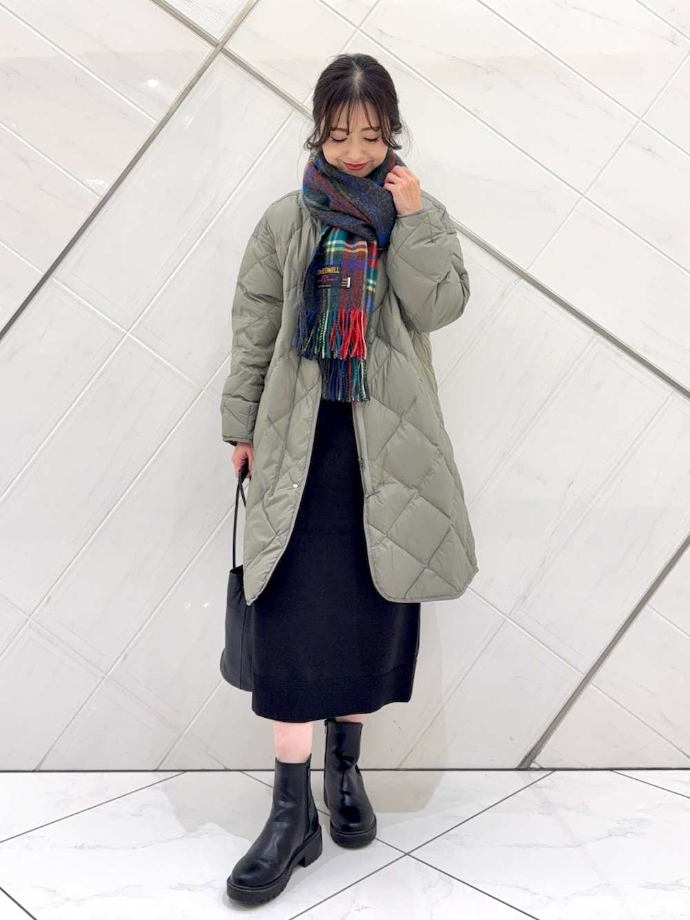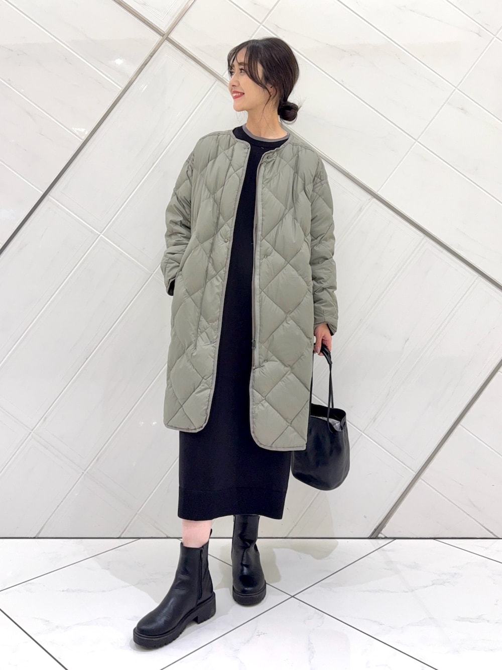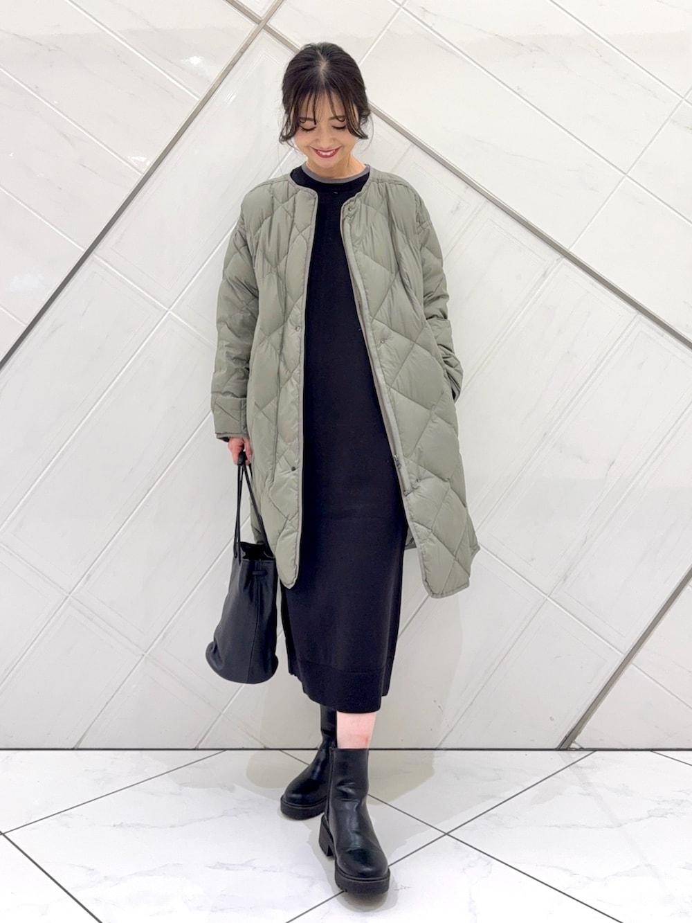 ワンピースはチクチク感のないカットソー感覚で着れるニットワンピースで1枚でさらっと着れるので楽ちんです。
