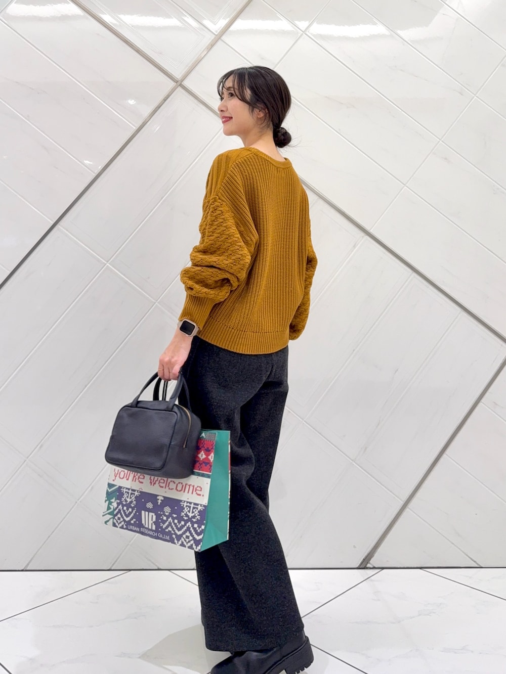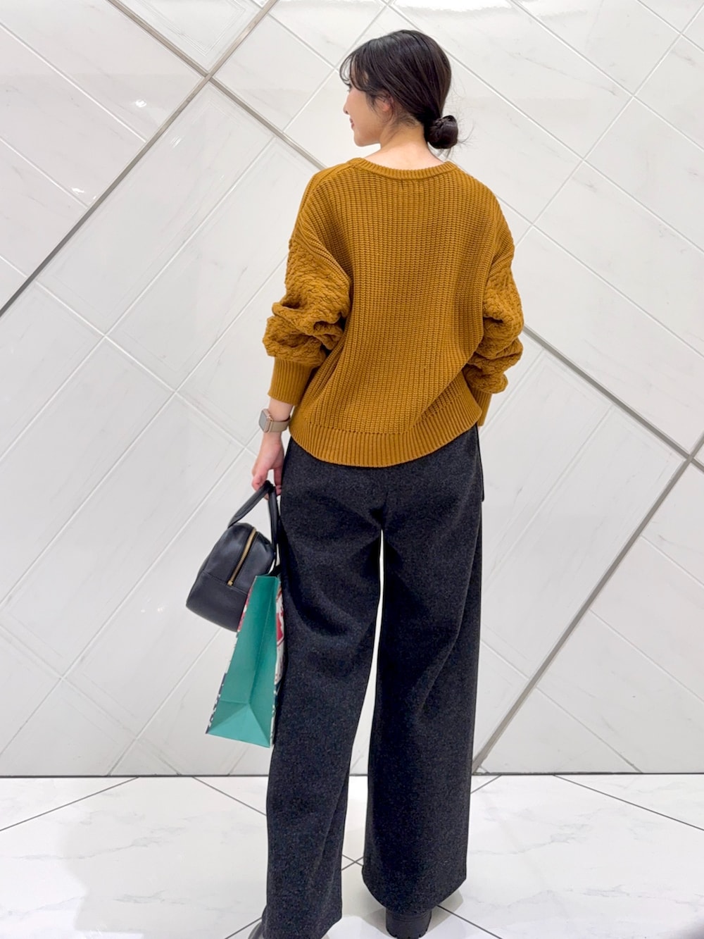 腰にかかる短めの着丈なので合わせるボトムスも選ばず着回ししやすいニットです。