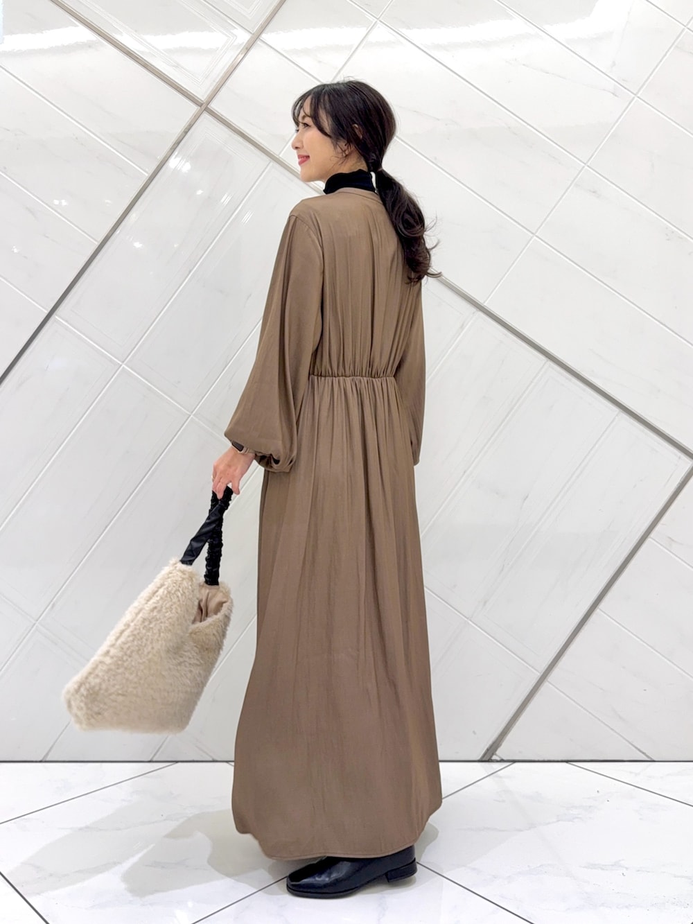 ワンピースはとろみがあり、落ち感もあるので着心地も良く、シワになりにくい素材です。