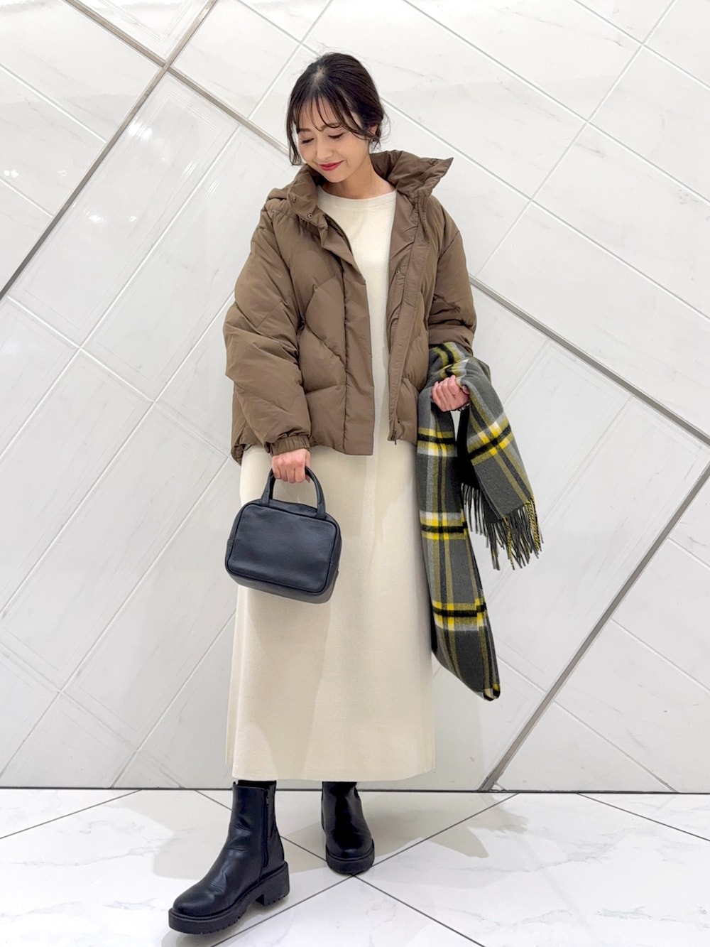 ダウンはとても軽くてふかふかとした肌触りで着心地もよく、ショート丈なのでバランス良く着ていただけます。