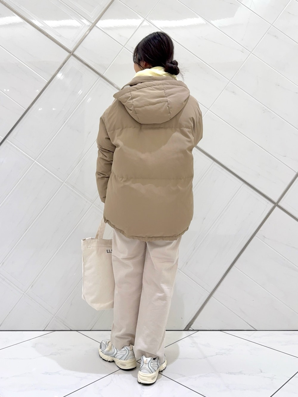 ダウンジャケットは厚みのあるしっかりダウンで暖かく、撥水性もあるので急な雨にも安心です。