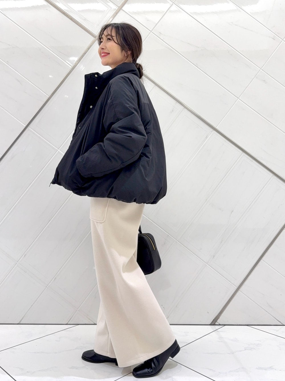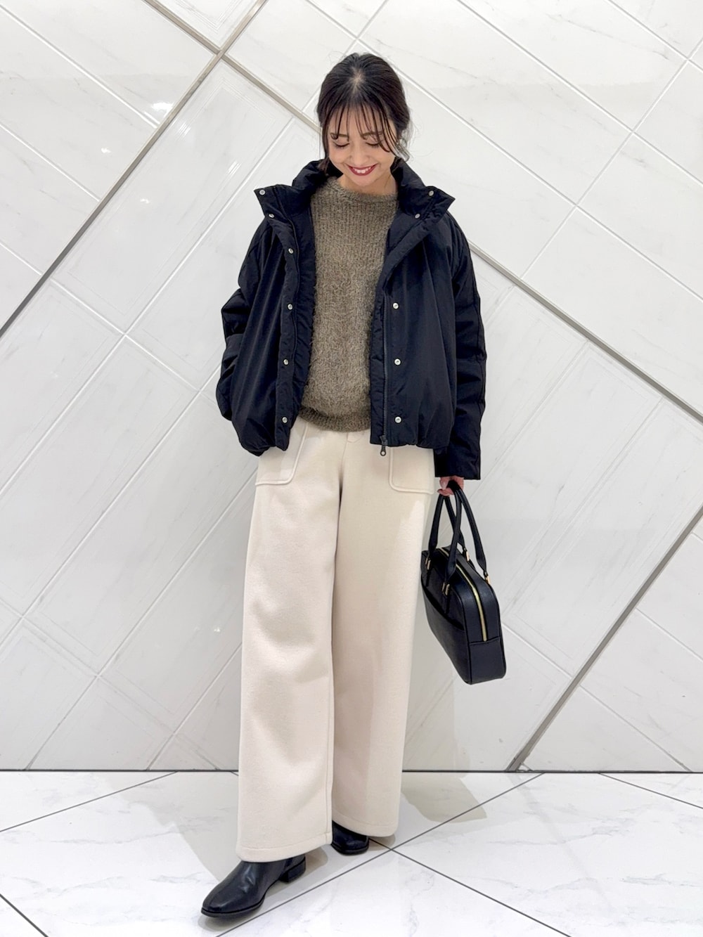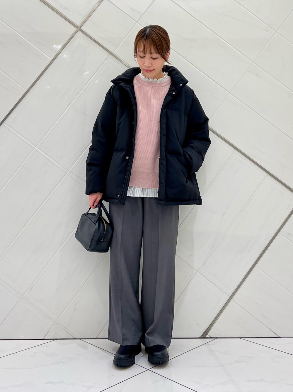アウターは腰にかかるくらいのショート丈でダウンも着膨れしないのですっきりとバランスよく見えます。