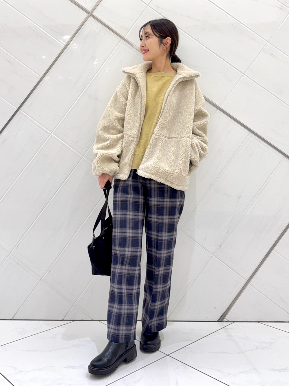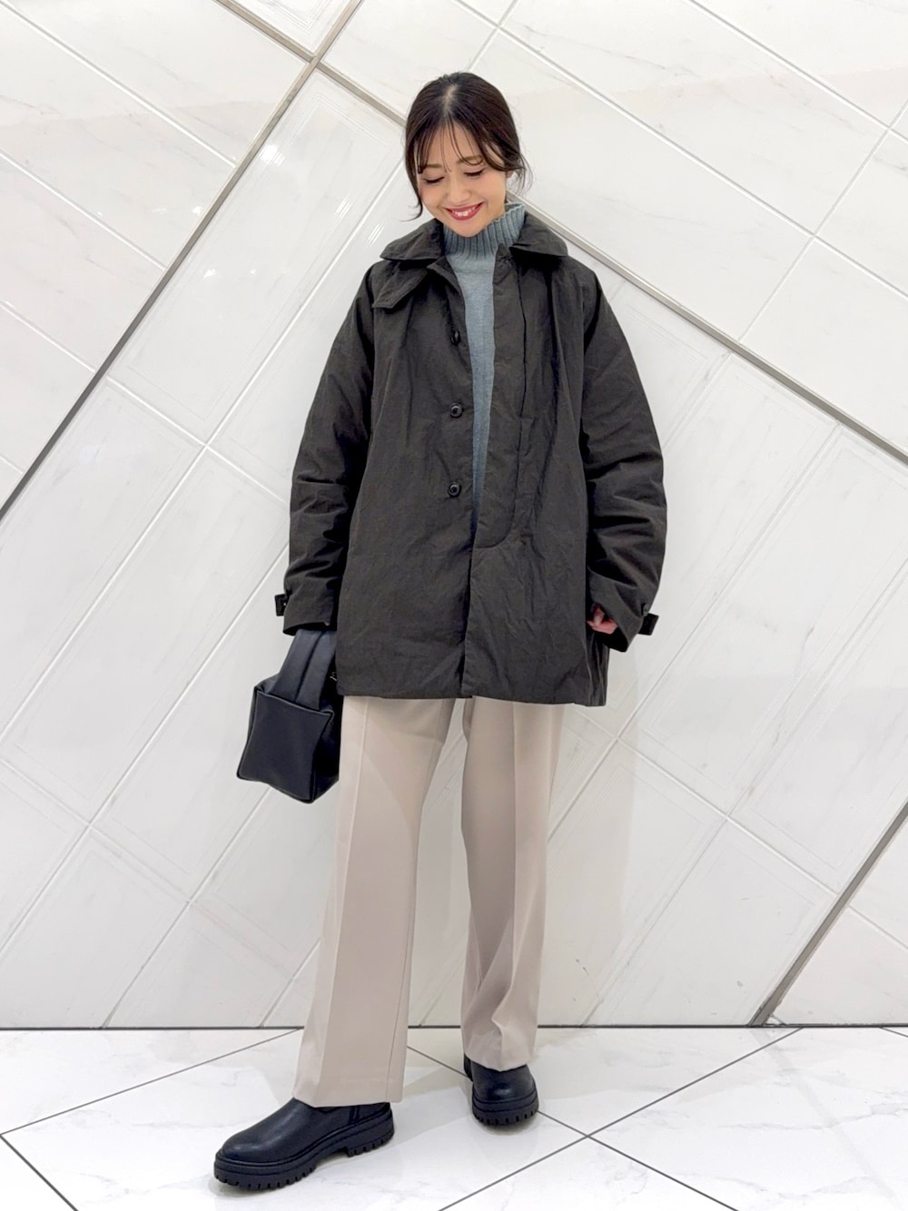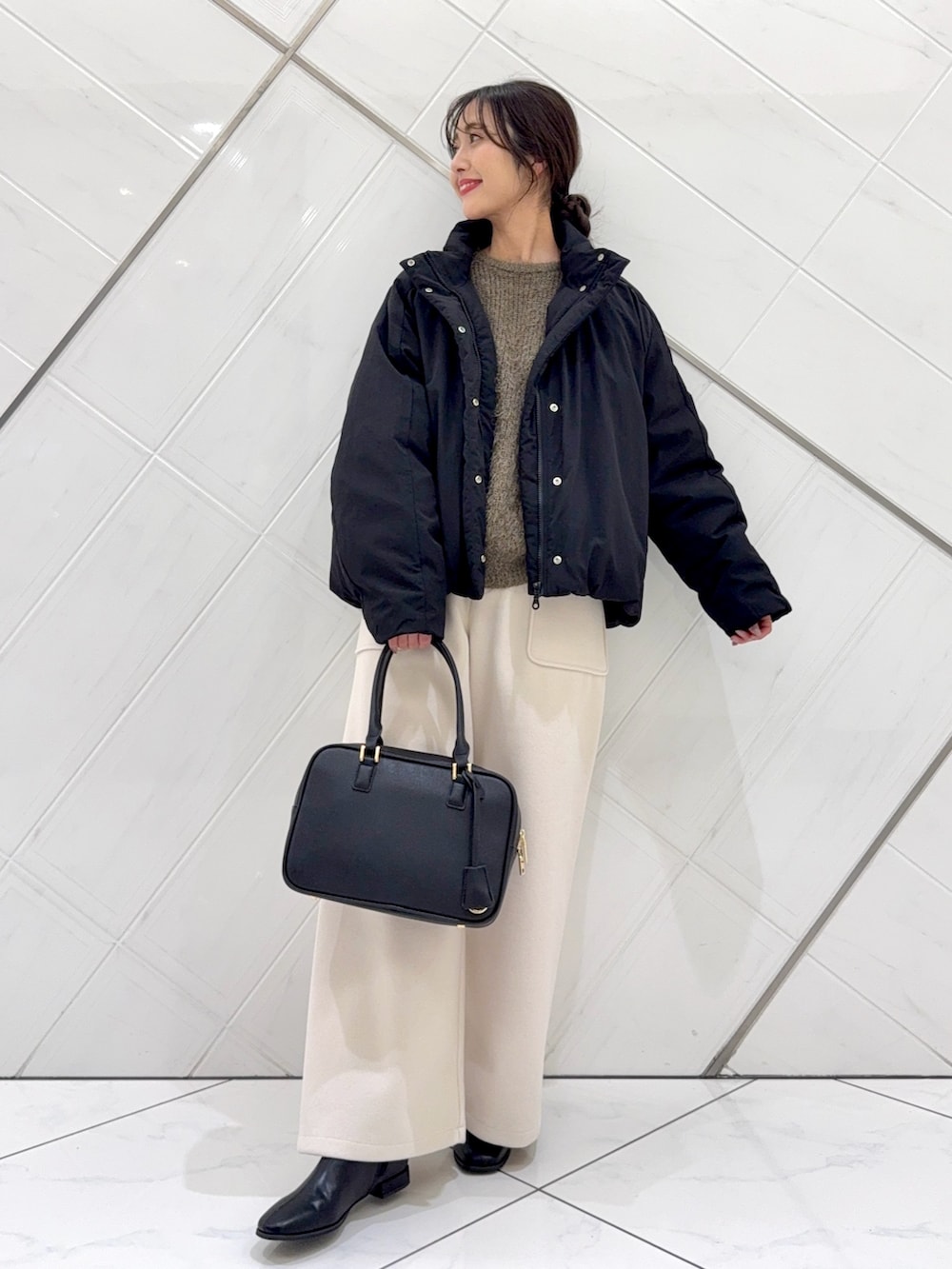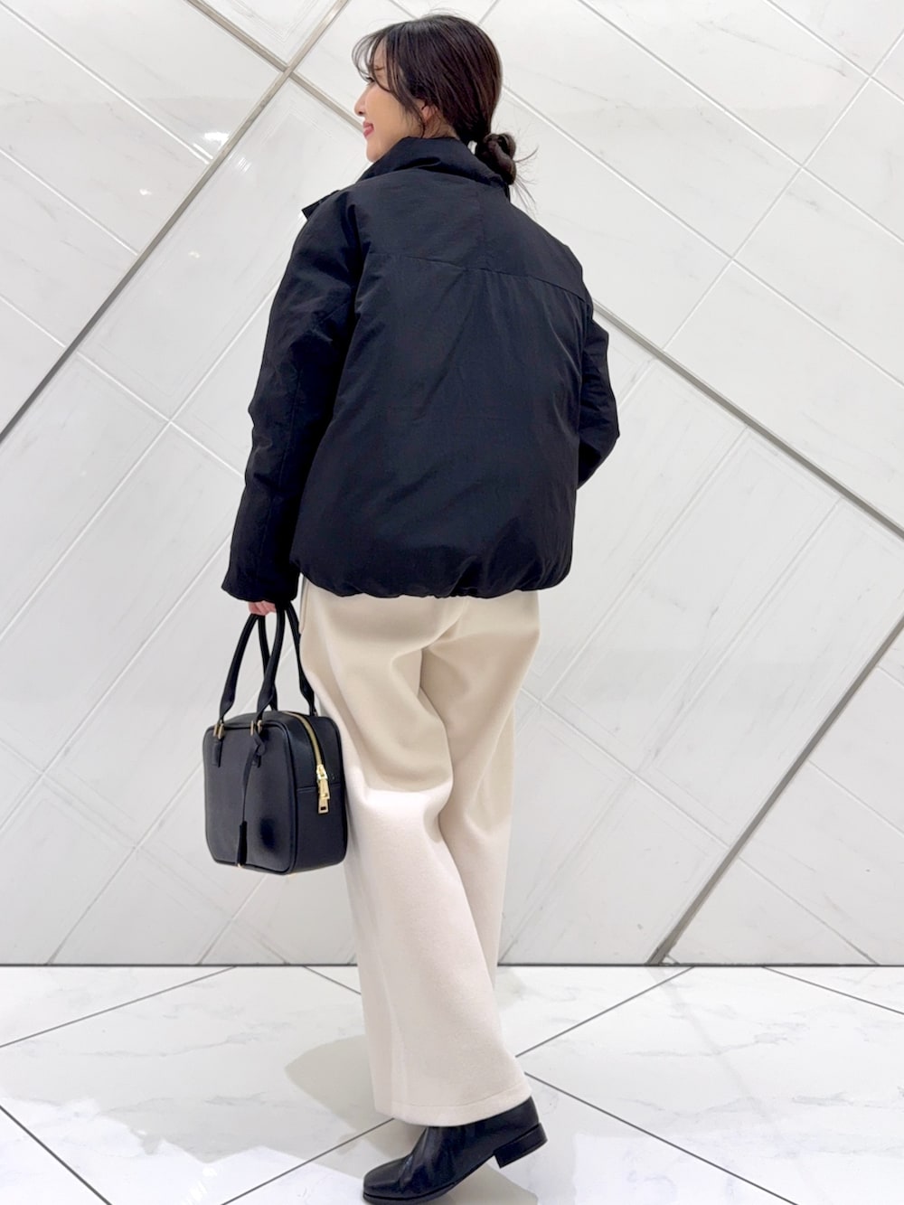 アウターは腰にかかるくらいのショート丈でダウンも着膨れしないのですっきりとバランスよく見えます。