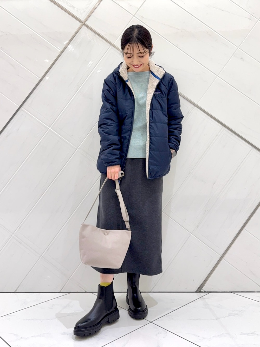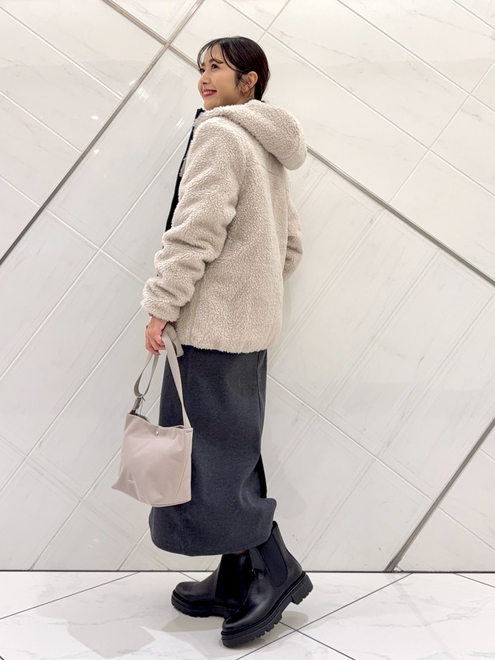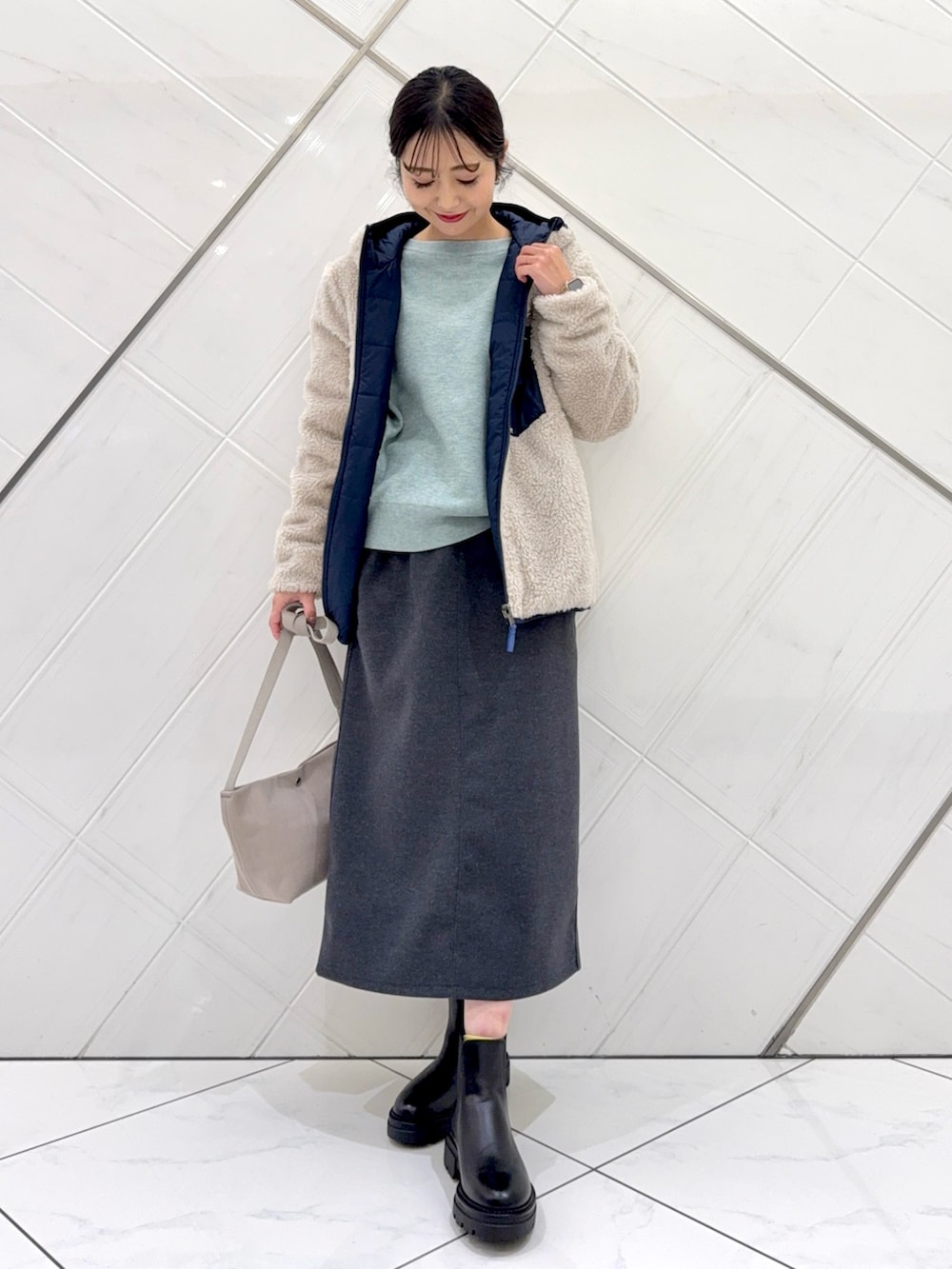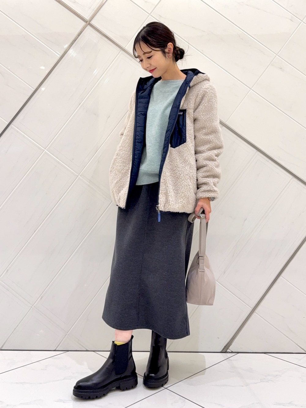 内側をボアにするとよりタイトなサイズ感なので厚手よりも薄手のトップスの上からの方が羽織りやすくなります。