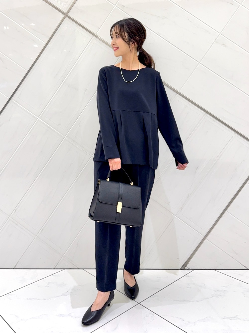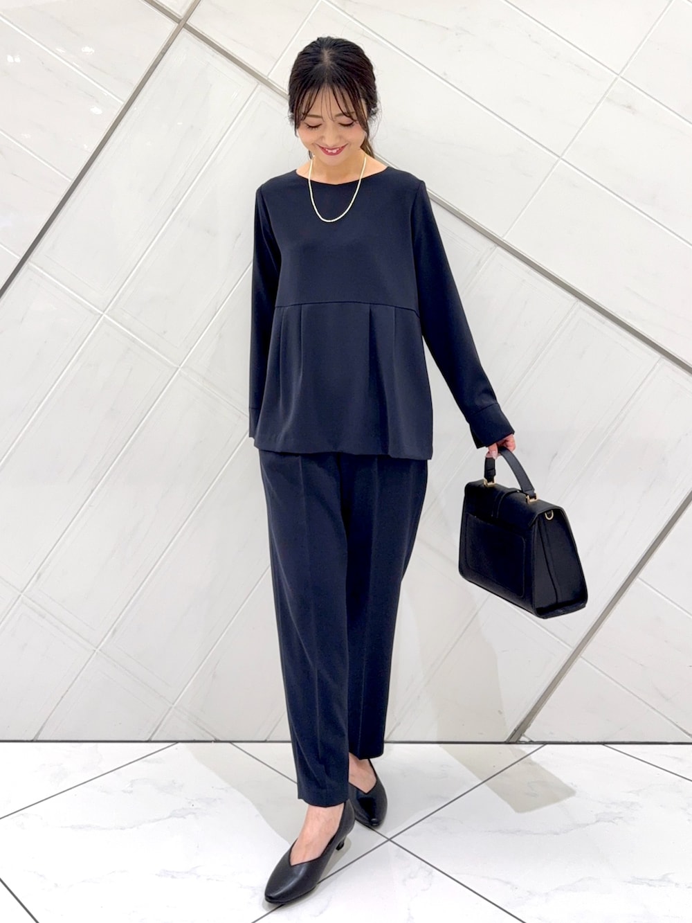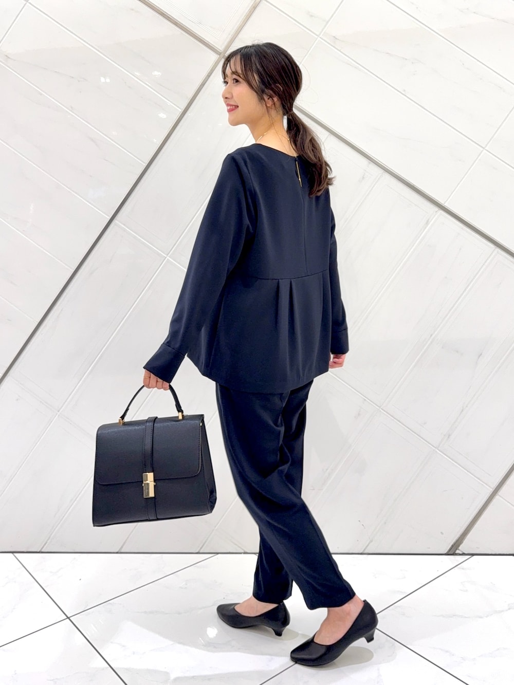 ジャケットはヒップが隠れるくらいの着丈でヒップもカバーできます。
