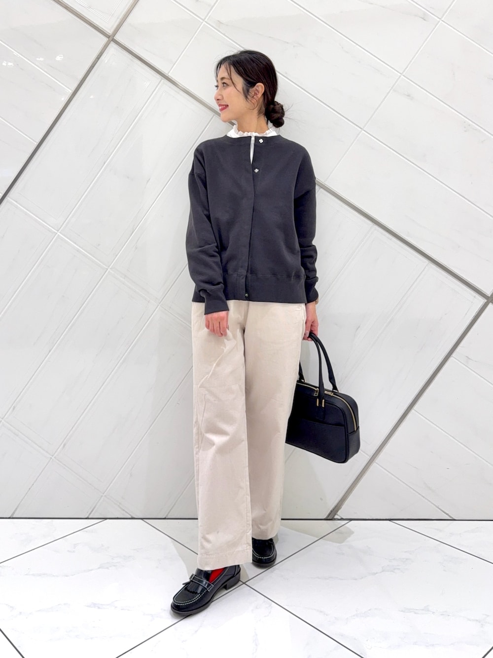 カーディガンはスウェット生地で着心地もよく、裏起毛なので暖かいです。