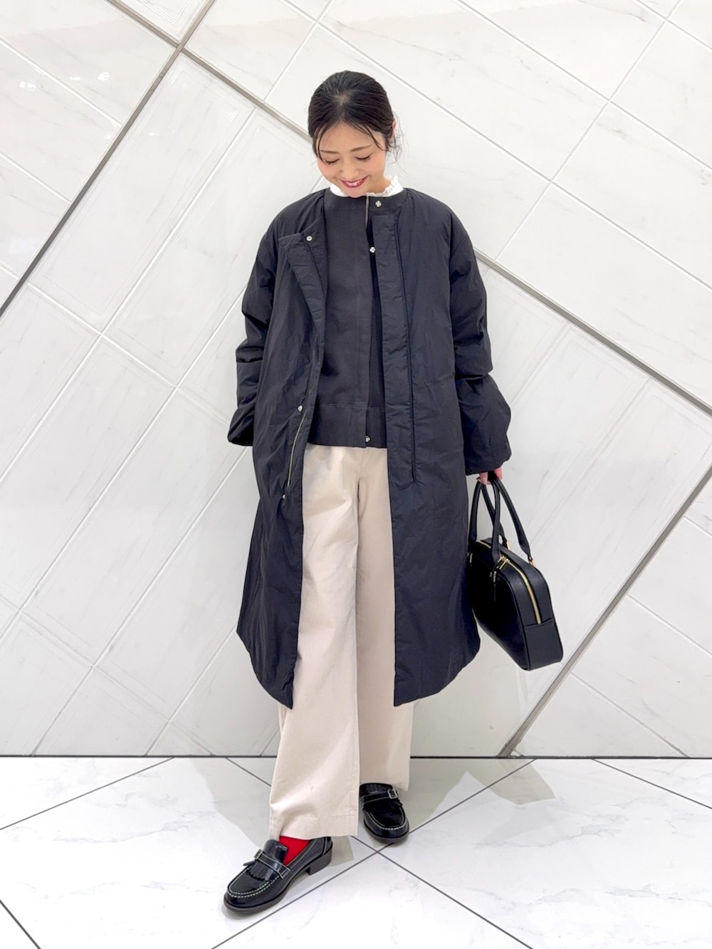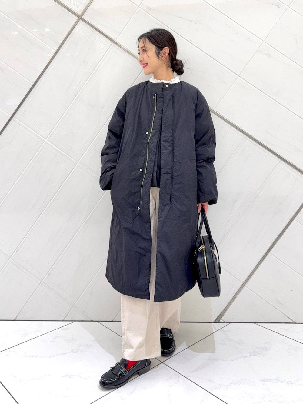 コンパクトなシルエットで合わせるボトムスを選ばず、春先まで着ていただけます。