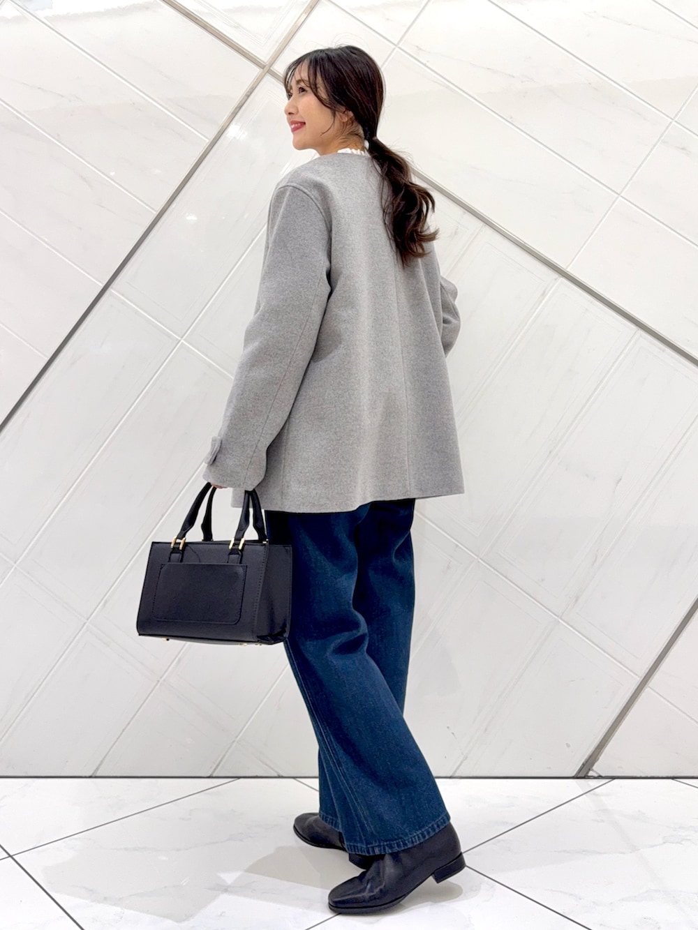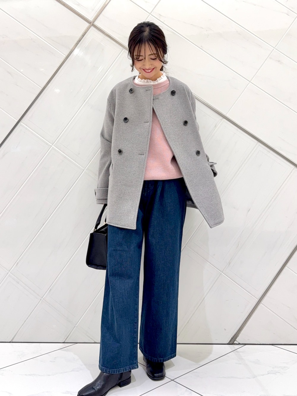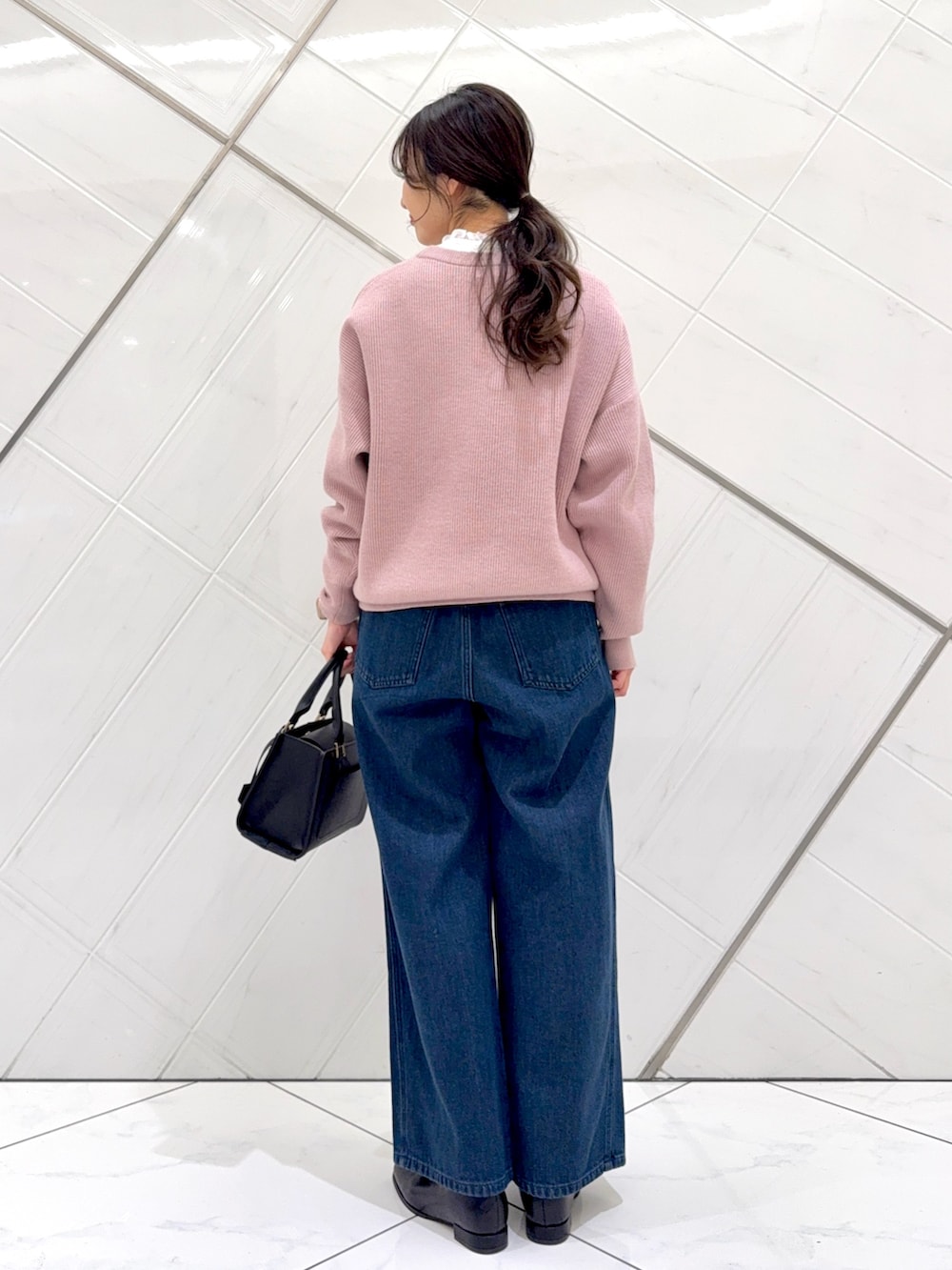 ニット1枚よりも首元にブラウスを1枚プラスするだけでも華やかな印象になり、ポイントになるのでおすすめです。