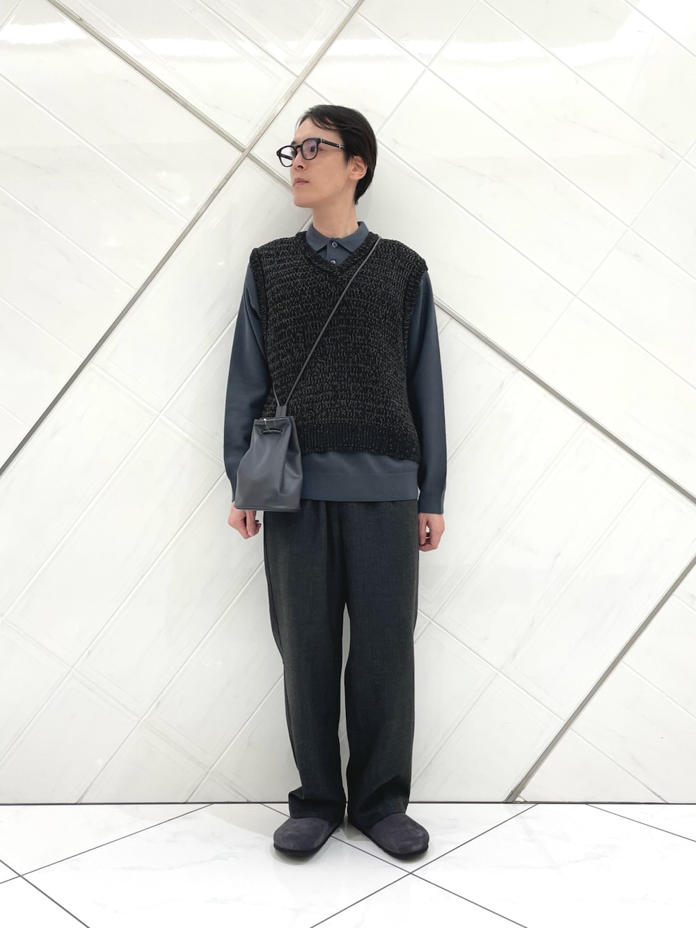全体をグレー~ブラックにまとめる事で、大人カジュアルにしてみました。