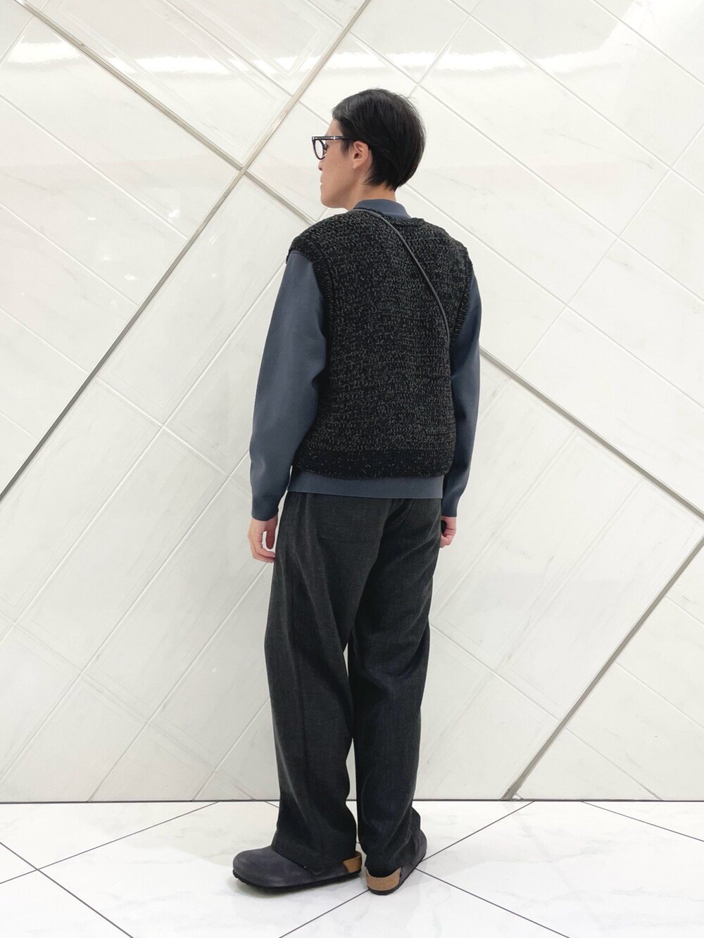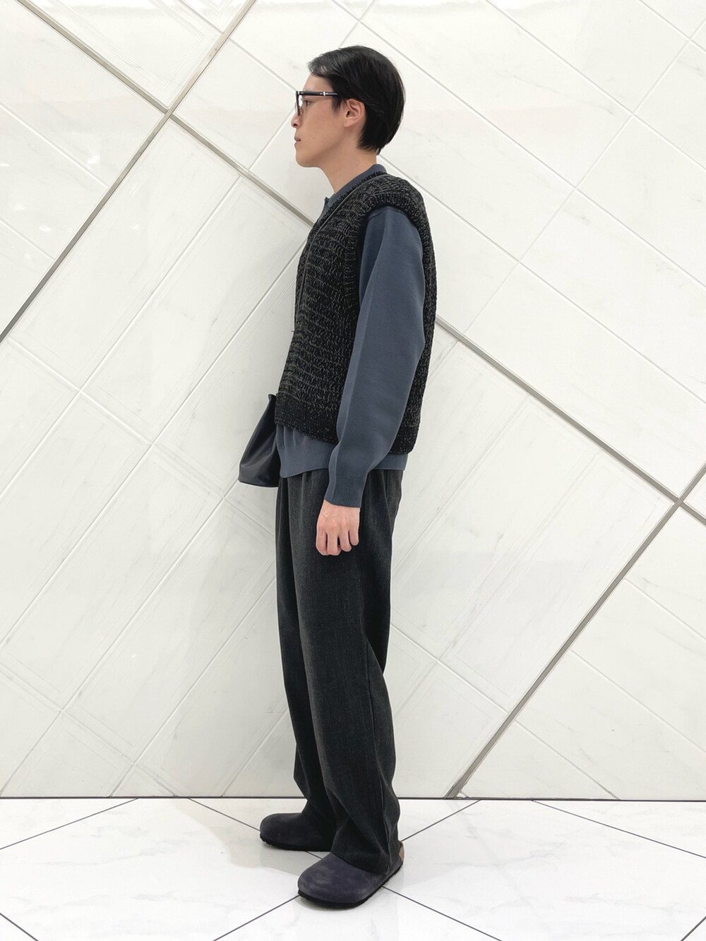 編地の違うニットを重ねることで、素材感にメリハリの出るスタイリングにしました。