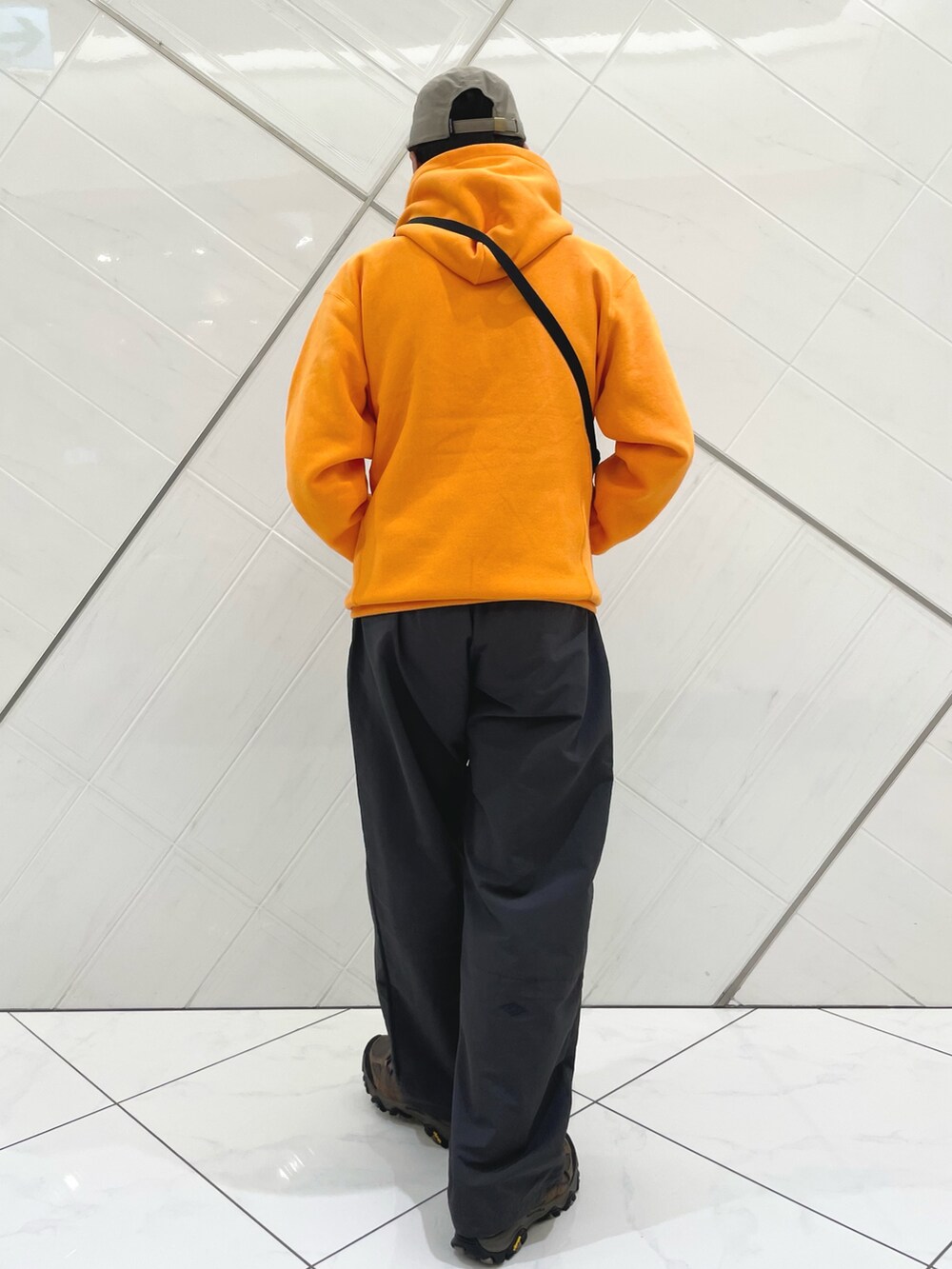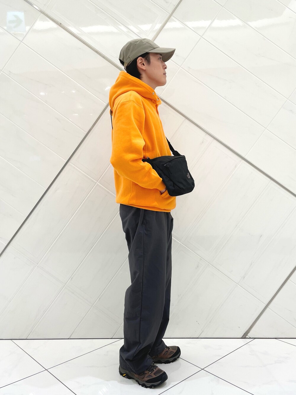 秋を感じるオレンジカラーはブラックやホワイト等のベーシックなカラーとも相性抜群ですが、グレー等のアースカラーと合わせてあげると、落ち着きを感じるスタイリングになります。