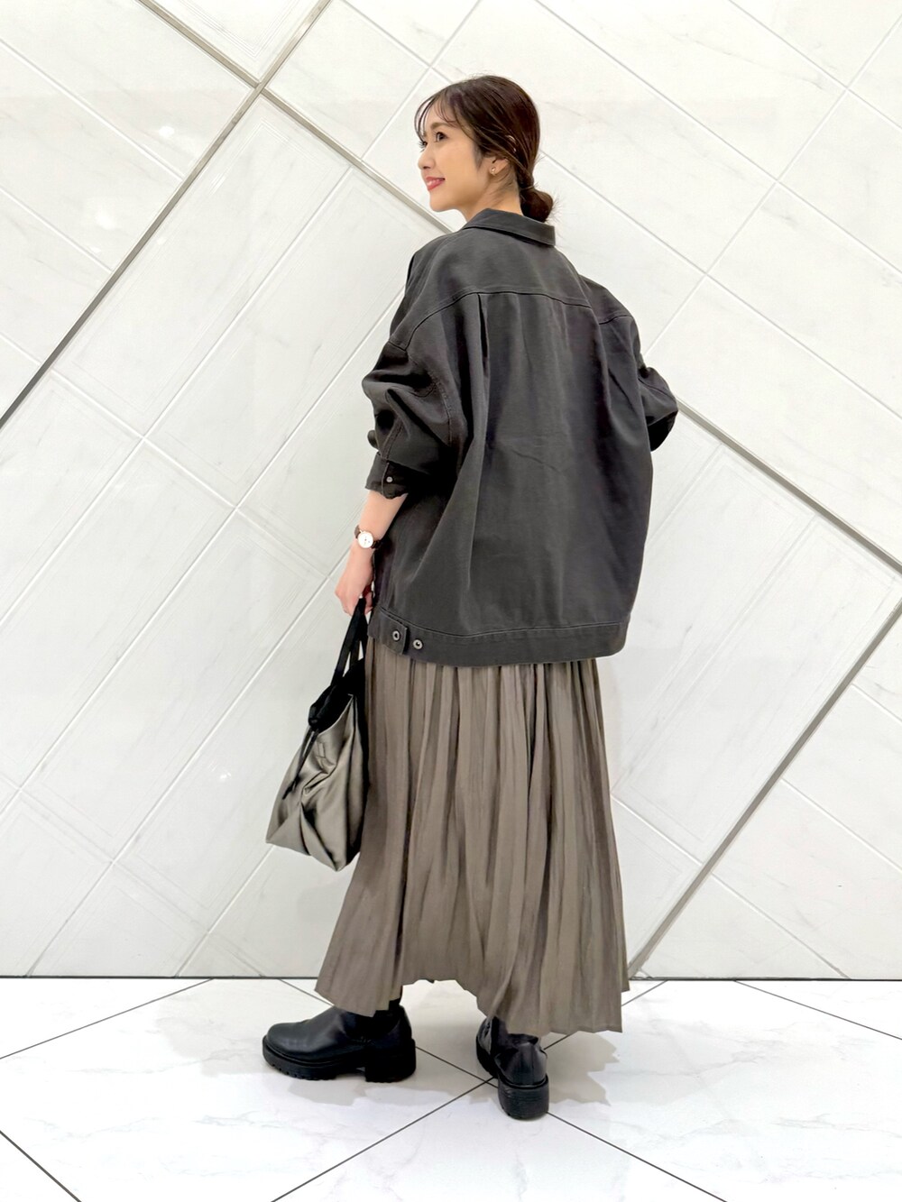 ジャケットはゆったりとしたサイズ感で少し襟を抜いて着るとこなれ感が出て可愛いのでおすすめです(^^)