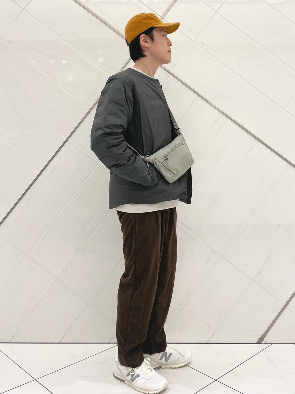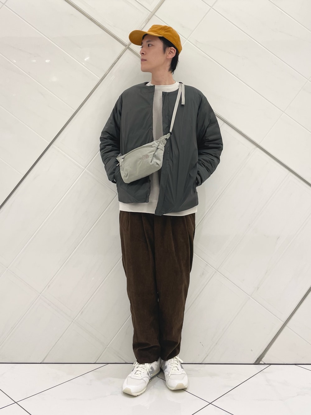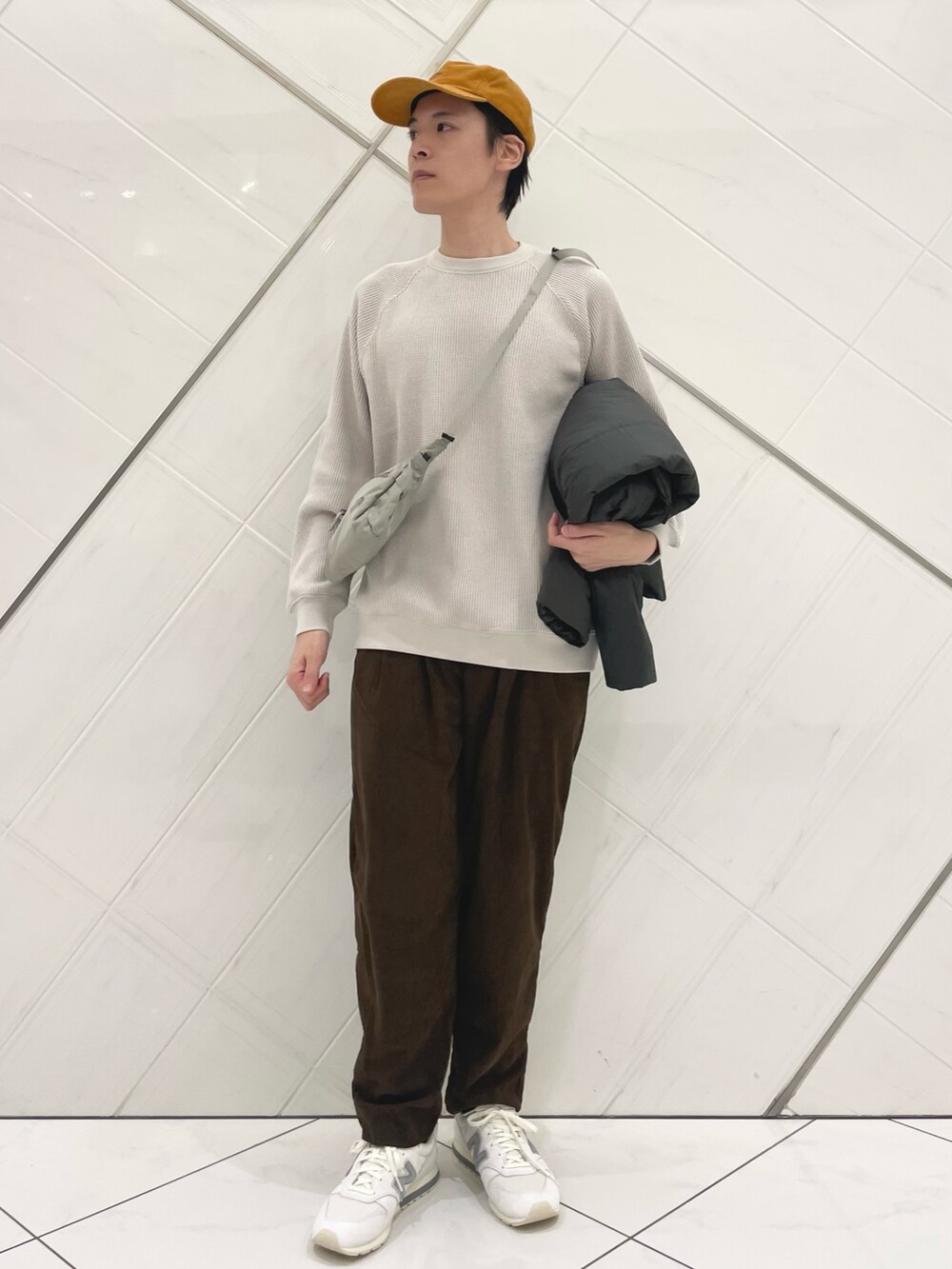 ブラウン、カーキのアースカラーのメインアイテムに対して、アイボリー等のホワイトカラーをアクセントとして取り入れ、軽やかな印象にしました。