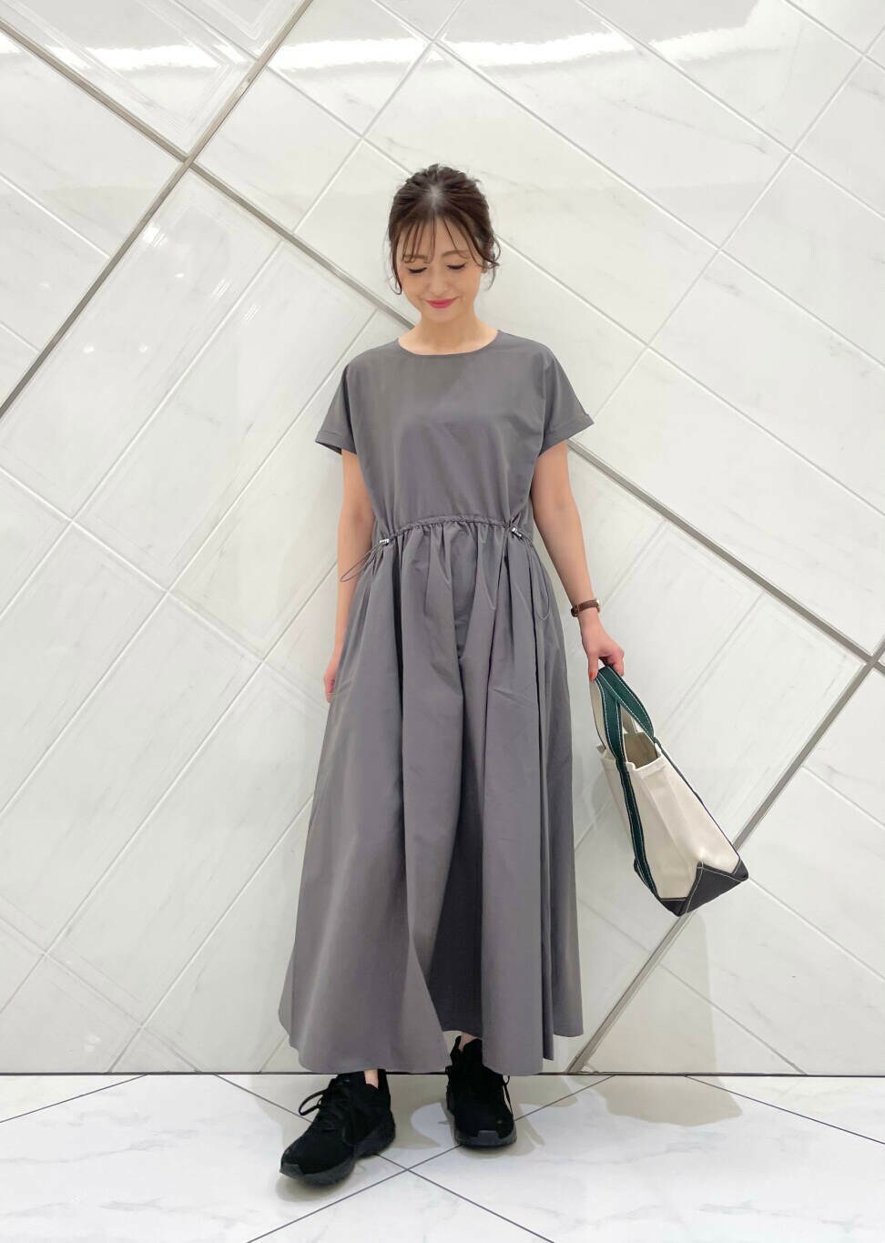ワンピースは薄手でつるっとした肌触りで軽いのでとても楽ちんな着心地です。