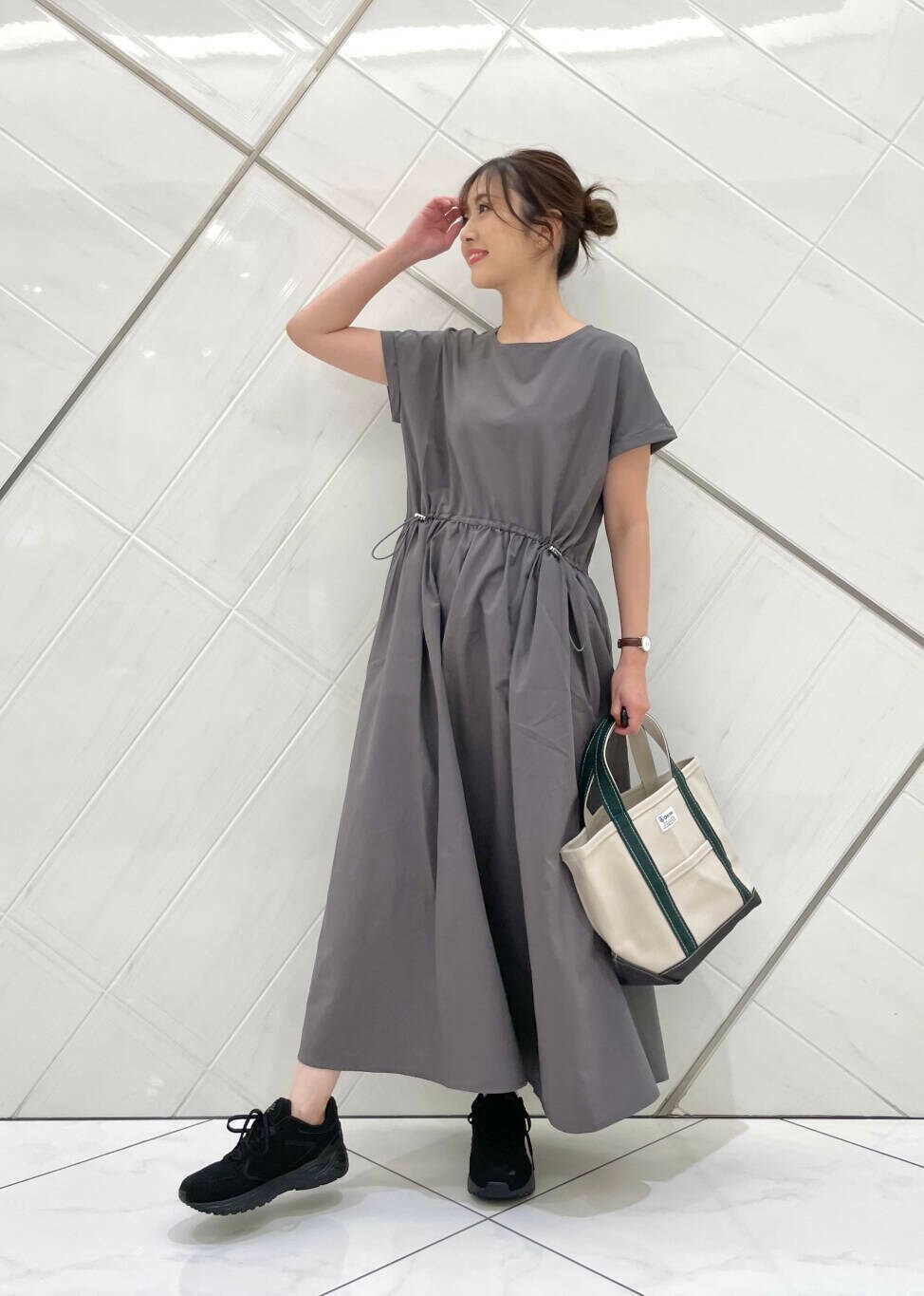ウエストをお好みで絞ることができるのでメリハリのあるシルエットになりスタイル良く見えます。