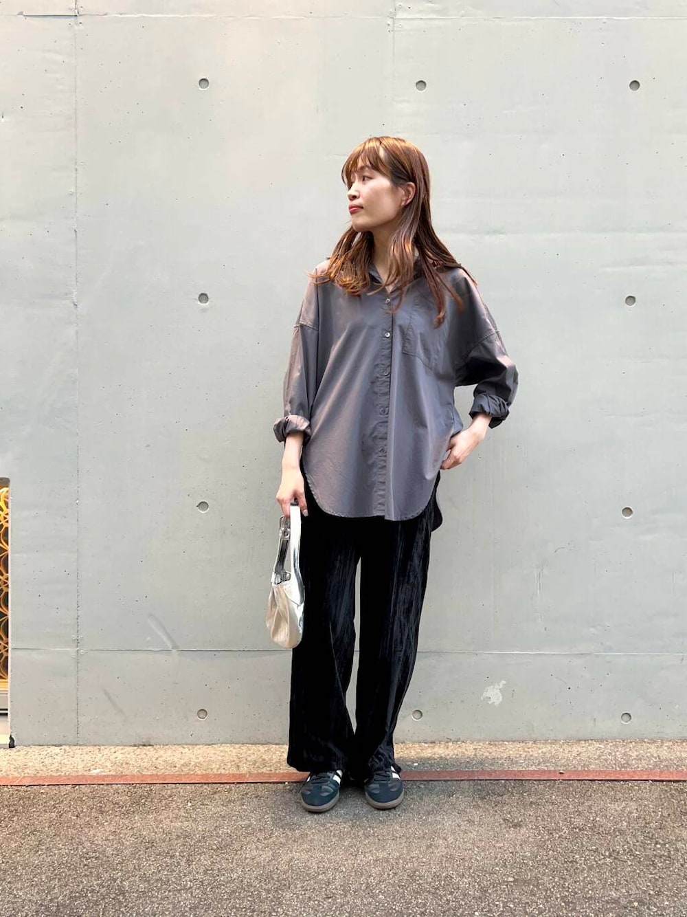 程よいハリ感のシャツはゆったりしたサイズ感で