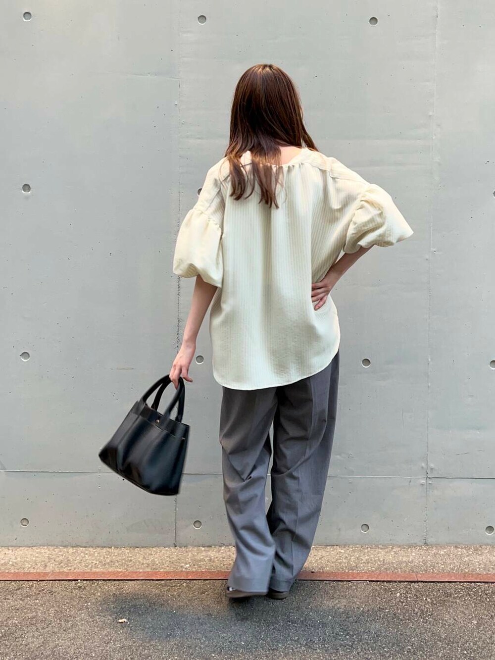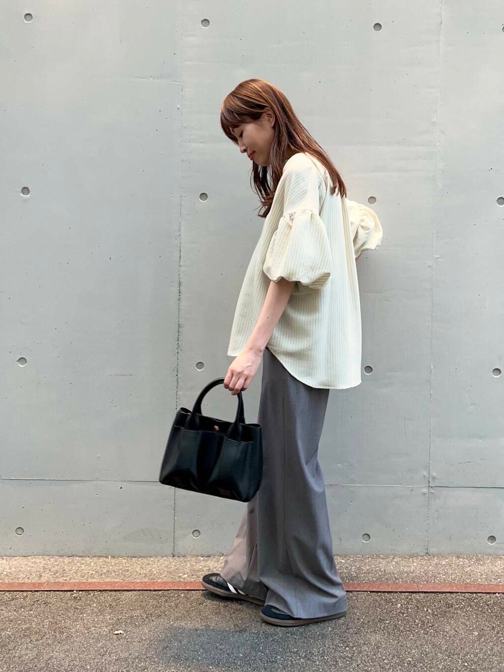 落ち感ある滑らかな生地のスラックスはオンオフ問わず