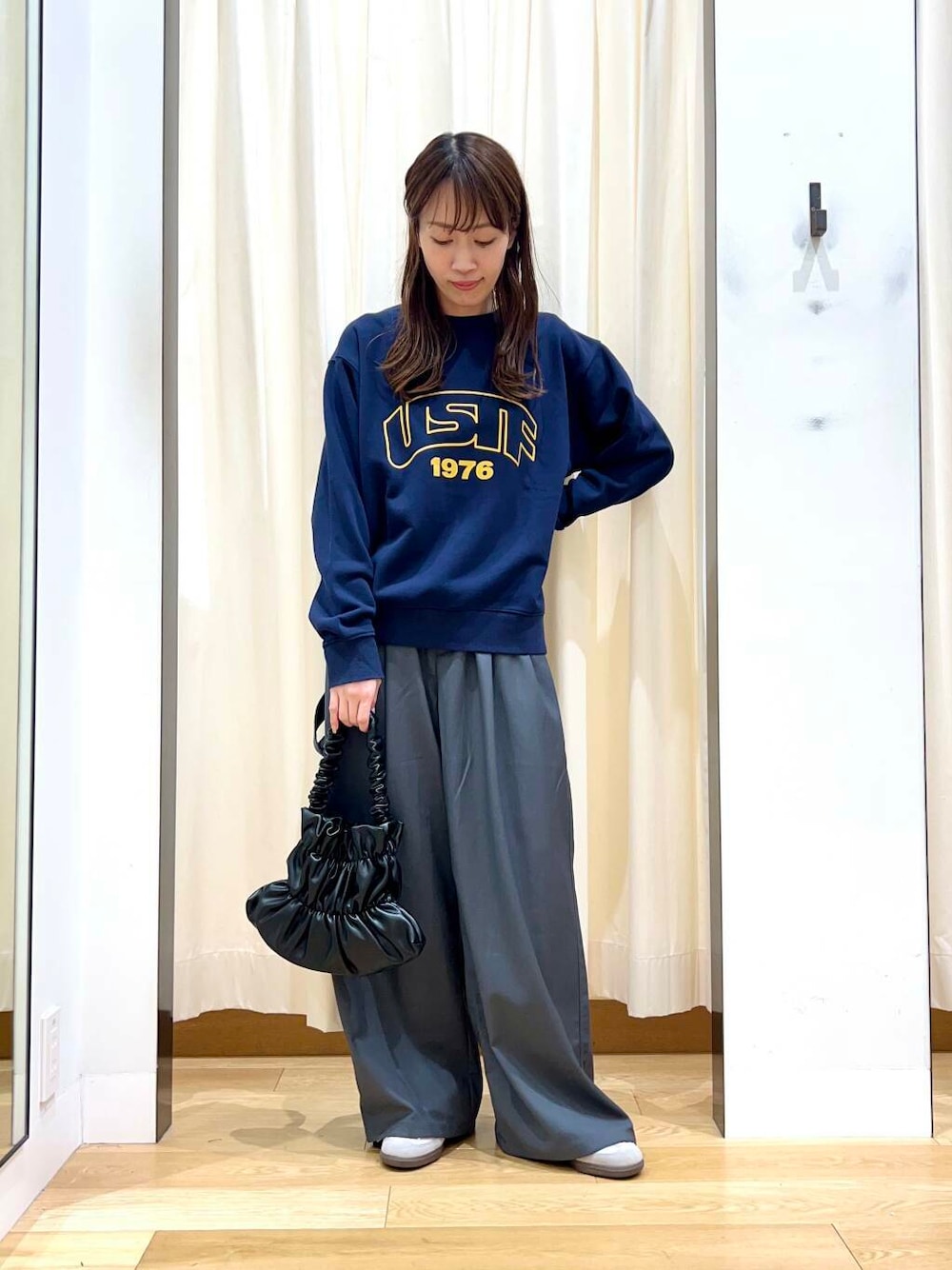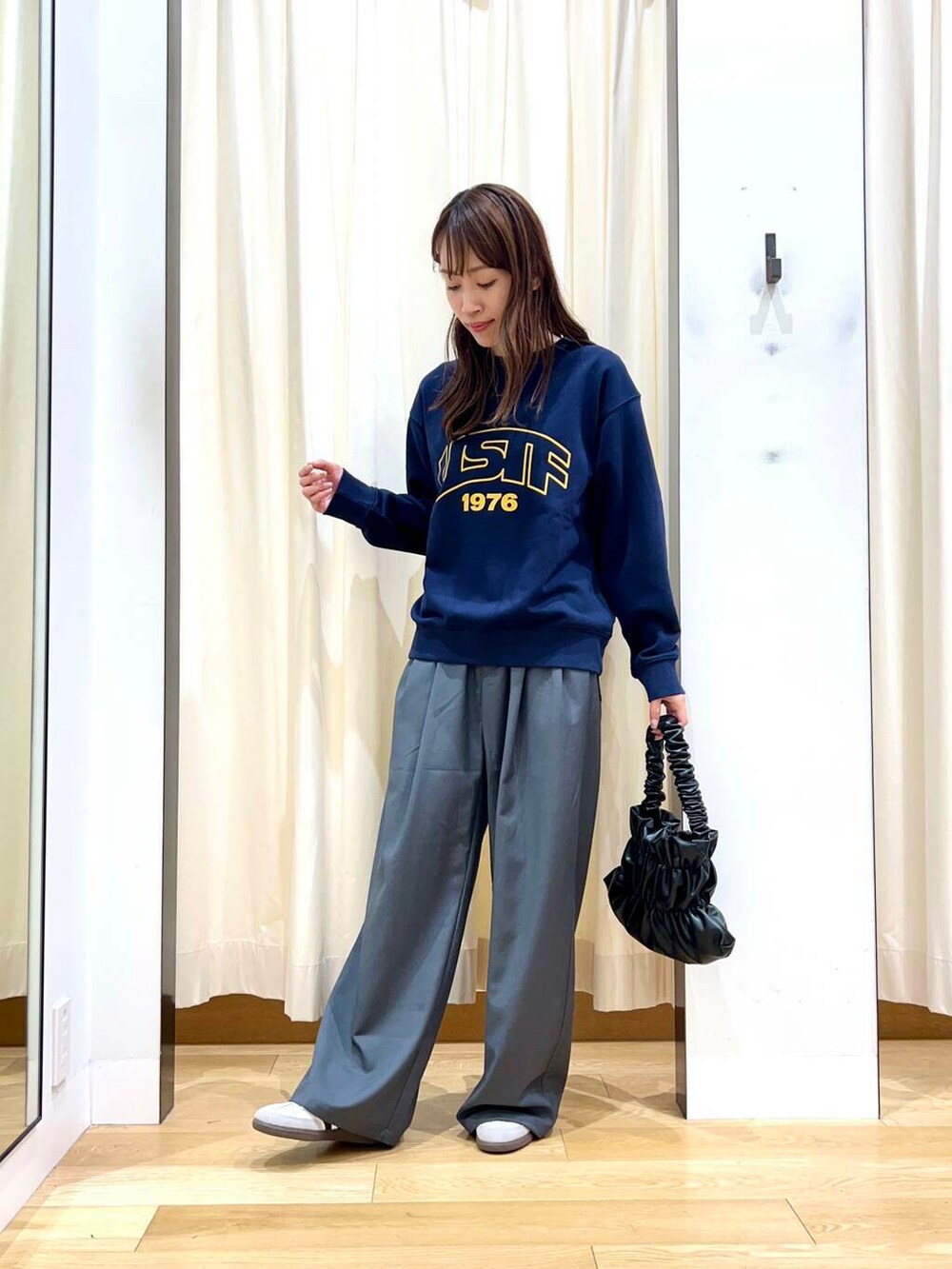 スラックスは綺麗めにもカジュアルにも合わせて頂ける