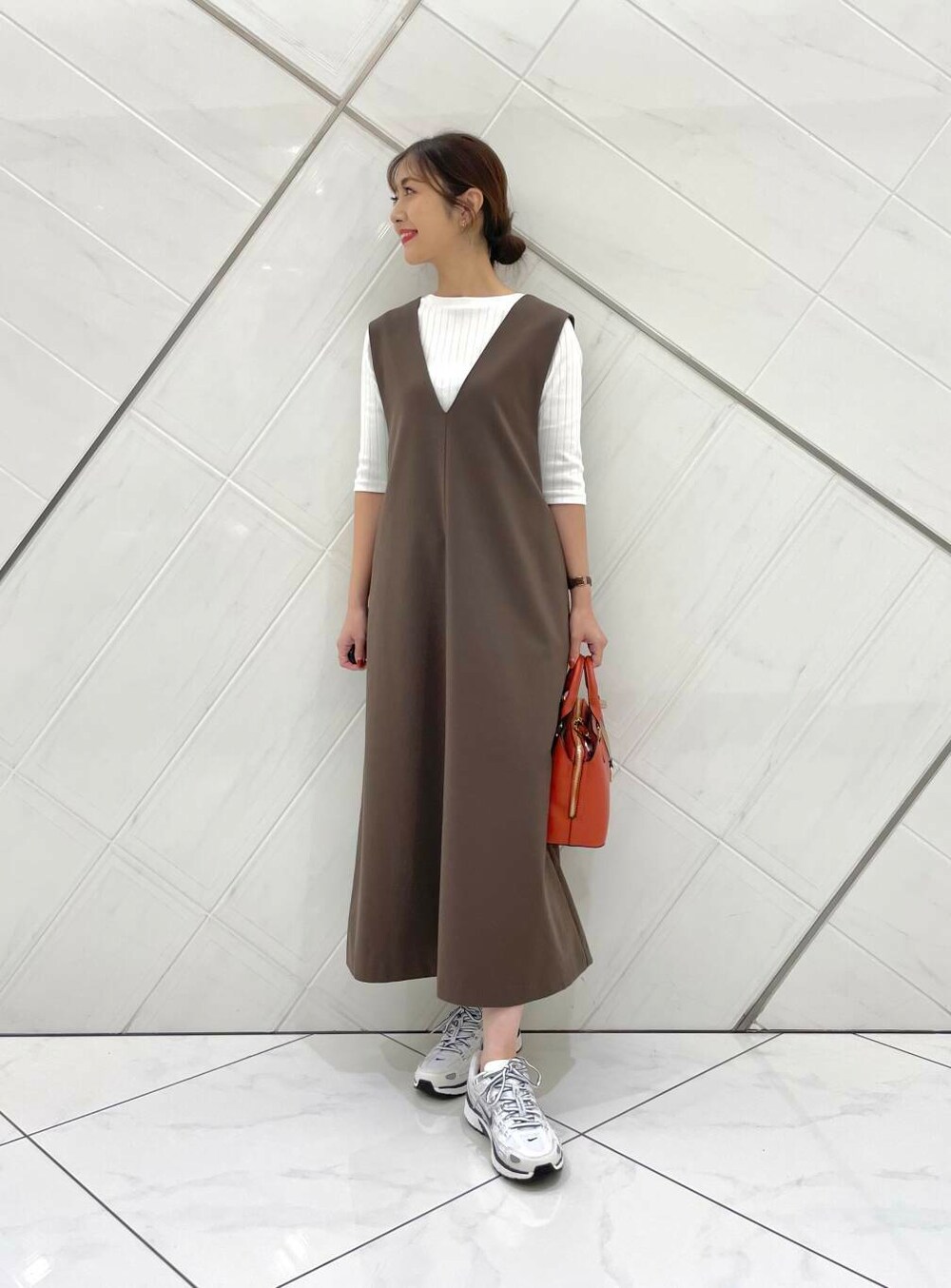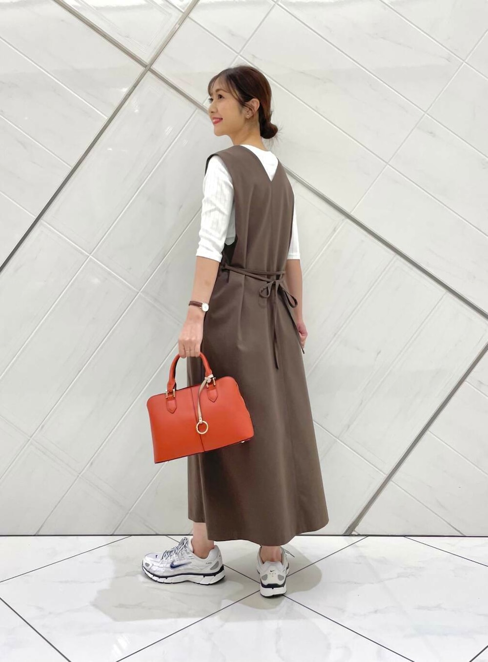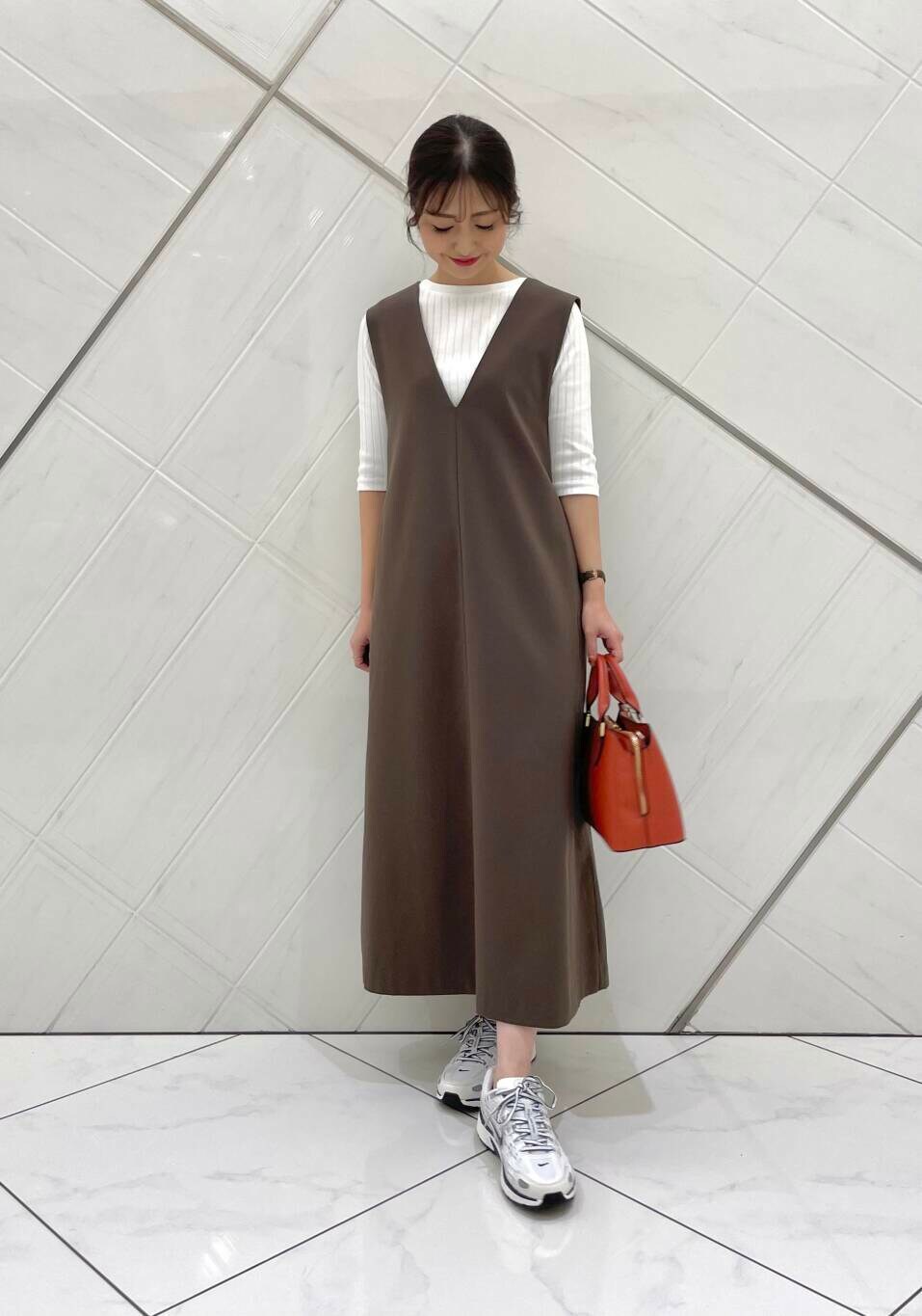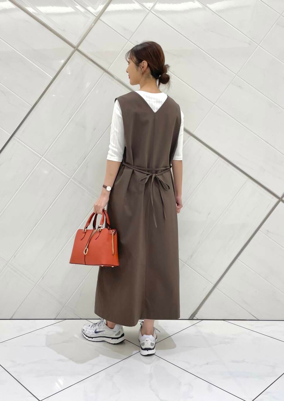 アームホールは深めに開いているのでボリュームスリーブのトップスも合わせやすく、インナー次第で雰囲気も変えられます。