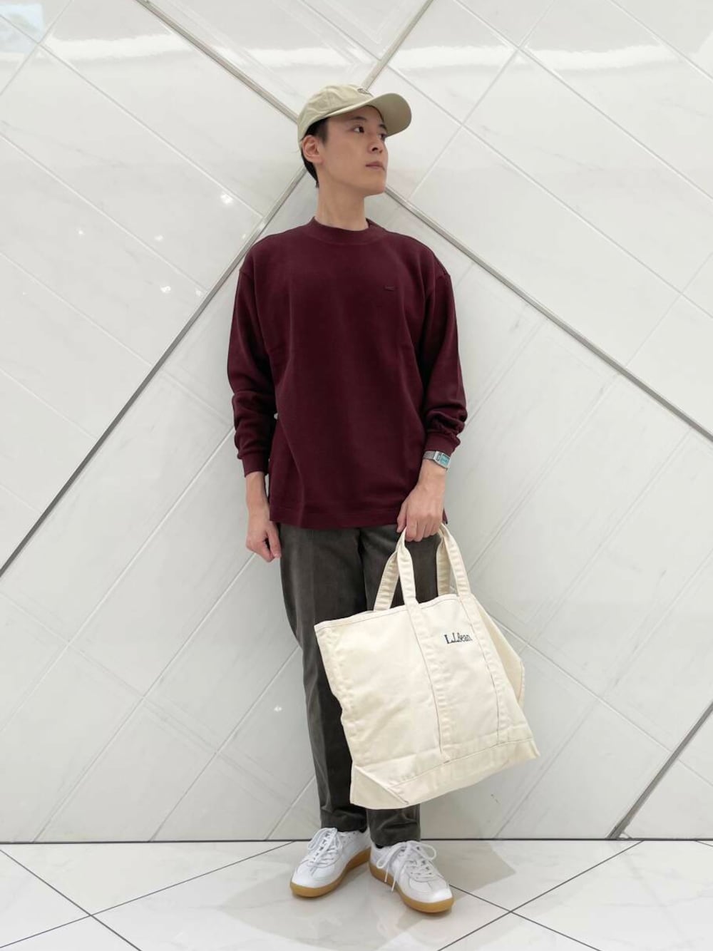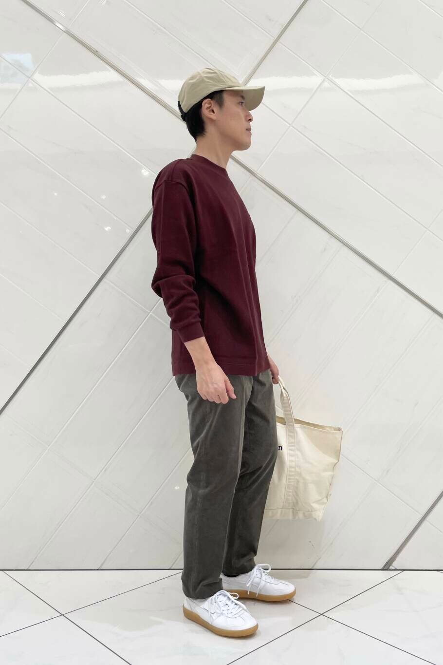 もはや定番のこちらの長袖Tシャツ、今回は一着で秋らしい装いになる、バーガンディカラーが魅力的だと思います。サイズ感もゆったりめで、厚手の鹿の子生地の為、スウェット感覚で着用出来ます。