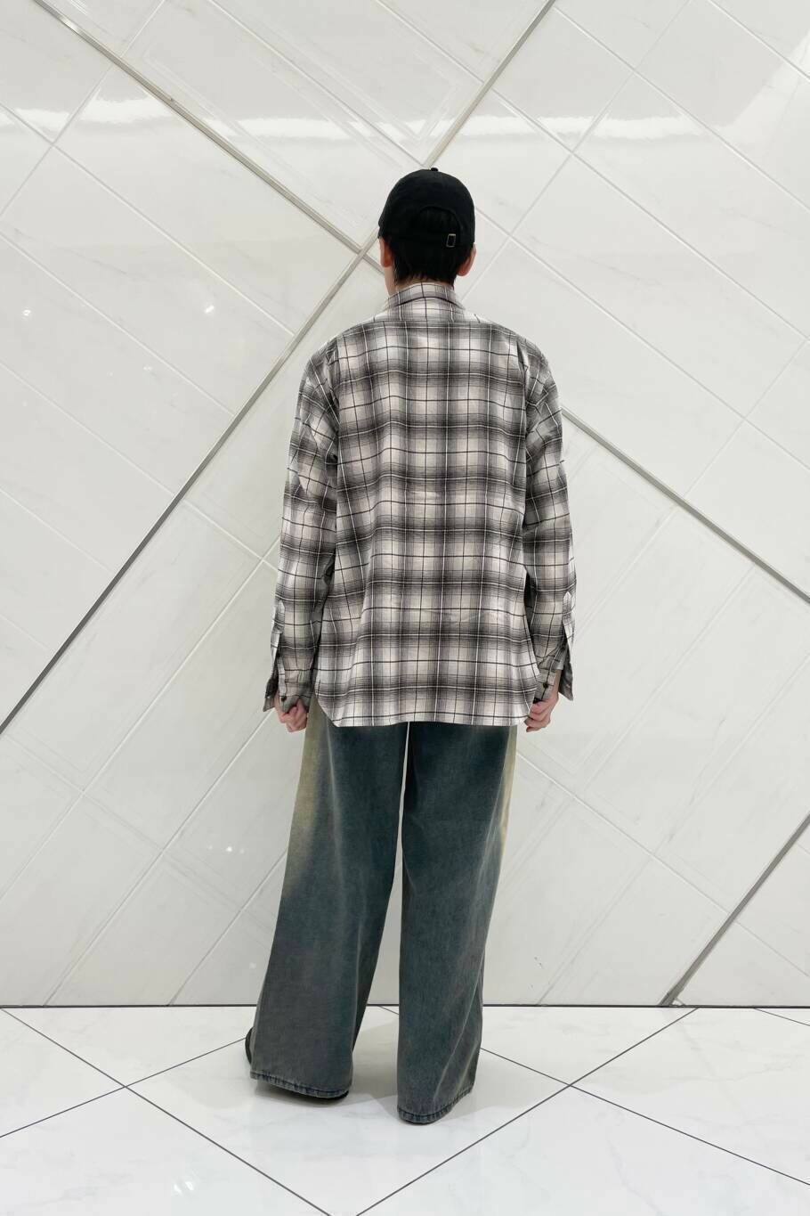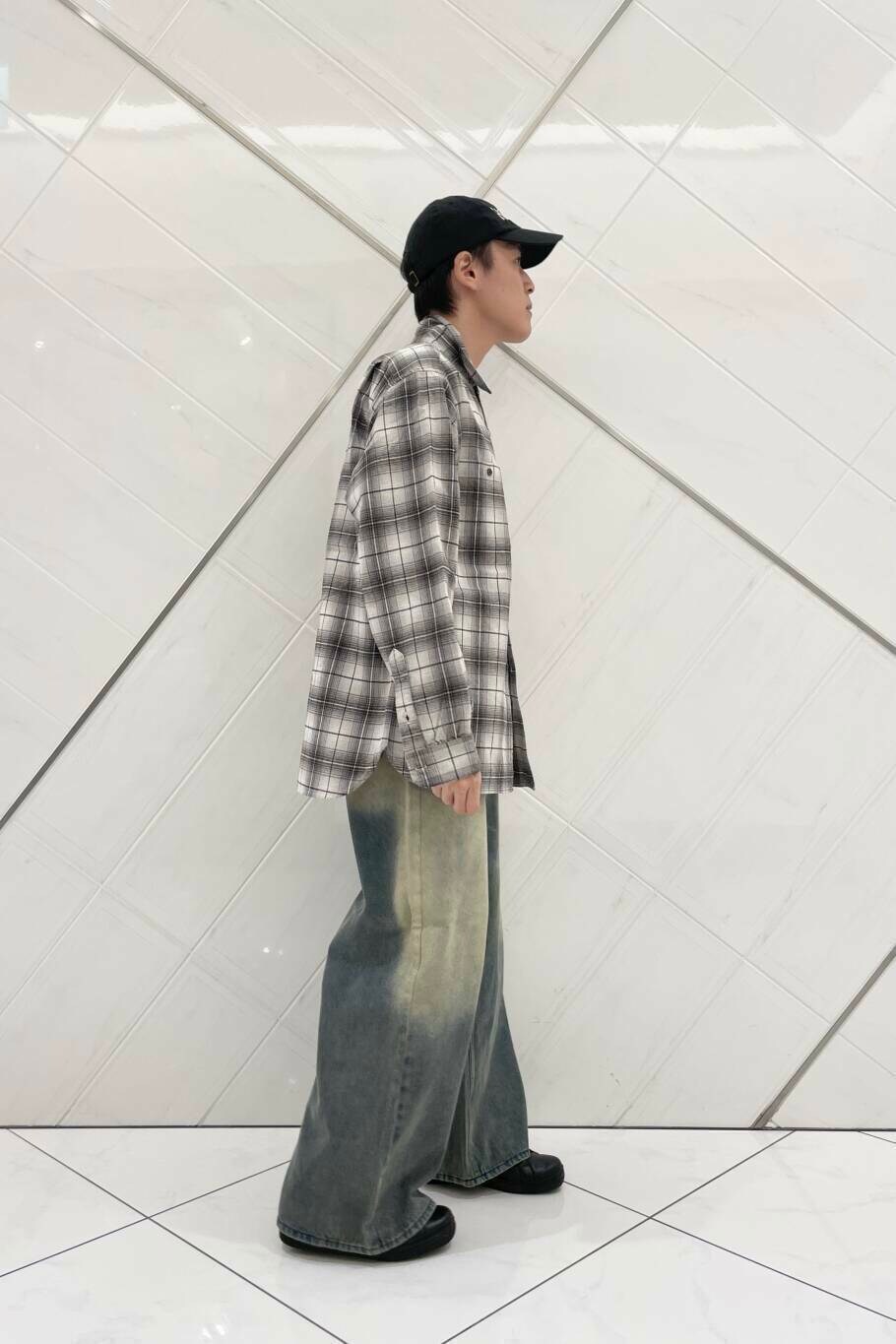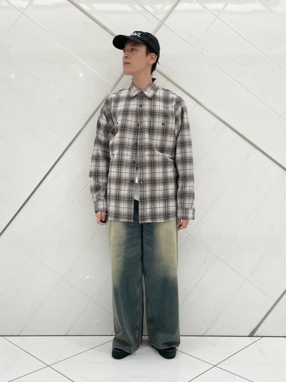 PENDLETON × DOORS のチェックシャツを使用した、トレンドのAラインを意識したスタイリングです。