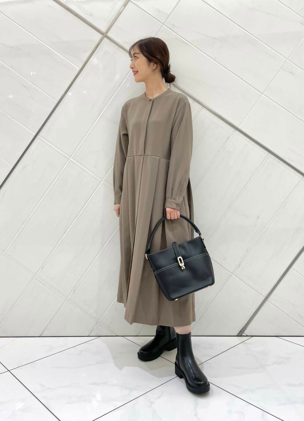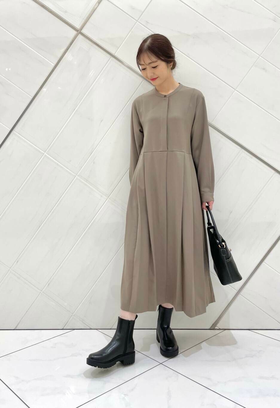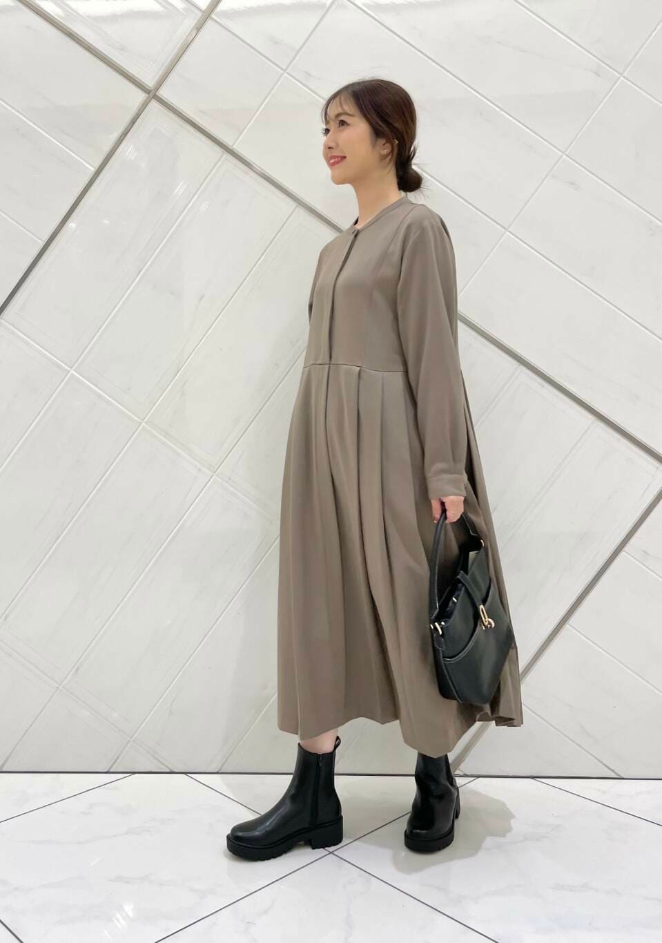 熊本店でも人気のワンピースは滑らかな肌触りで着心地もよく、イージーケアなど機能性にも富んでおり合わせるシューズや小物次第でキレイめからカジュアルにも幅広く活躍します。