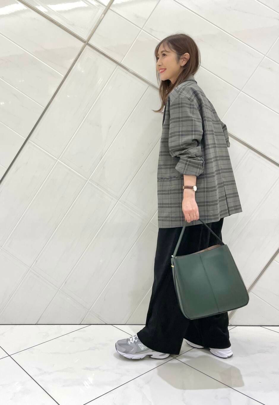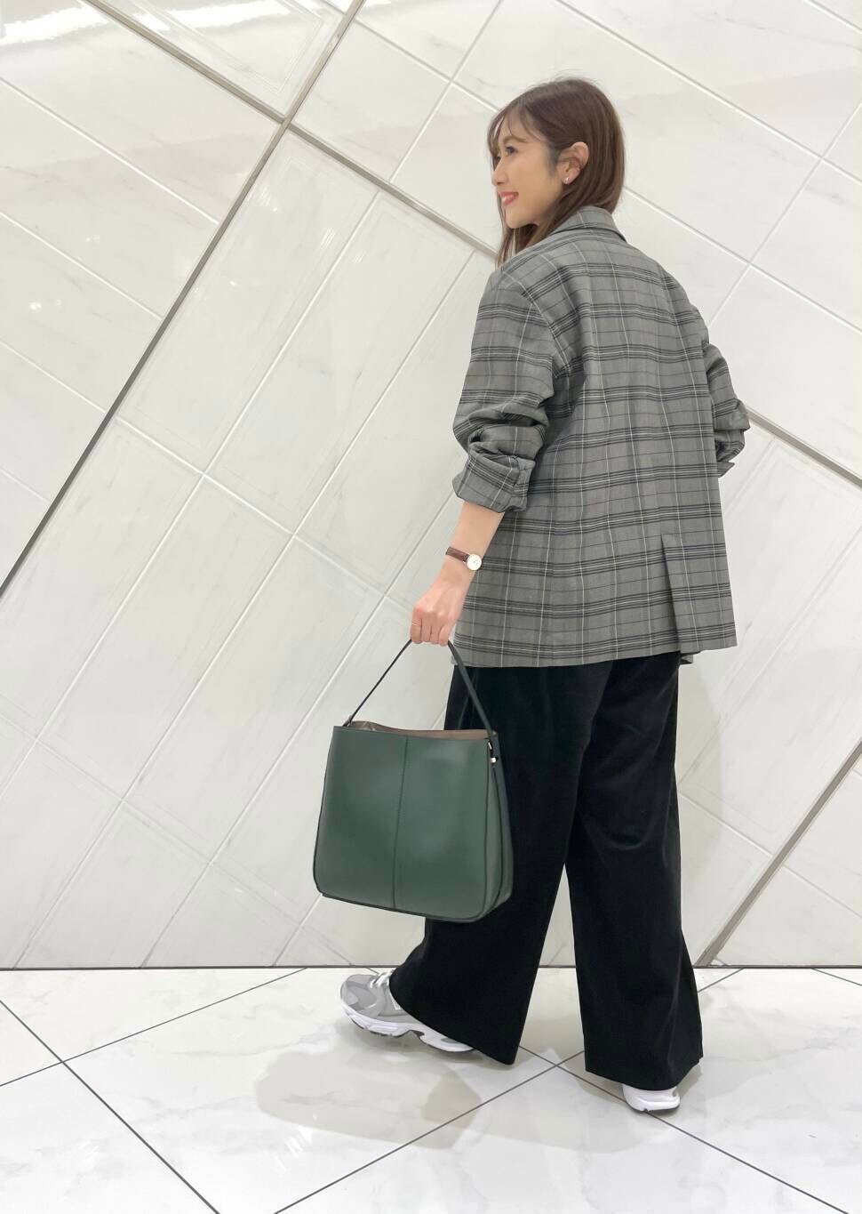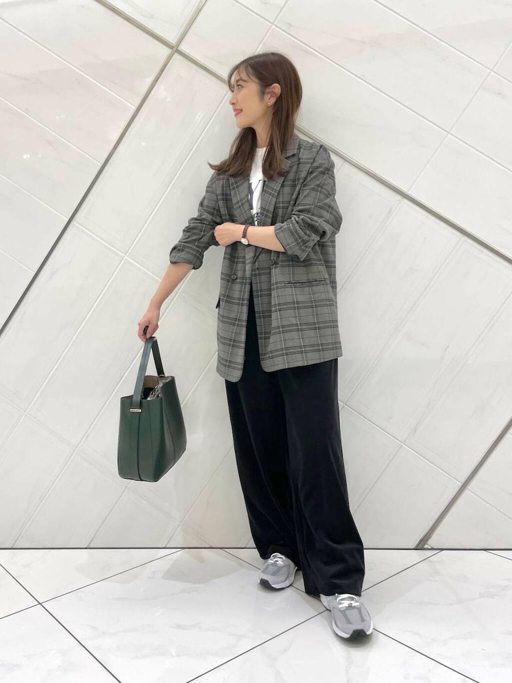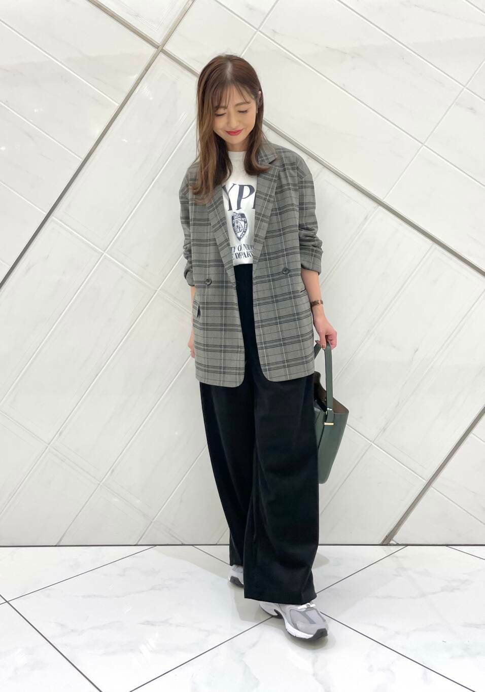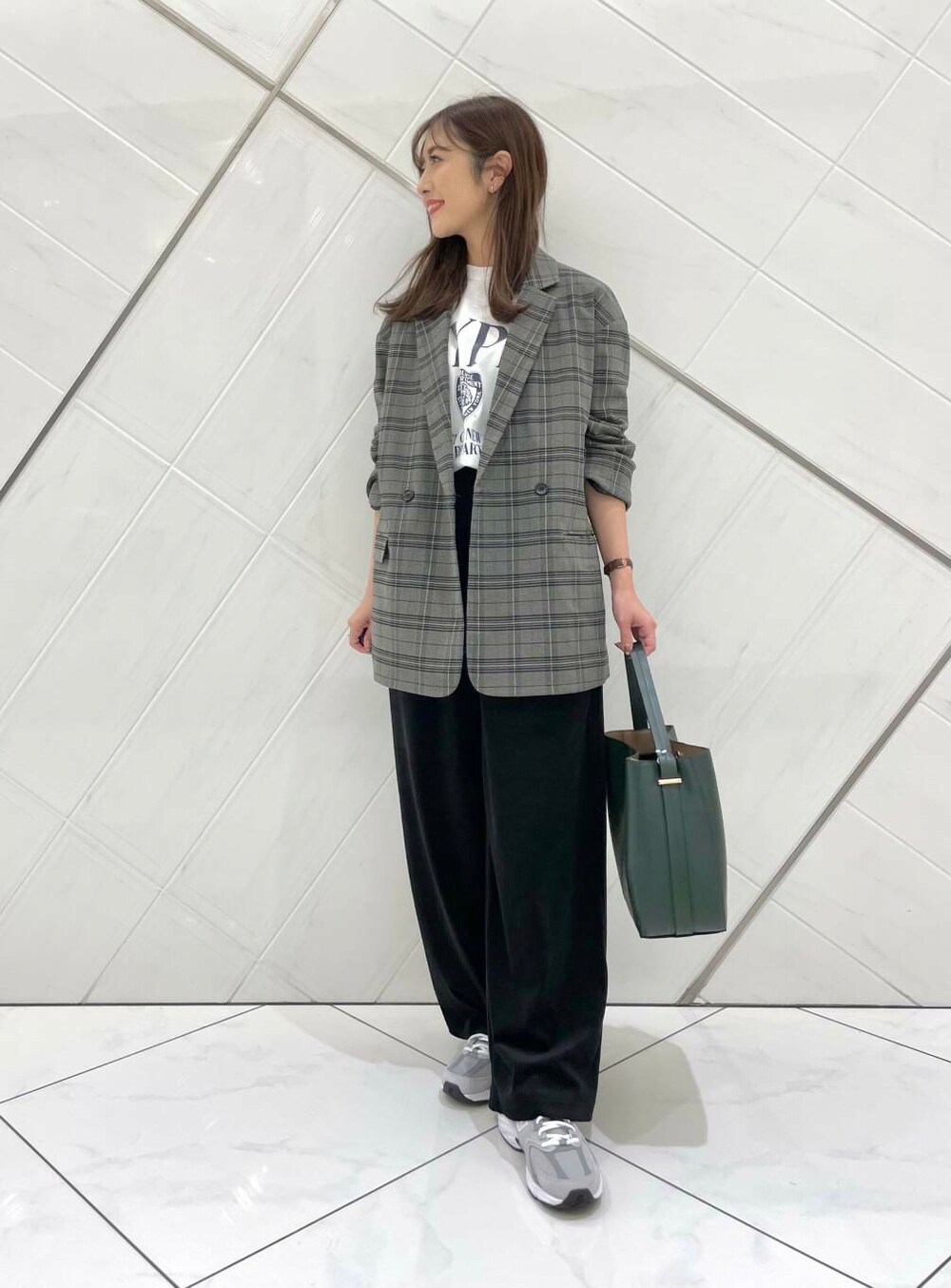 合わせるアイテム次第でカジュアルからキレイめまでコーディネートを楽しめるFORK&SPOONのジャケットはやや厚みがあり、ハリのある生地で全体的にオーバーシルエットなので少し袖をまくって羽織ると抜け感が出て可愛いです。