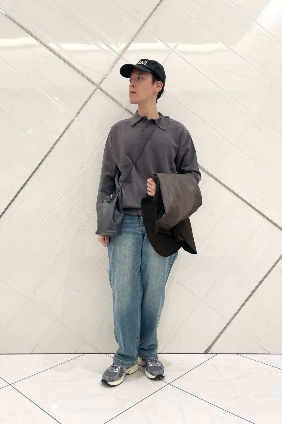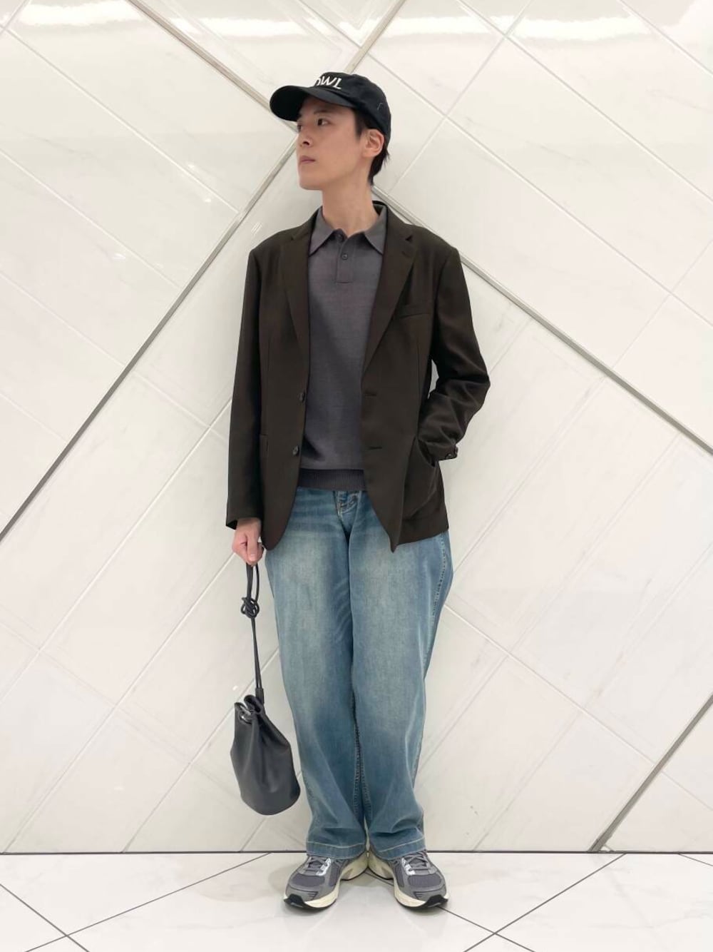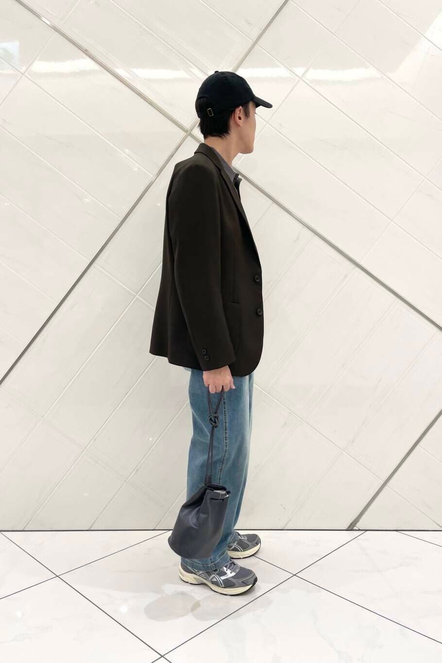 セットアップ展開のあるこちらのジャケットですが、今回は一つサイズを上げてカジュアルでルーズな雰囲気で合わせてみました。