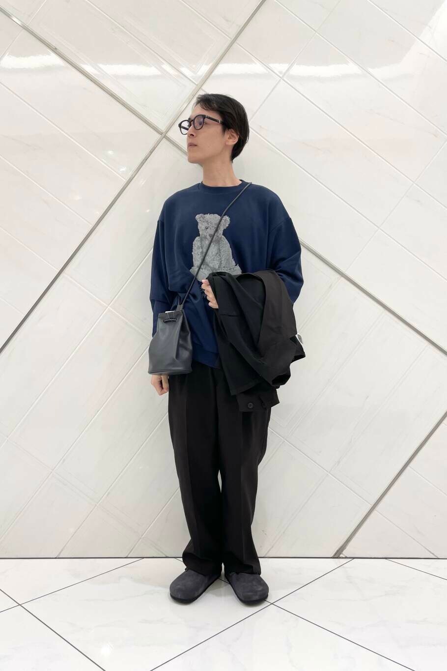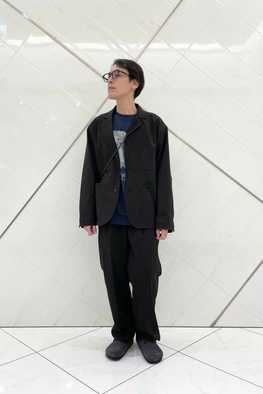 サイズ感は、私の体型だと サイズ 4 でジャストサイズで、程よくゆとりのあるサイズ感になりますが、今回はカジュアルに着崩すというのが自分の中のテーマだったので、サイズを上げてルーズな印象にしてみました!