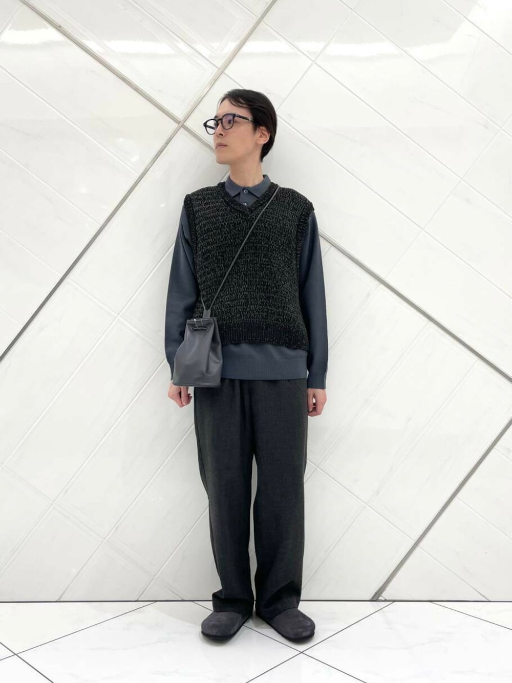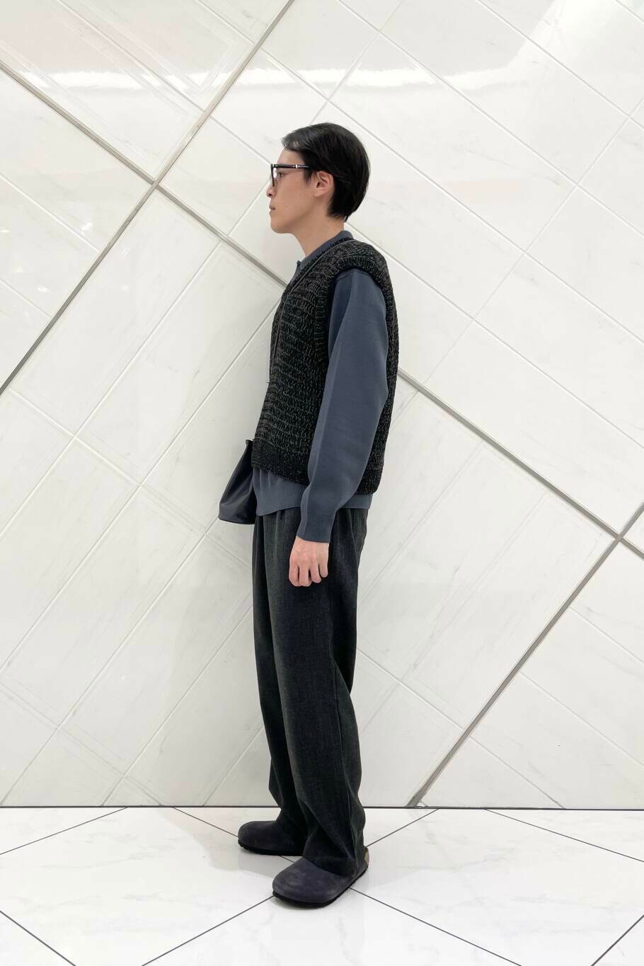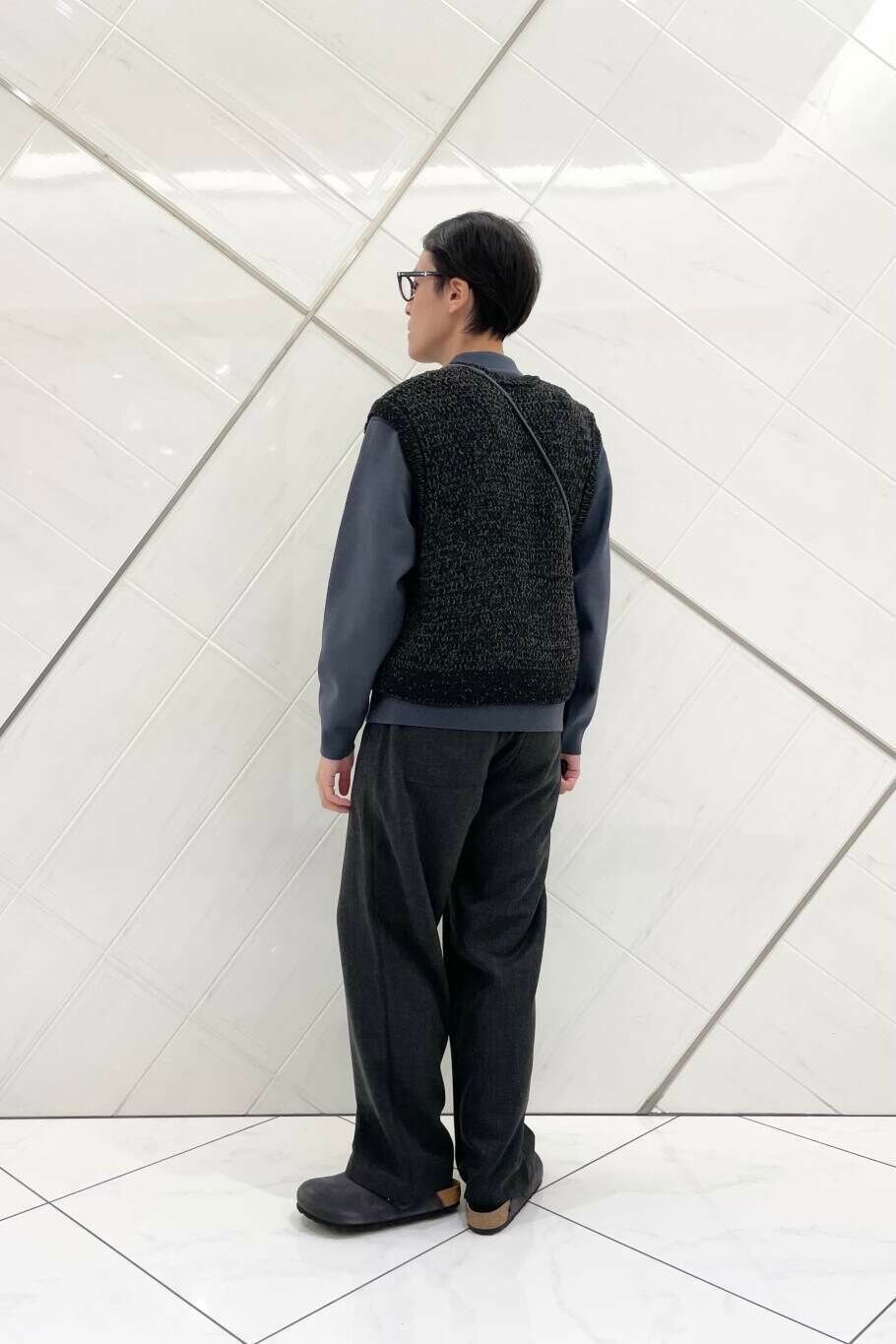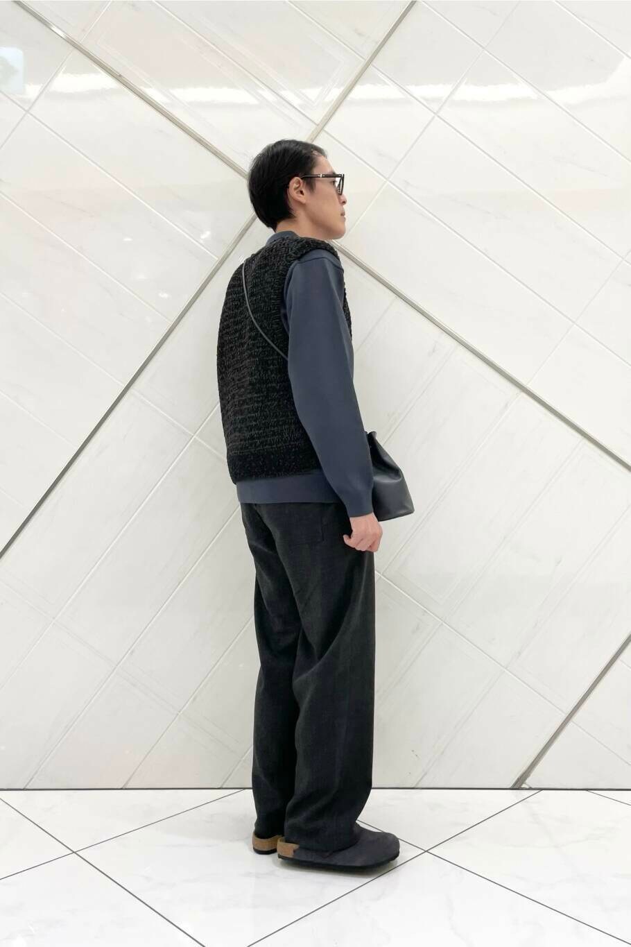 今回は少し先の季節を意識し、SENSE OF PLACE のミックスヤーンベストを取り入れました。