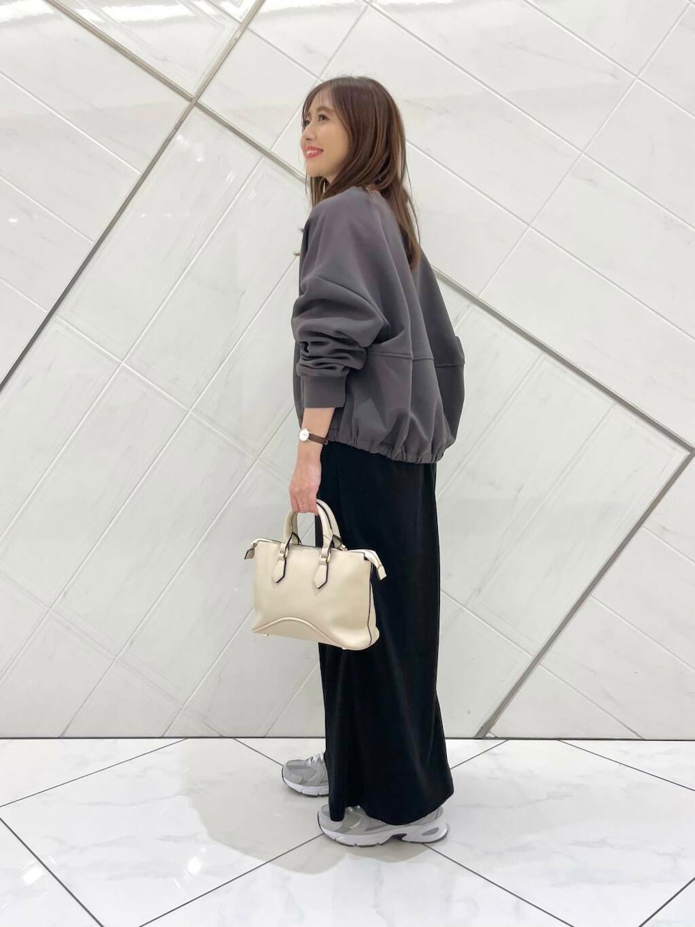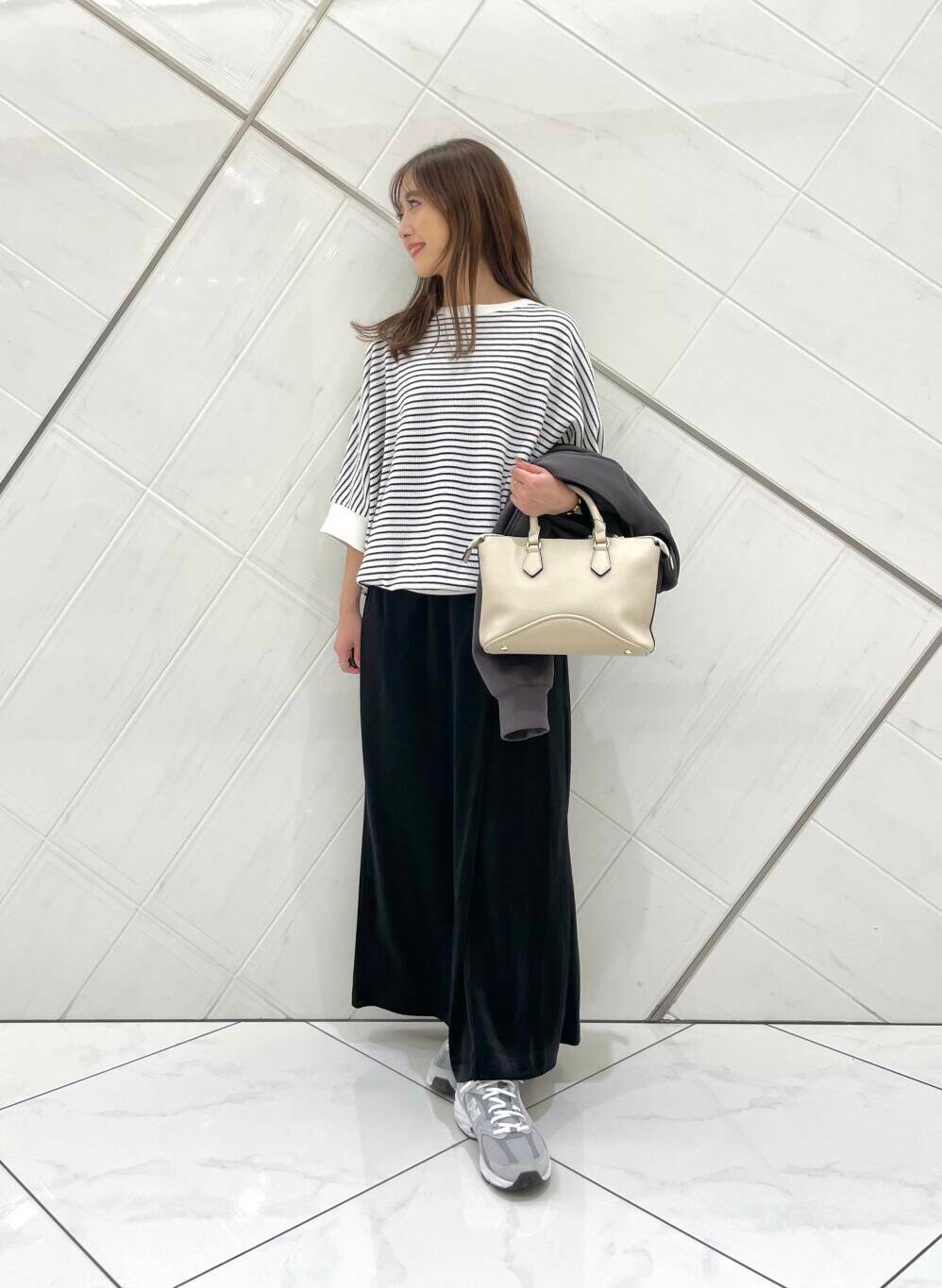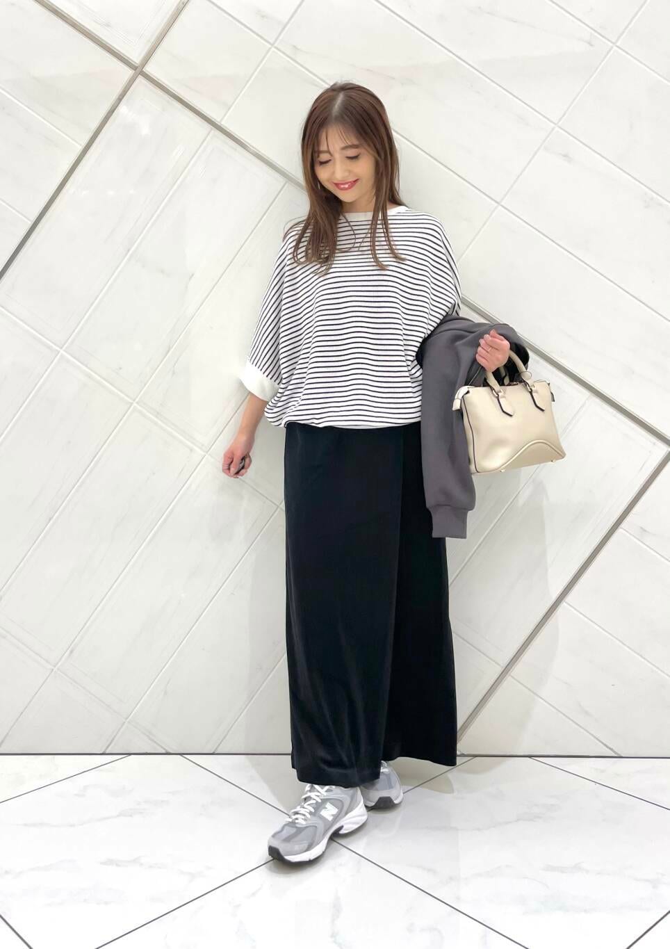スカートはタイト過ぎないIラインのシルエットで着回ししやすいのでおすすめです。
