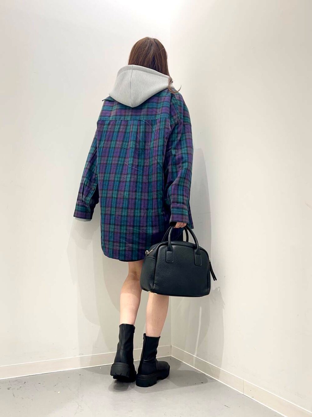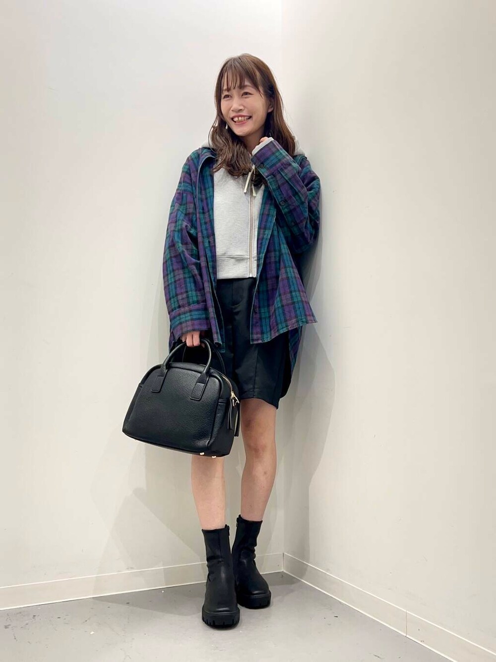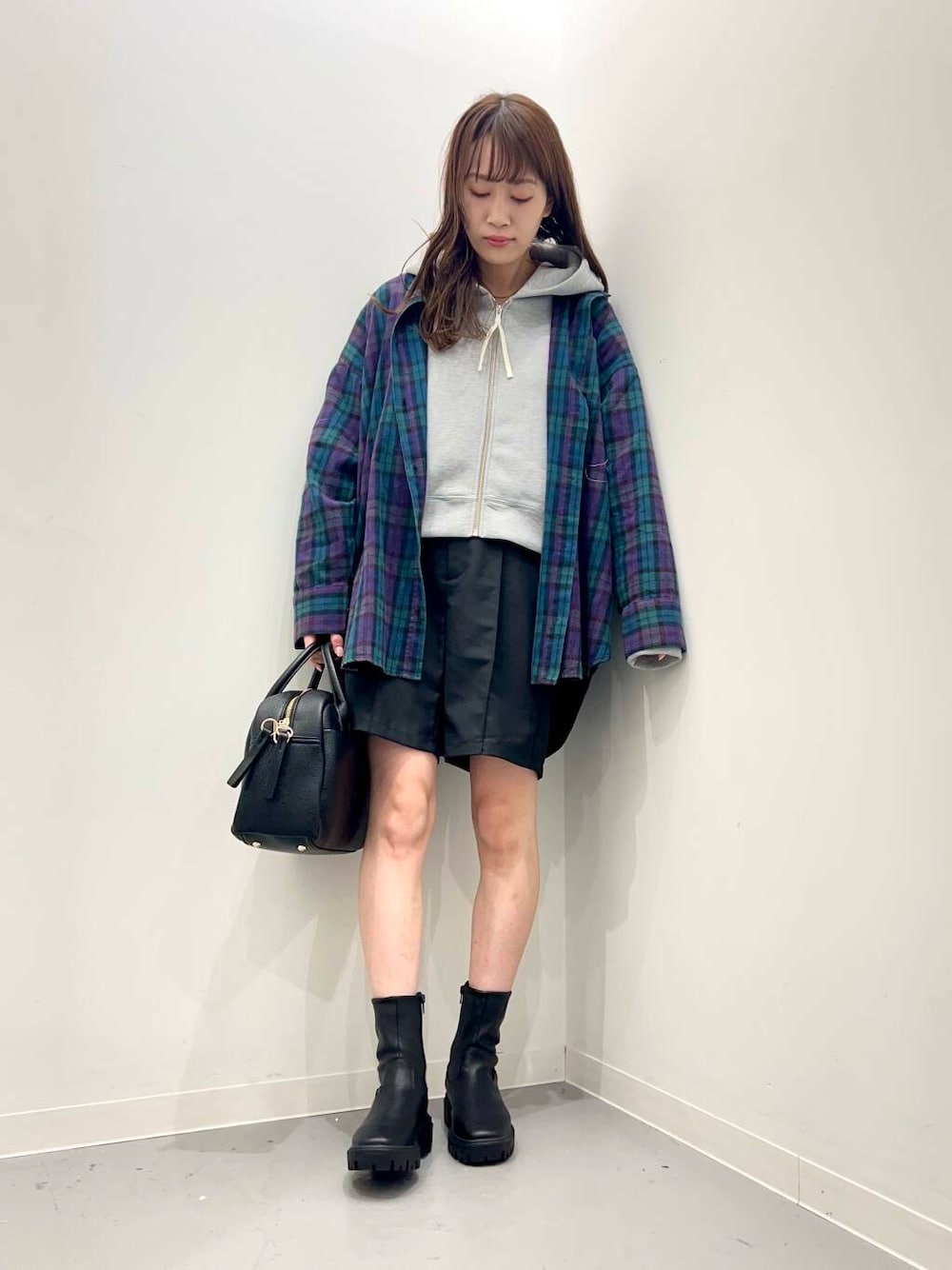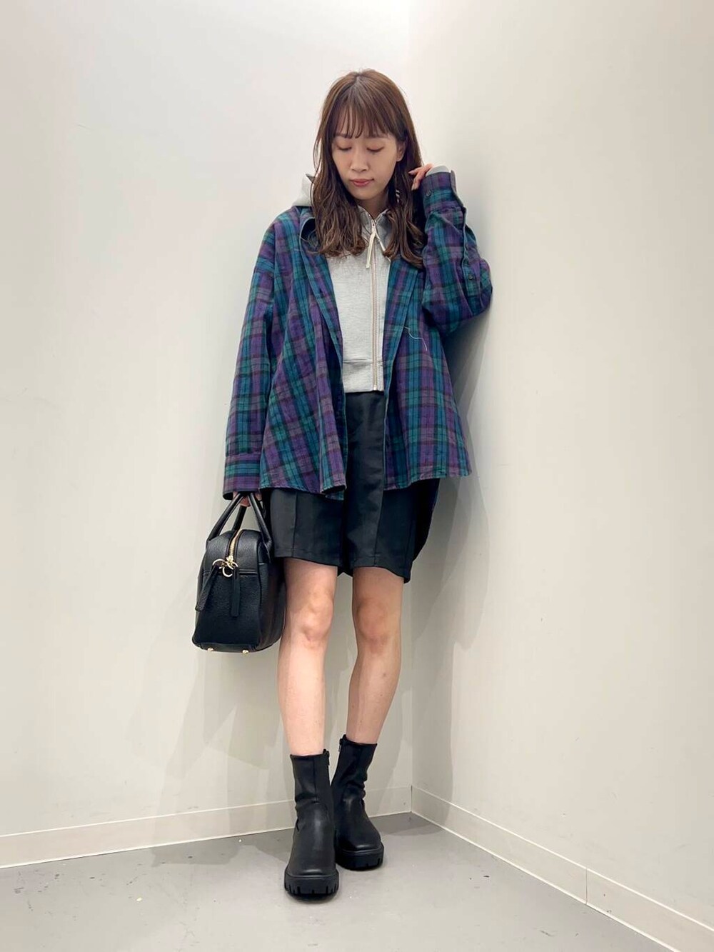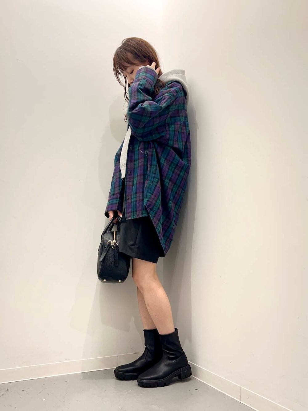 大きめのチェックシャツは1枚ではもちろん、羽織りとしても