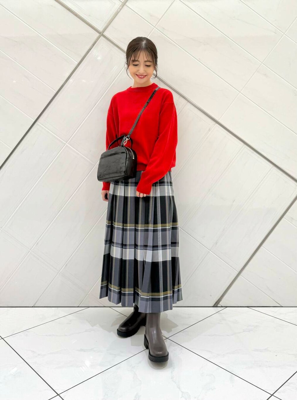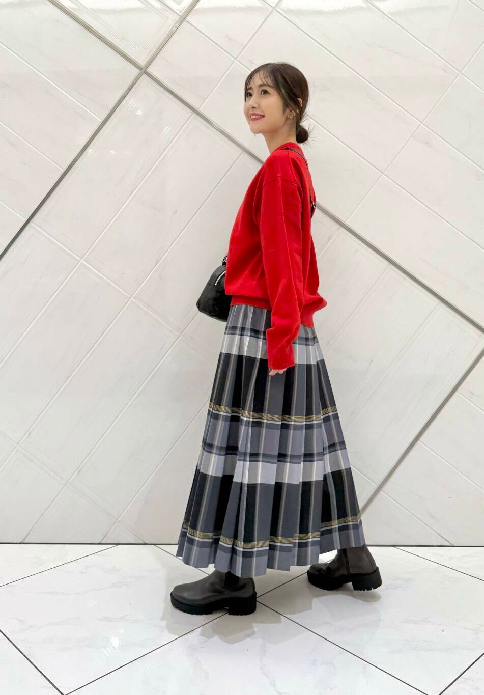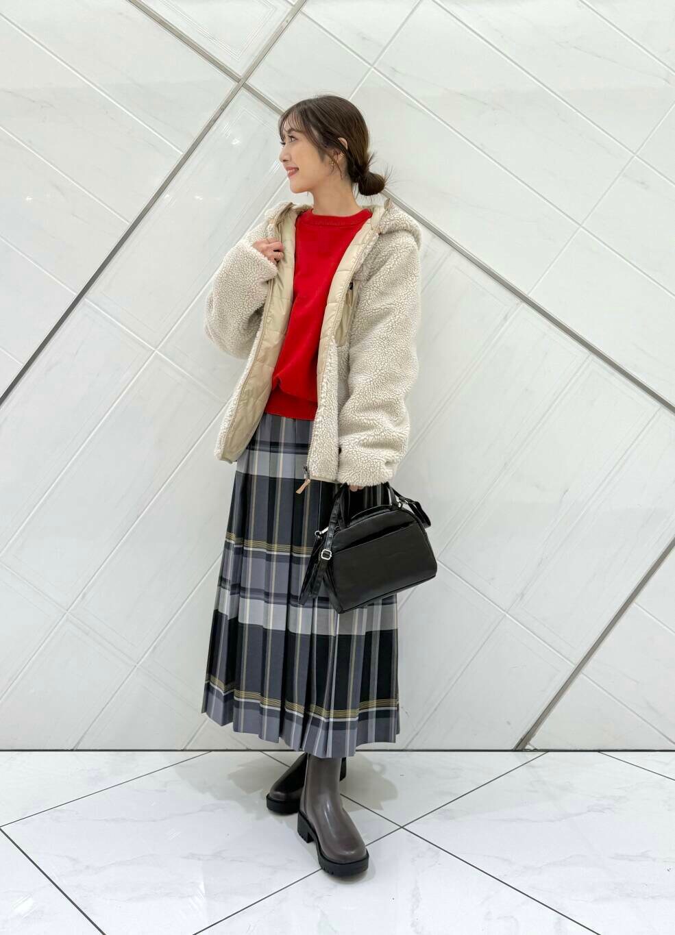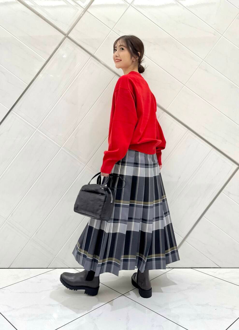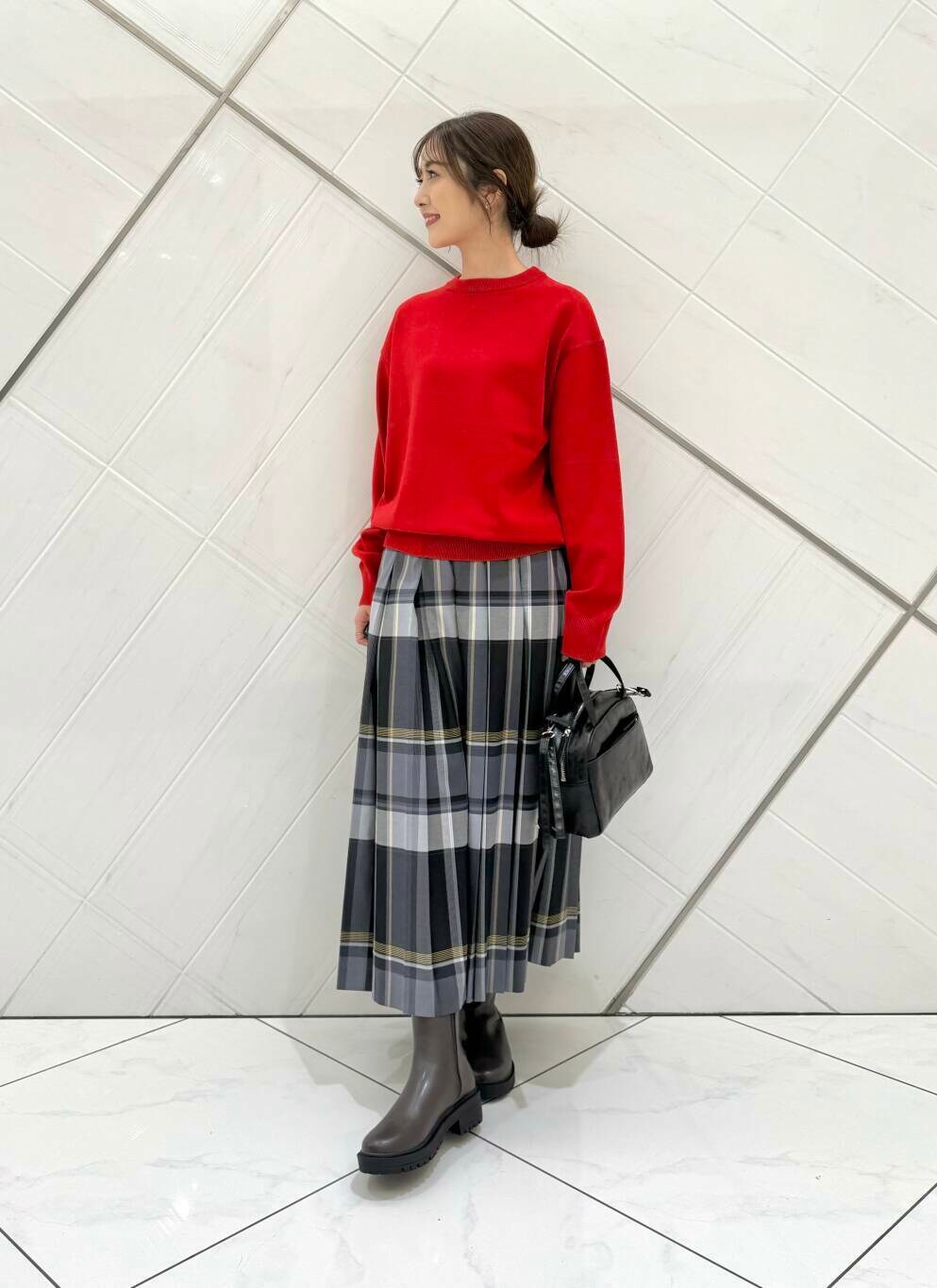 ボトムスを選ばず、暗くなりがちな秋冬のコーディネートにアクセントが付いて、意外と発色のいい赤はベーシックなカラーやチェック柄にも合わせやすいので着回し力も抜群です(^^)