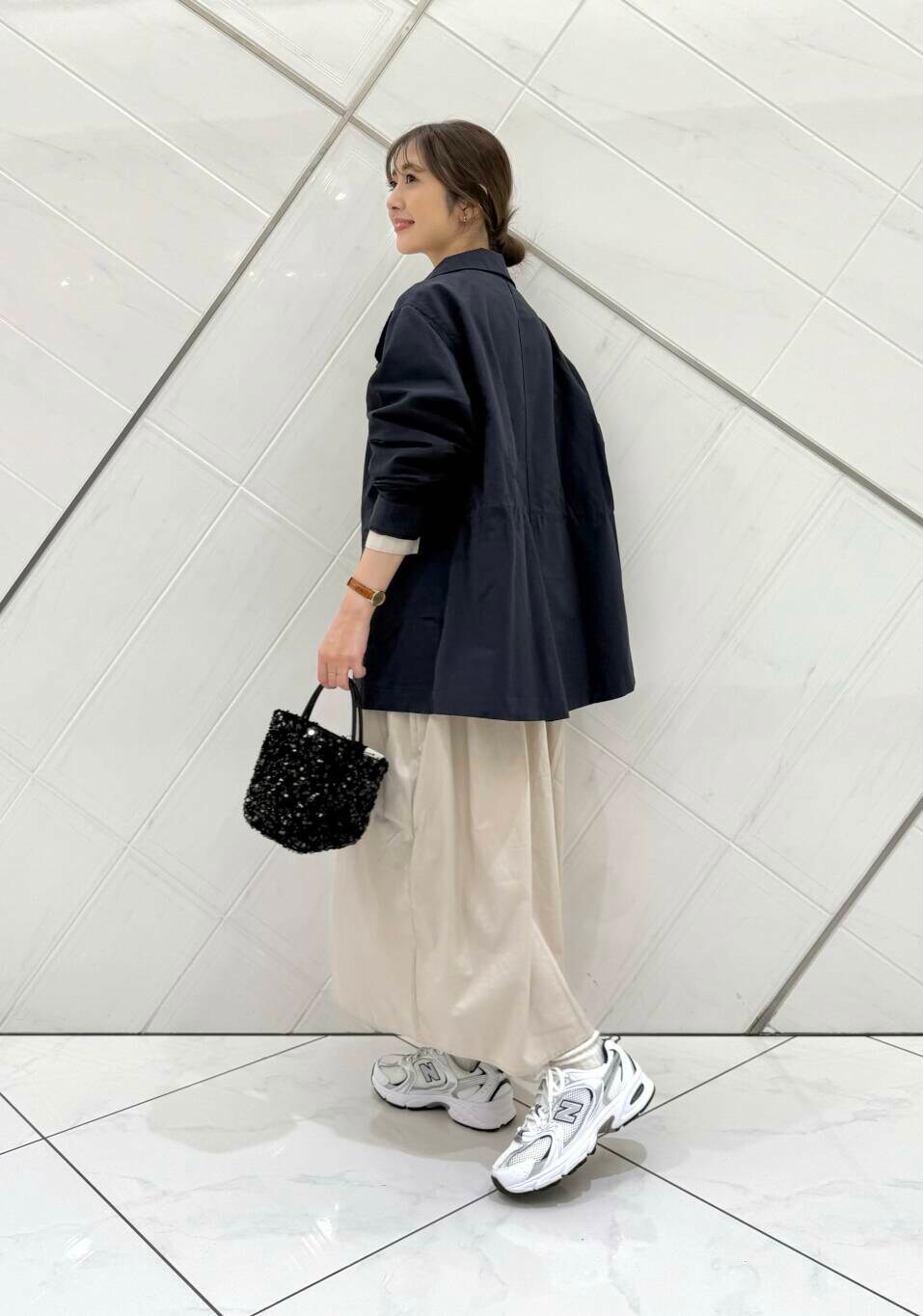 マウンテンパーカーは薄手で軽く、ゆったりめのサイズ感なのでばさっと羽織ることができます。