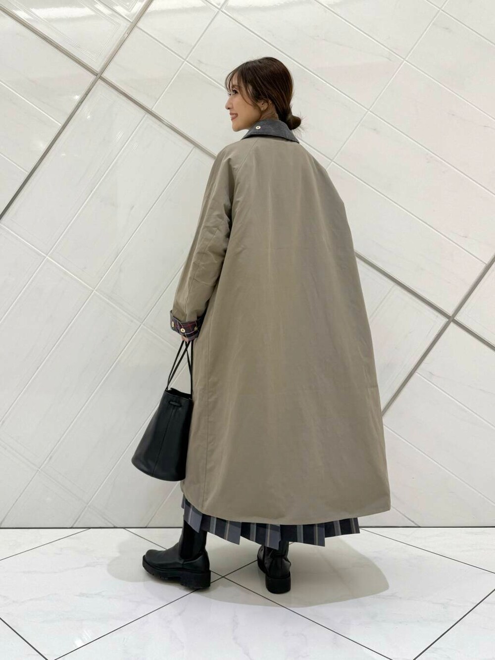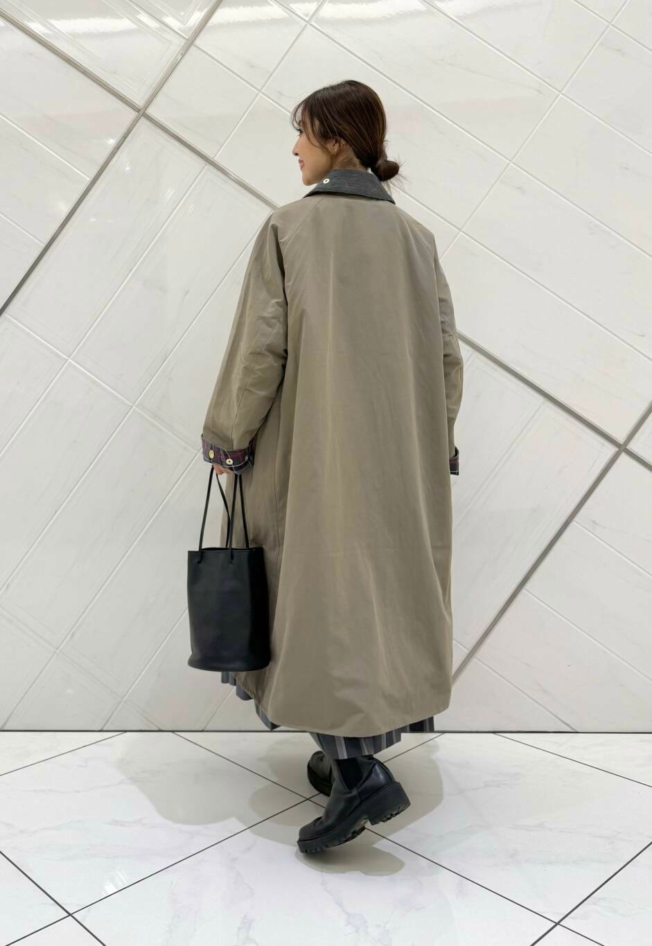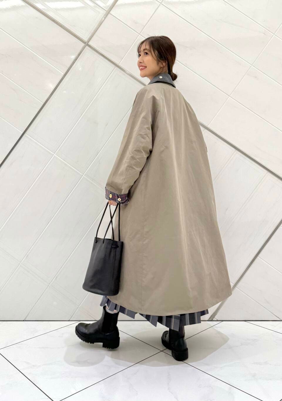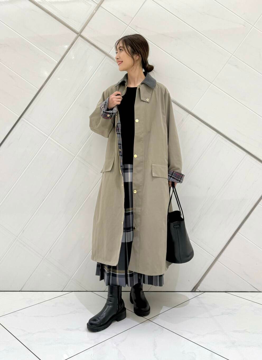 私の身長でふくらはぎが隠れる着丈で、ちらりと見える裏地のチェック柄も可愛いです!