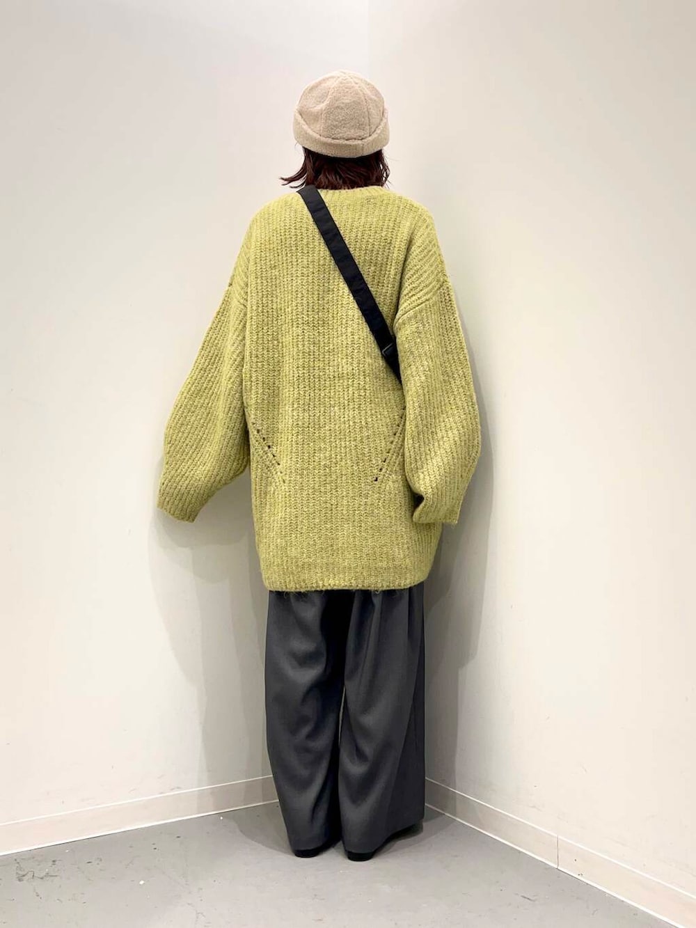 ワイドなシルエットのパンツはウエストゴムで