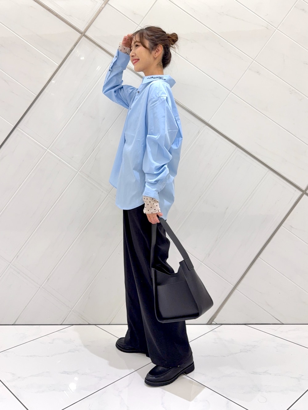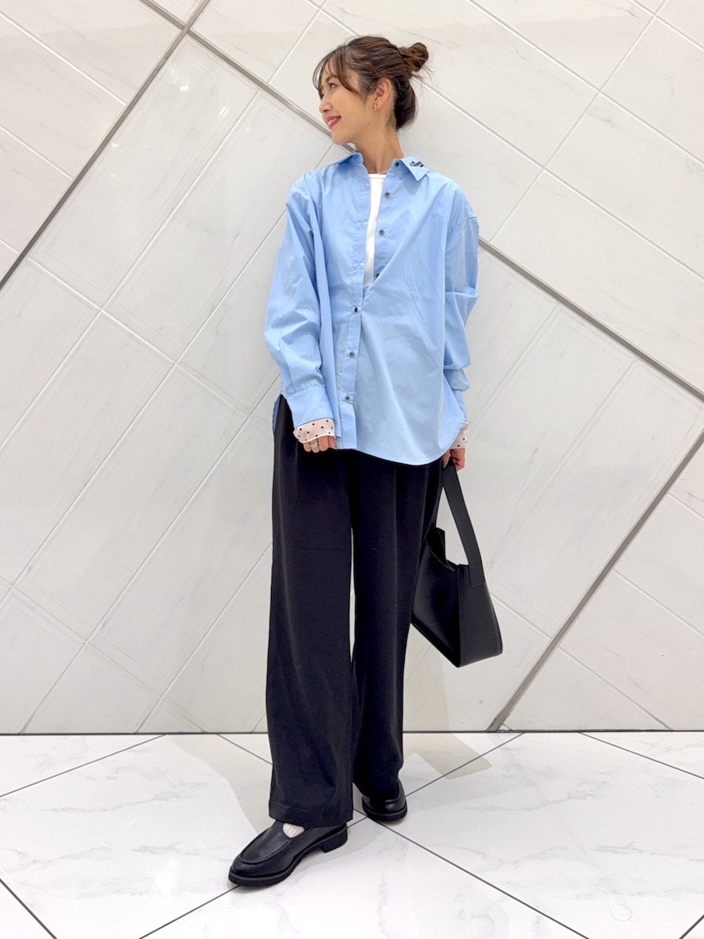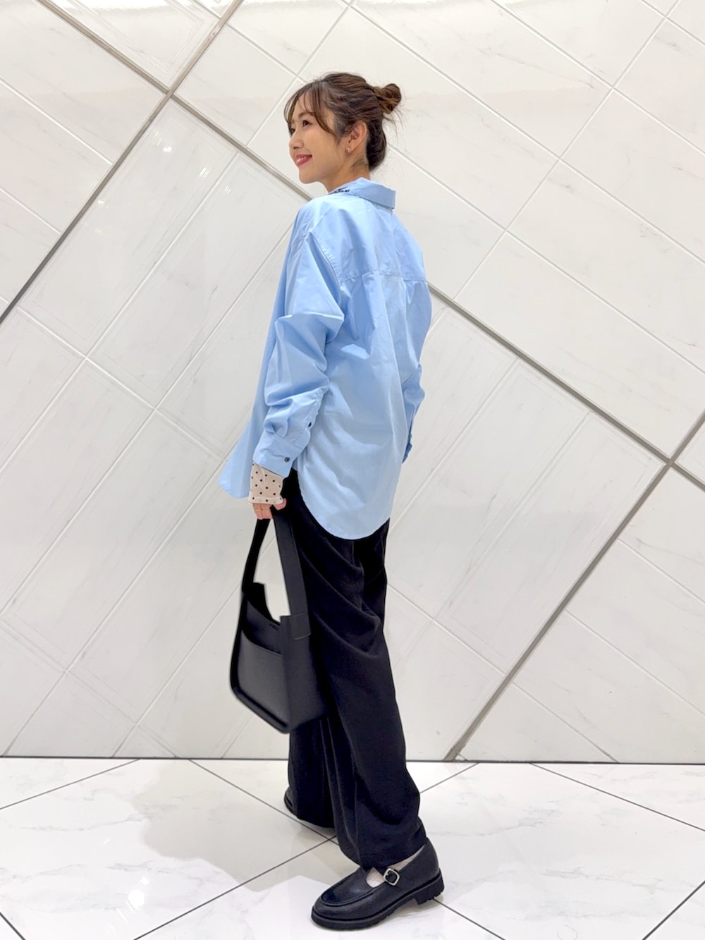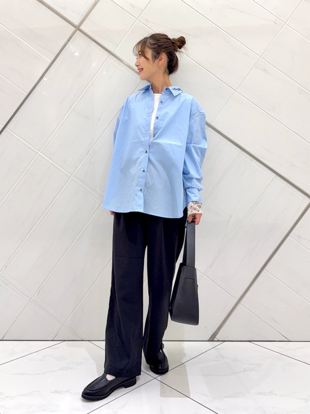 シャツは襟元のロゴ刺繍が可愛らしく、さりげないアクセントになります。
