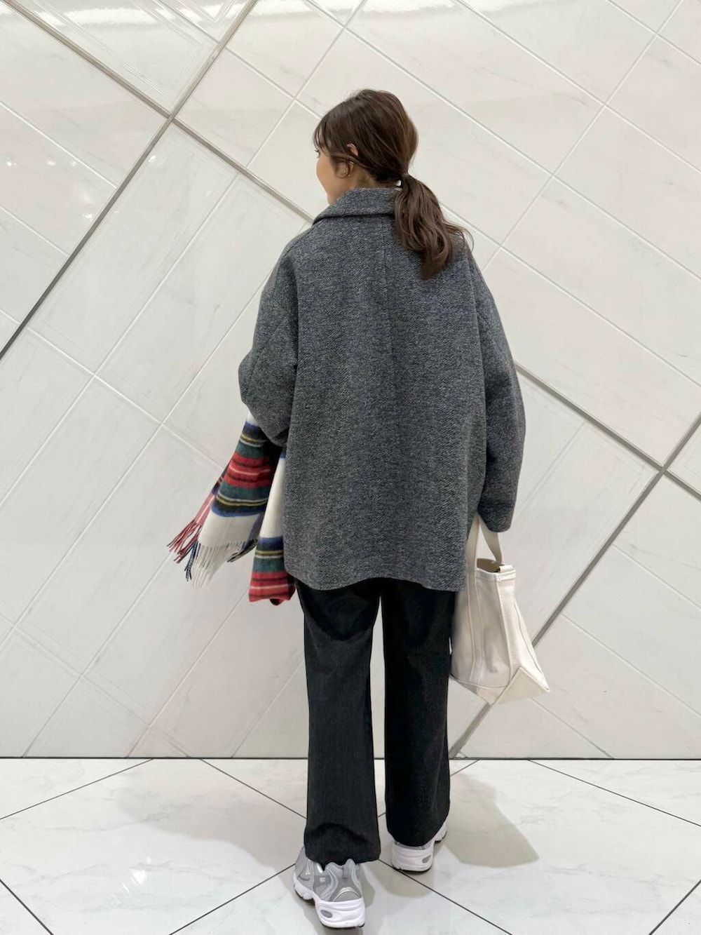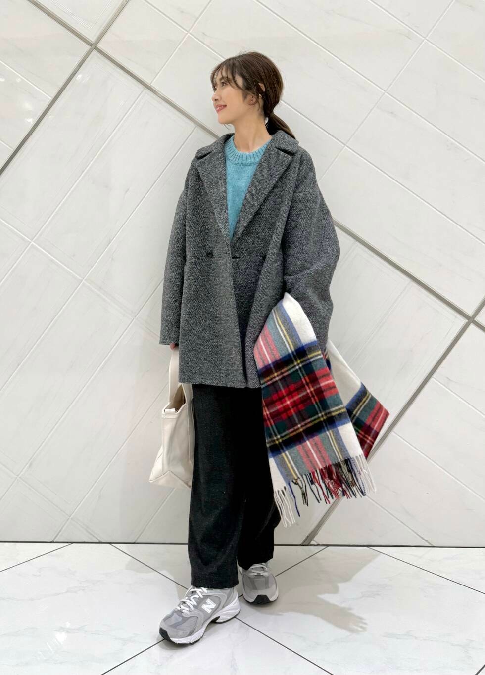 アウターは大きな襟が小顔効果もあり、シンプルなデザインでキレイめからカジュアルコーデまで幅広くスタイリングが楽しめます。