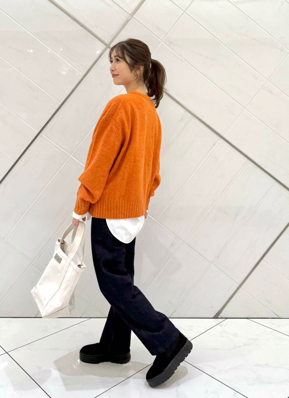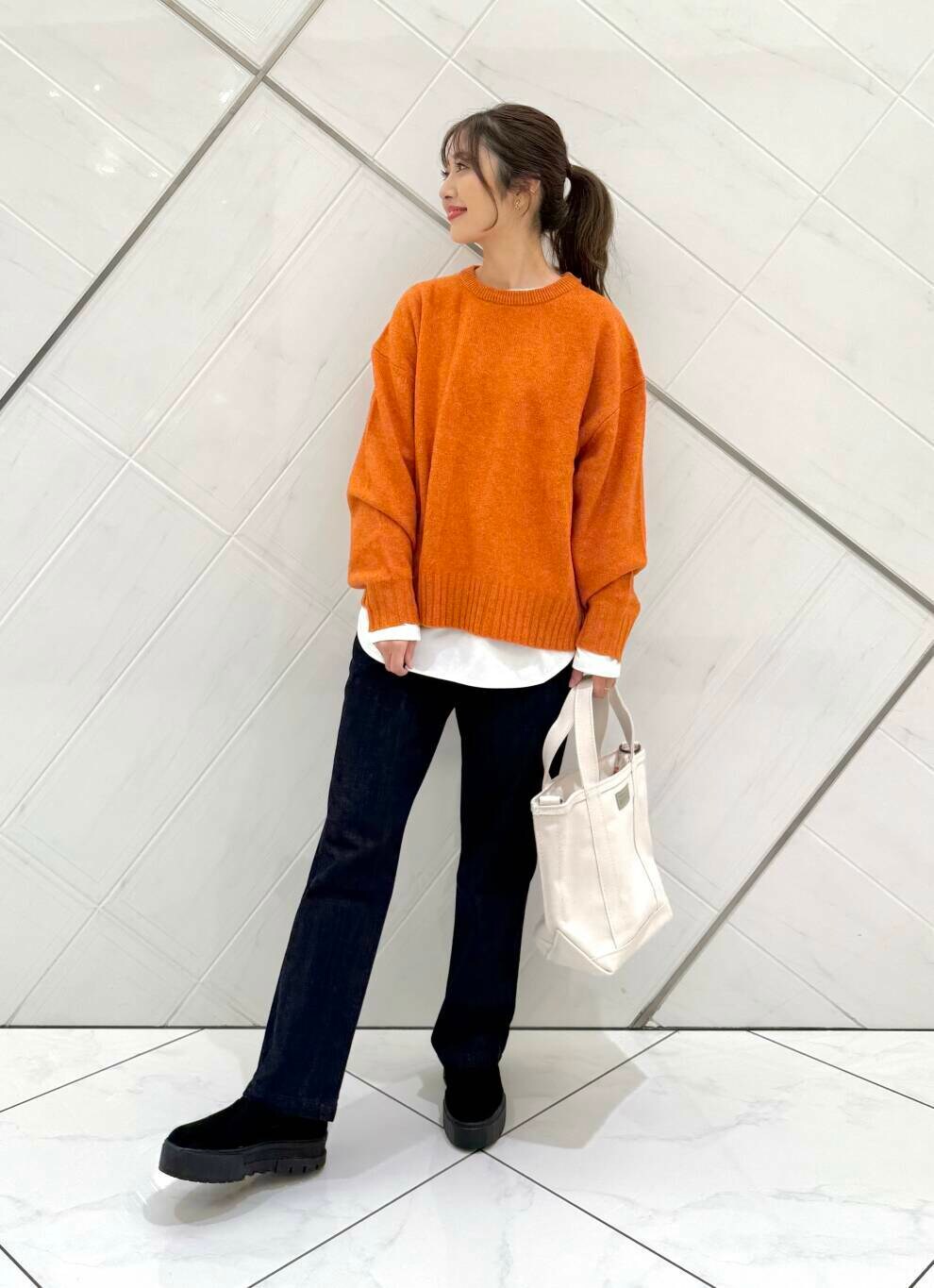 トップスはハミルトンウールシリーズでチクチク感がなく、柔らかな肌触りで暖かいです。
